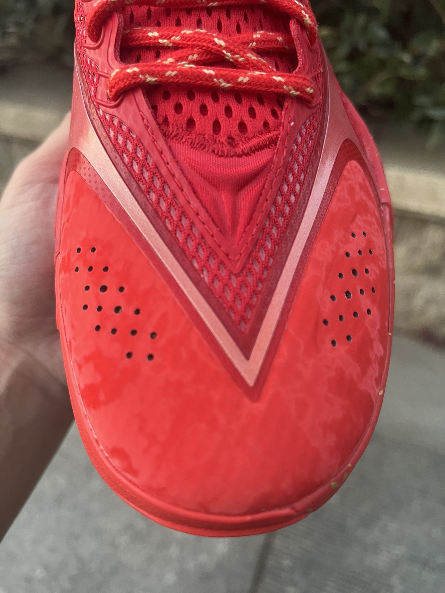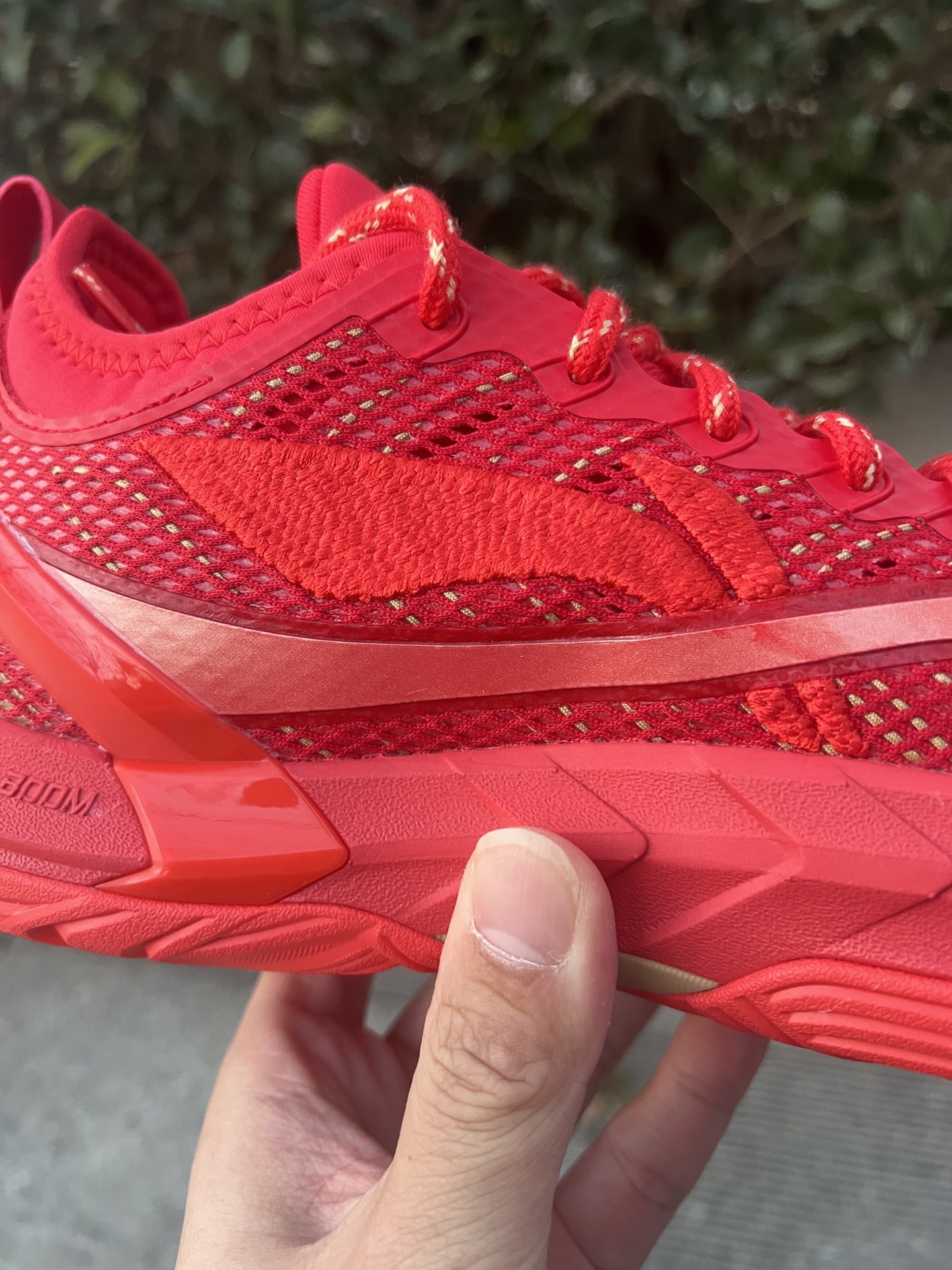 #2025年度鞋王 #2025年度好东西 @创作课代表 鞋面部分被大红色元素所覆盖,确实很有喜庆的氛围,在鞋身正面的TPU模块以及logo区域,加入了少量白色喷墨图案进行点缀,有朋友可能会搞混了,把这个当做马年限定了,这双鞋上你基本找不到马年的元素,配置方面,全掌内填超䨻,脚感还是偏硬弹,也不是薄底,锯齿动态TPU+鱼骨式力传导结构,变向、急起急停丝滑不拖沓,鞋脚一体性拉满,外底采用外场升级DB...