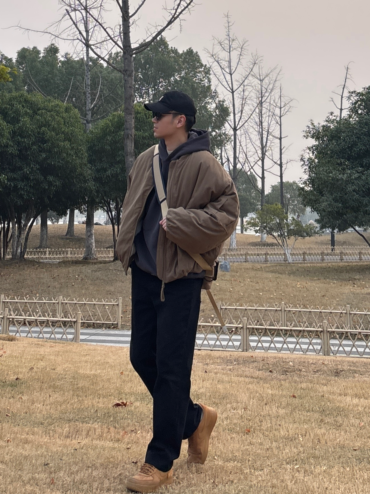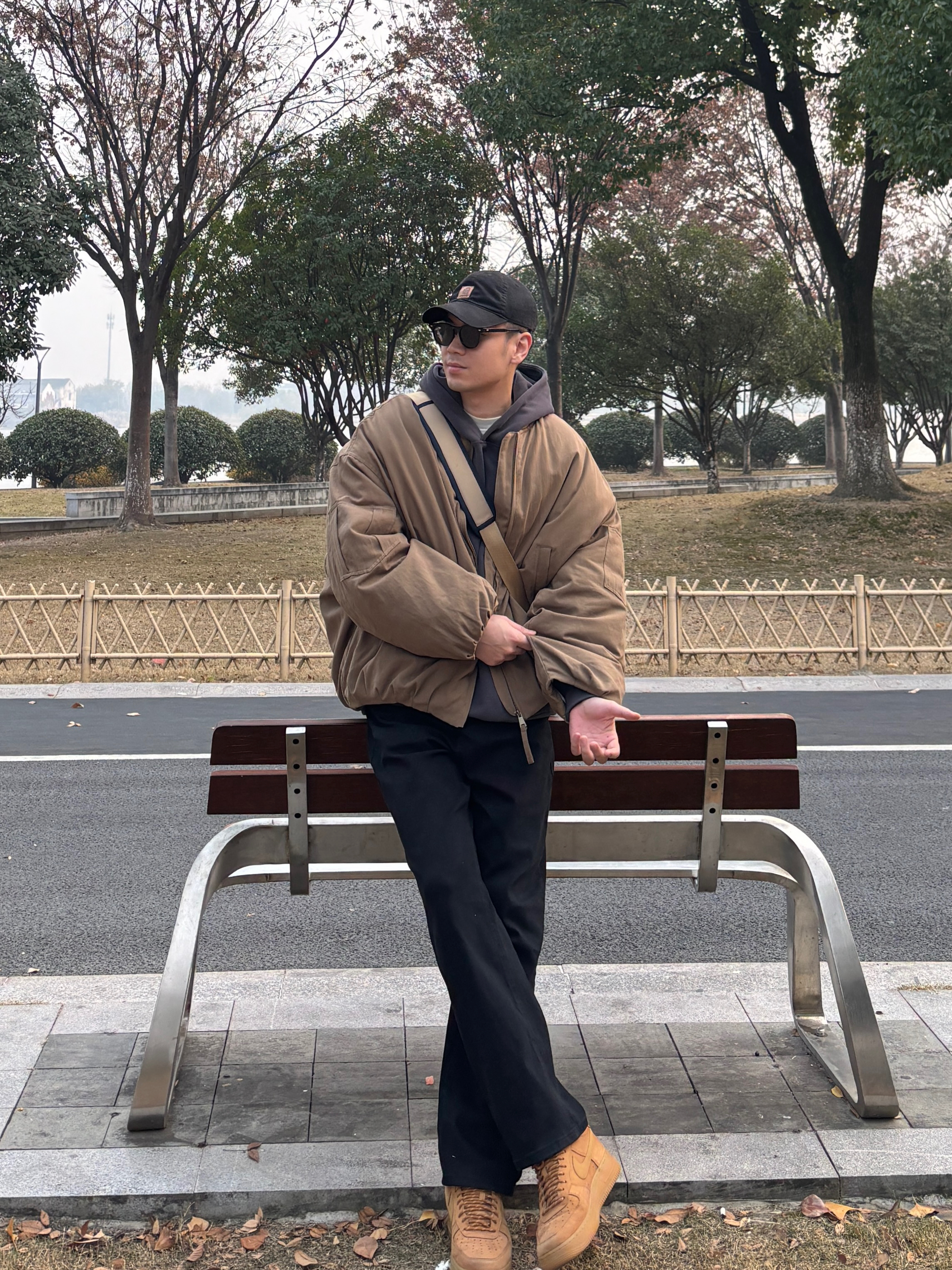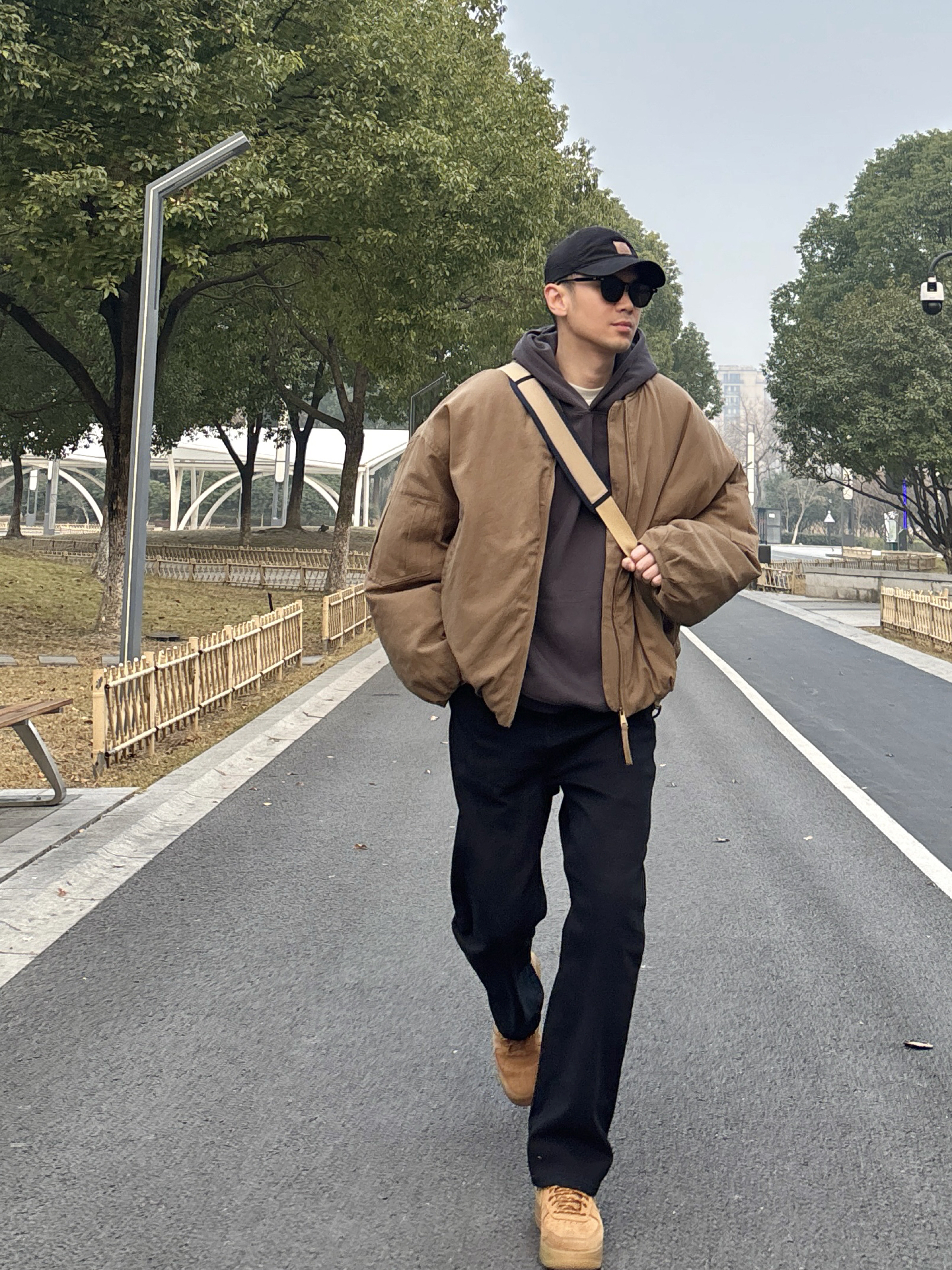 男生穿搭不用复杂,简单配色就很有味道。 卡其棒球领工装空军棉服上身,美式复古那味儿立马出来,内搭深灰连帽卫衣,叠穿不臃肿还显少年感。黑色水洗直筒牛仔裤版型超正,不挑腿型,小麦色低帮板鞋踩出随性范儿。最后卡其色邮差斜挎包一背,不仅能装东西还能凹造型😎 整套look简约不简单,不管是约会还是日常通勤,都能让人眼前一亮✌️ - 今日搭配 衣服裤子:NICE LILI 鞋子:AF1小麦
