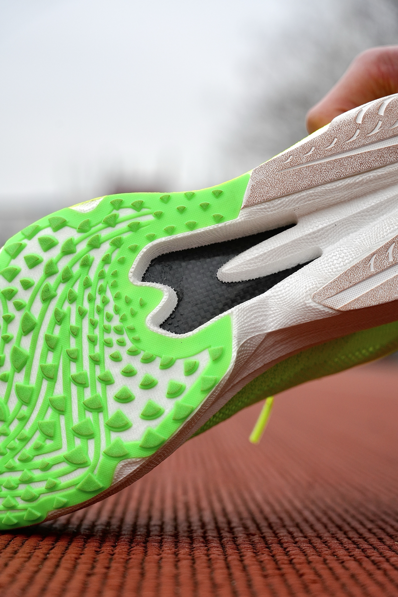 今天分享的跑鞋为安踏 塑胶先锋2代,我入手的这个配色呢是学霸绿配色,鞋身整体以浅绿➕荧黄为主色点,上脚颜值特吸精 配置简单说:氮80科技中底+全掌镂空碳板,分区绞综鞋面+前掌KPU齿钉大底,后掌加厚耐磨橡胶 穿它跑了15公里,大半是塑胶跑道速训和体测,发现以下优点: 1、碳板镂空开槽很适合场地,过弯丝滑,蹬伸推进力超直接,脚感呢是后掌软弹➕前掌韧弹反馈 2、抓地效果好,前掌的KPU齿钉在加速...
