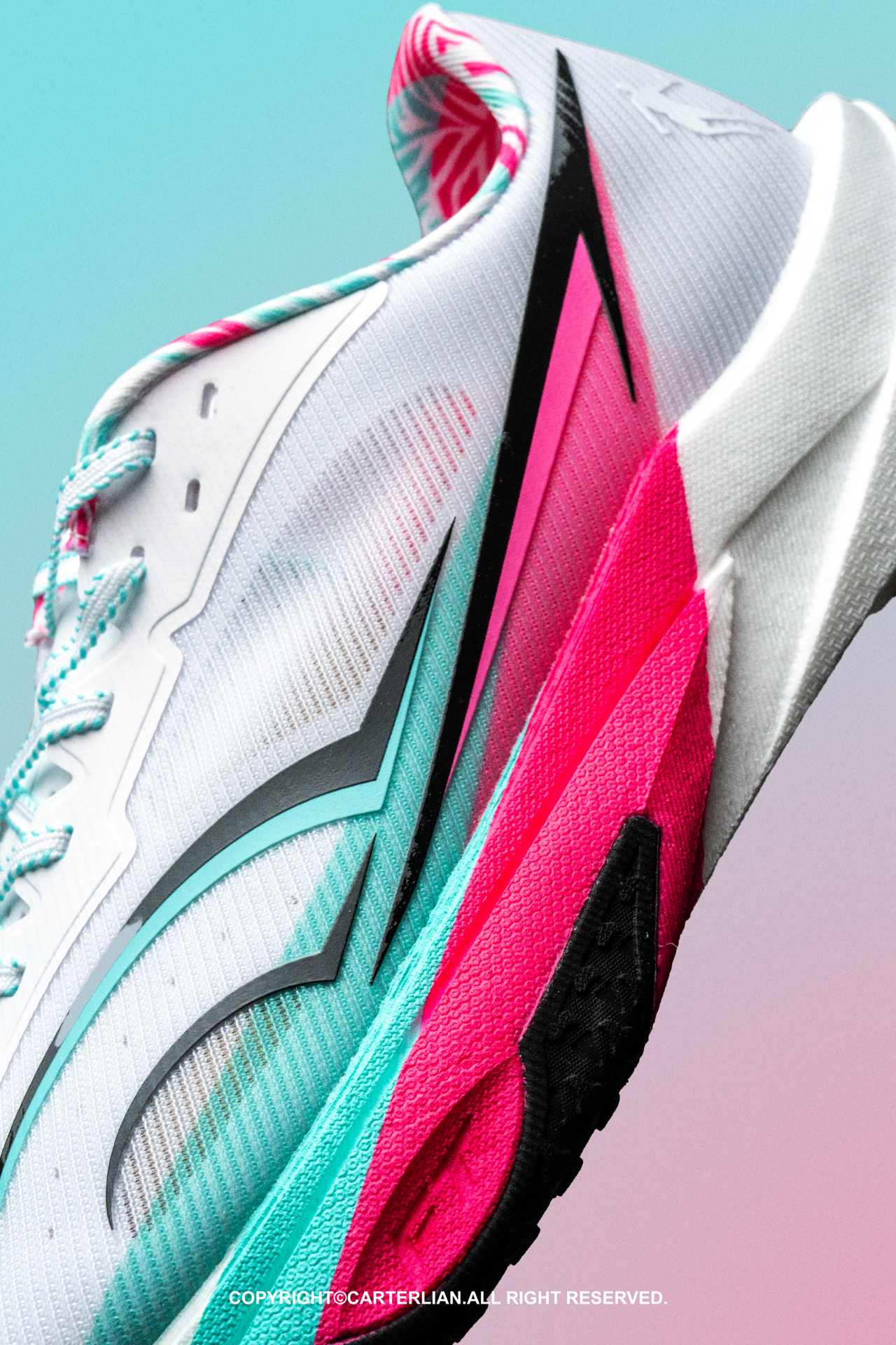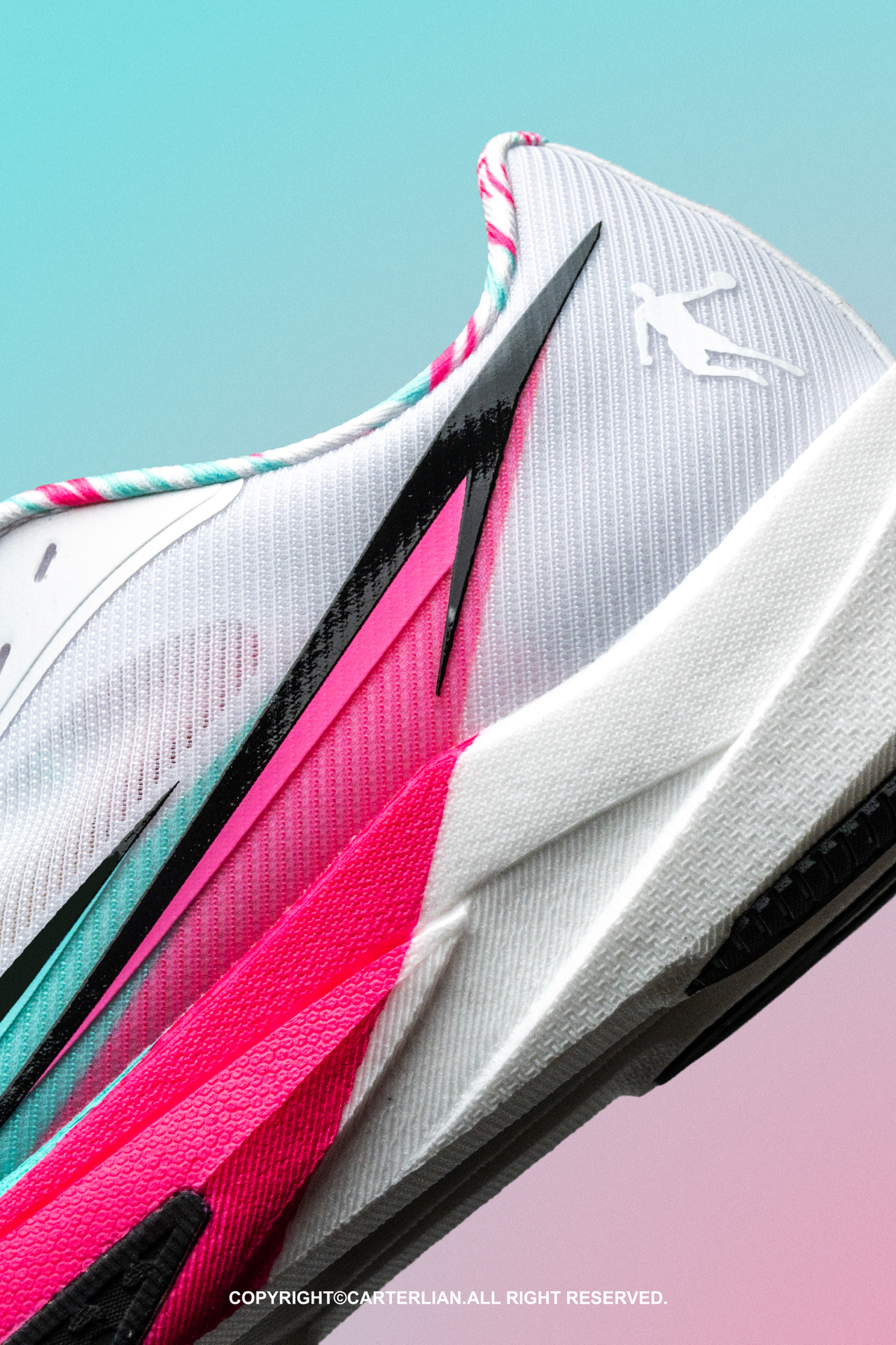 今日分享这双飞腾3的彩虹斑马 这双鞋到手整体还是偏薄底竞训鞋的设计 在内侧的橡胶上翻去增加触地面积 搭配上全掌的尼龙板提供更进一步的稳定性 上脚感受来说我觉得整体的鞋面透气性还是很不错 也很贴合脚背,脚感是属于轻弹的脚感 缓震的行程短,发力比较直接 在场地跑间歇的时候可以感觉到很不错的扒地感 过弯的稳定性不错,中底前掌位置有切槽 在过弯的时候的过渡会更加流畅 这双彩虹🌈斑马的配色属于比较清新的配色...