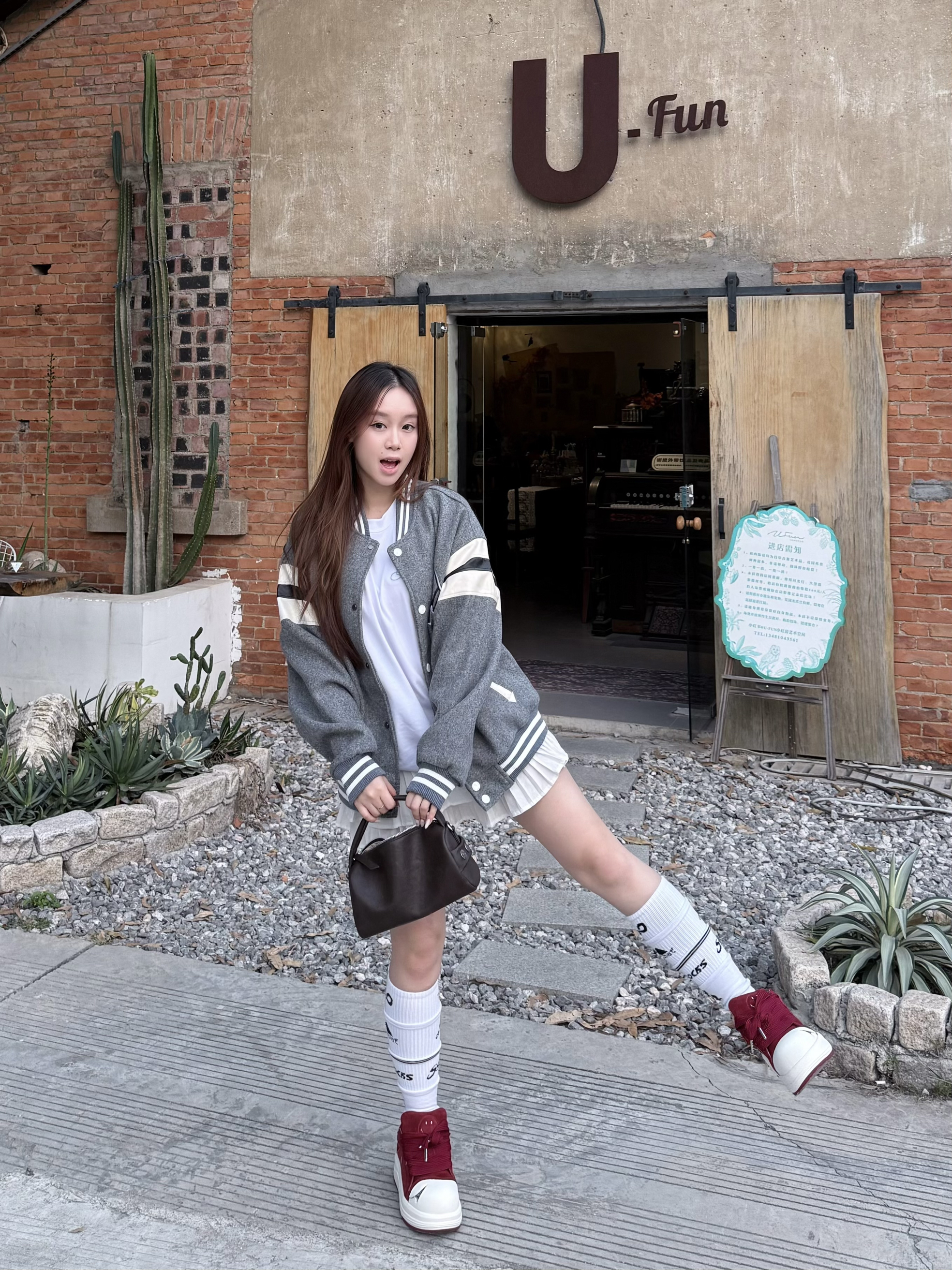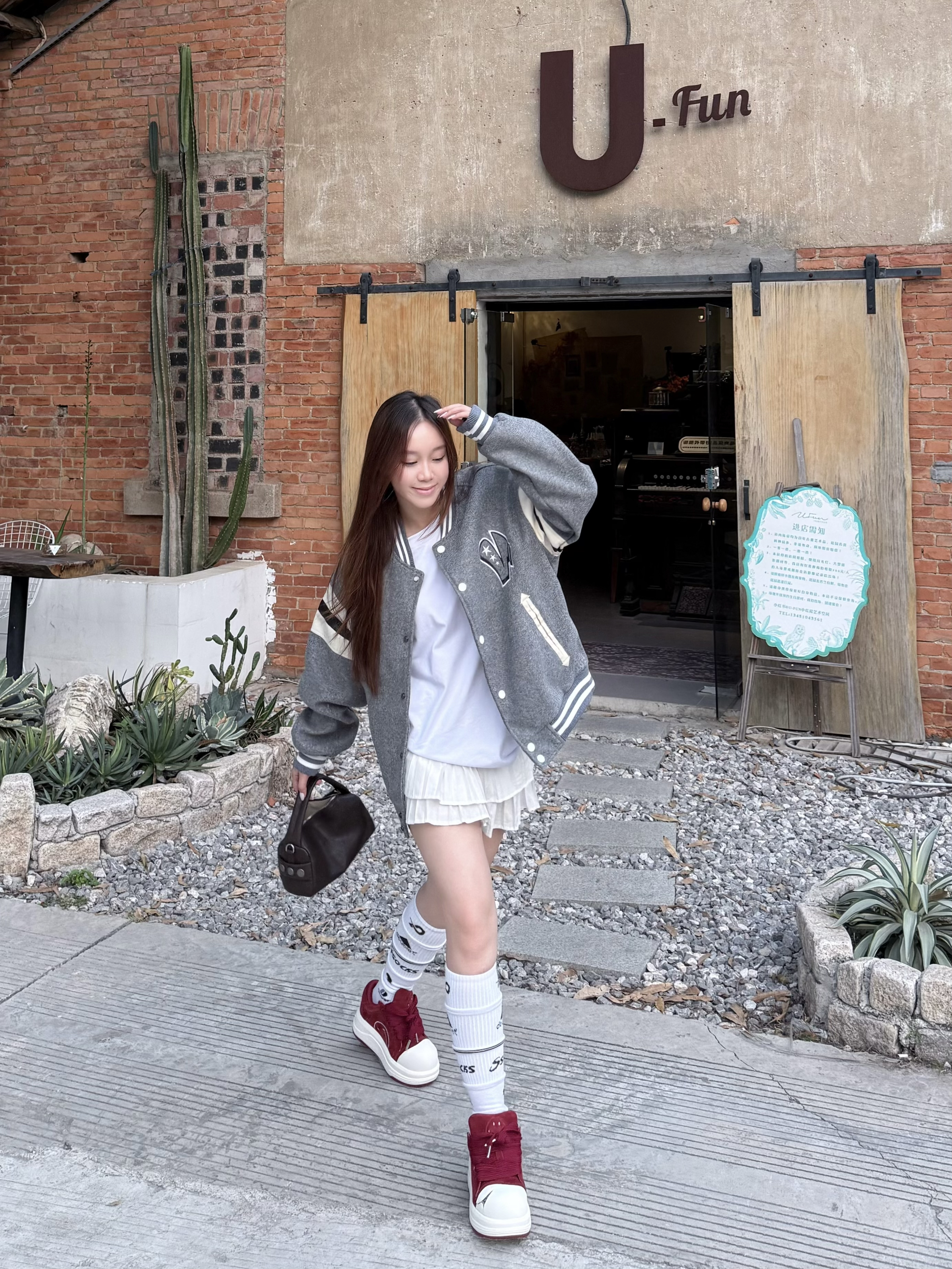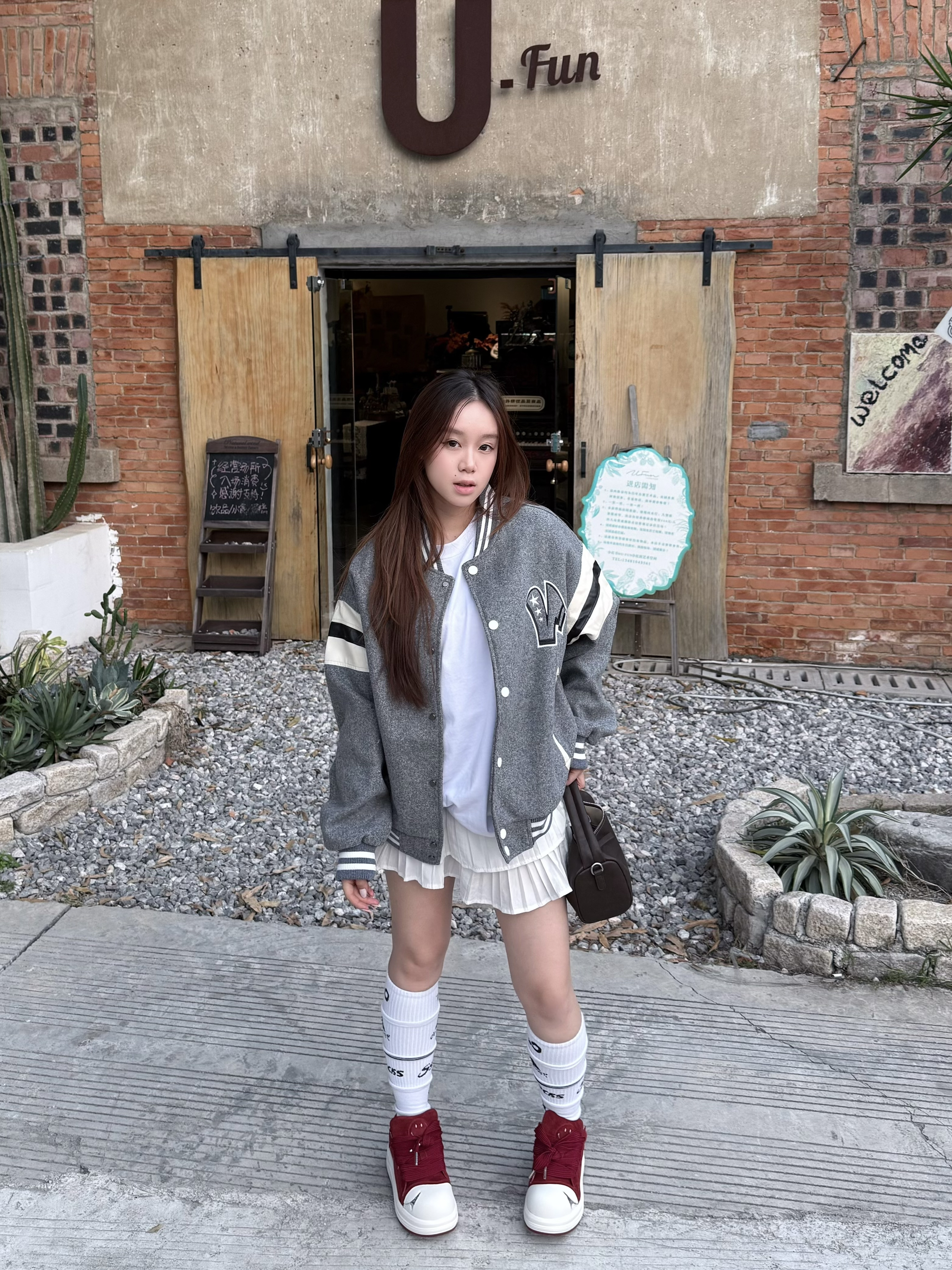这件灰色棒球服 我最近穿得挺多 条纹和字母刺绣有点学院味 但整体不显乖 宽松版型对身材要求不高 里面搭白T或薄卫衣都行 下装配牛仔裤 工装裤都稳 10℃—18℃左右穿刚好 属于不需要多想 随手套上就能出门的一件