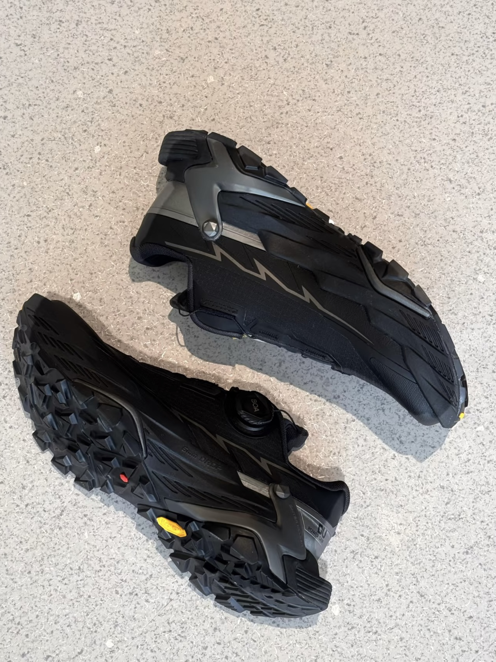 全黑造型超酷,妥妥的“山野黑武士” 它可不是样子货,是公认的“大坡王” 专治各种不服的陡坡: 上坡时,前掌特殊的齿花抓地超稳,特别省力 下坡时,独有的刹车齿花设计让我心里超有底 Vibram Megagrip大底 在湿滑的石头和泥地上表现简直封神! 最让我惊喜的是,它专业但不挑人。 除了越野跑,周未徒步、甚至玩飞盘都穿它, 加宽鞋底和稳固的后跟 让我各种变向都很有安全感