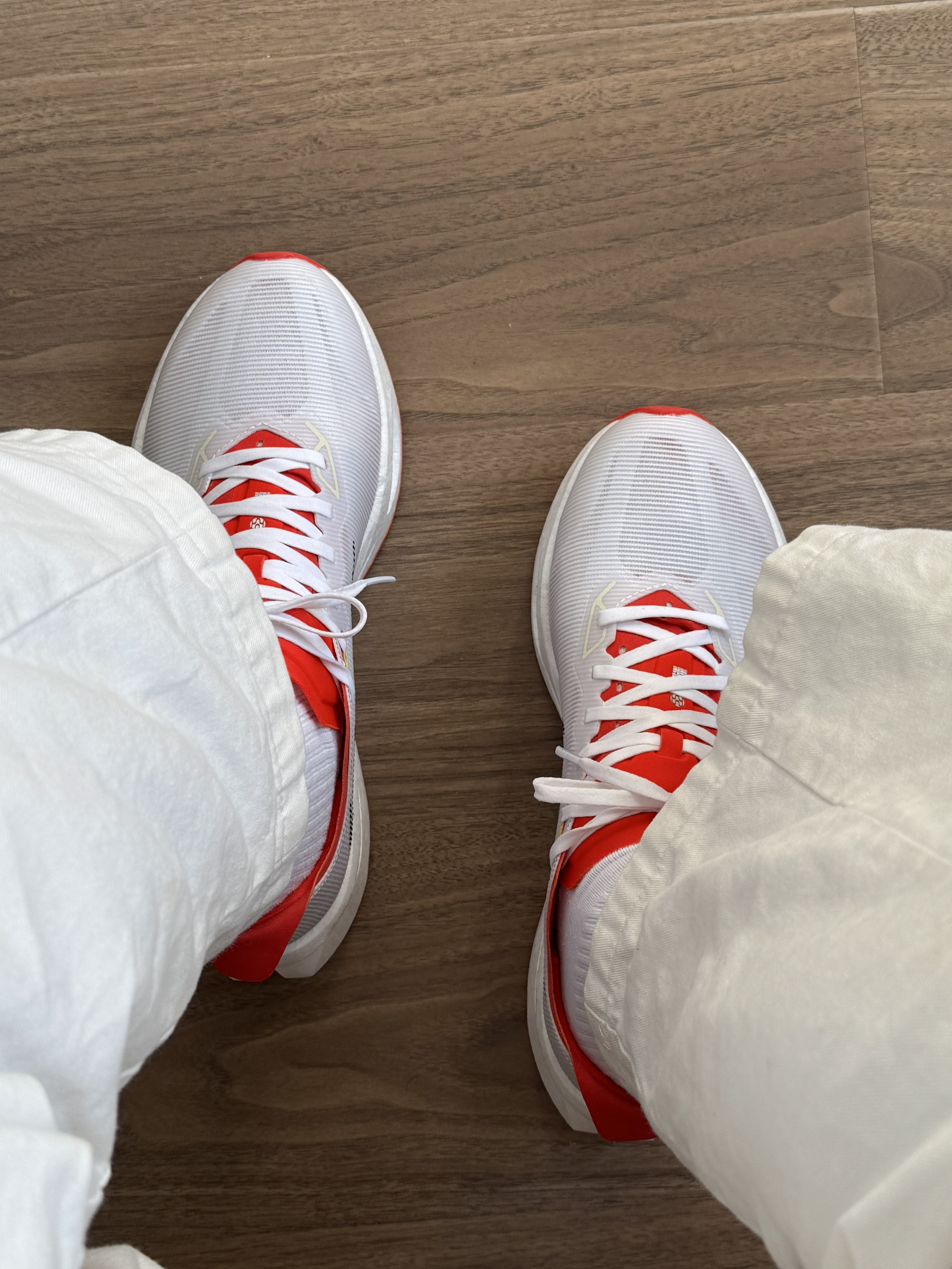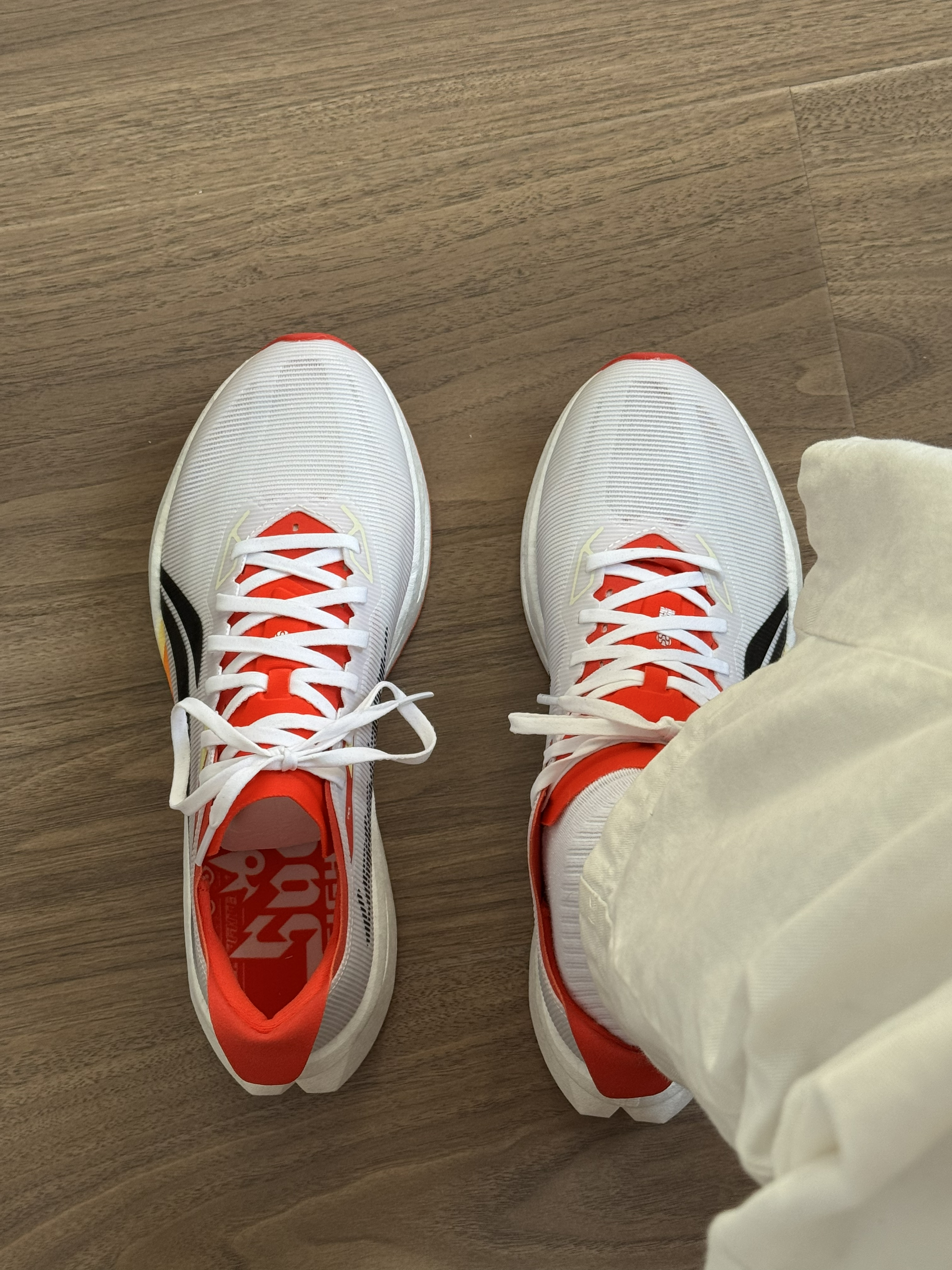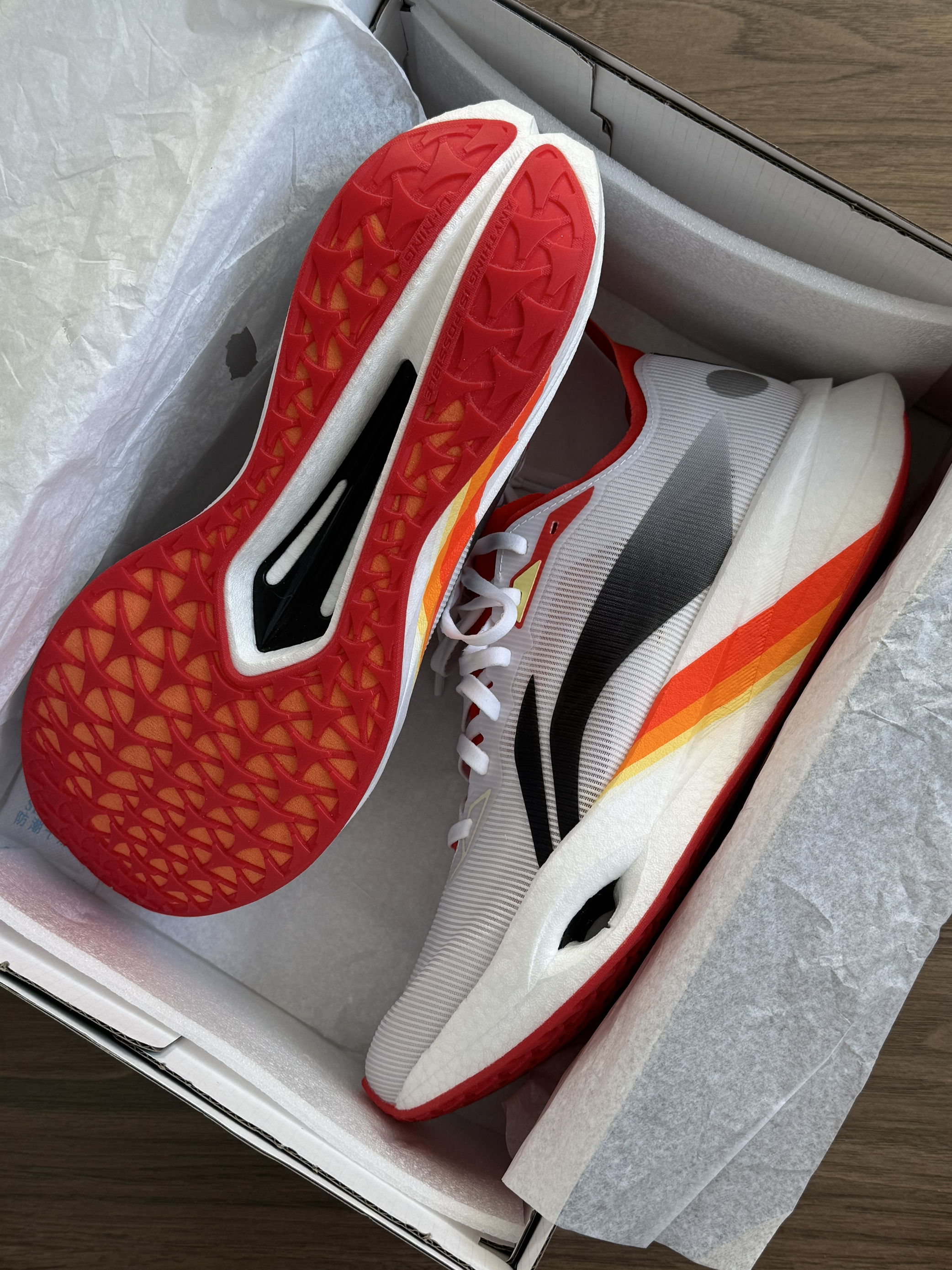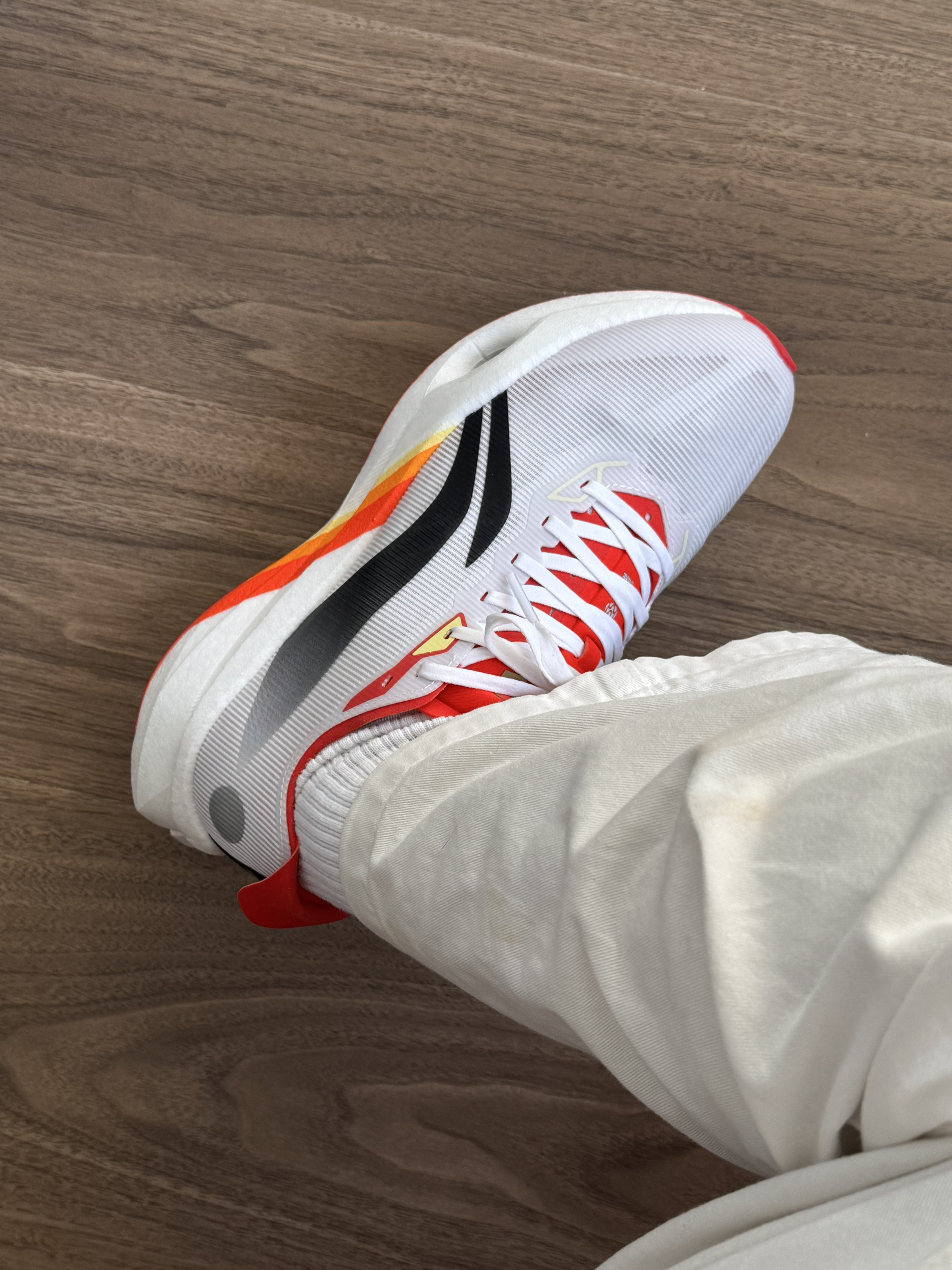 穿上自带脂肪灼烧效果~ 跑步穿这双感觉速度都快了不少🏃 鞋子上脚舒适又轻盈,做工很好✔️ 还挺百搭的,很好看👀 打工色很适合新年穿🔥红红火火的🧨