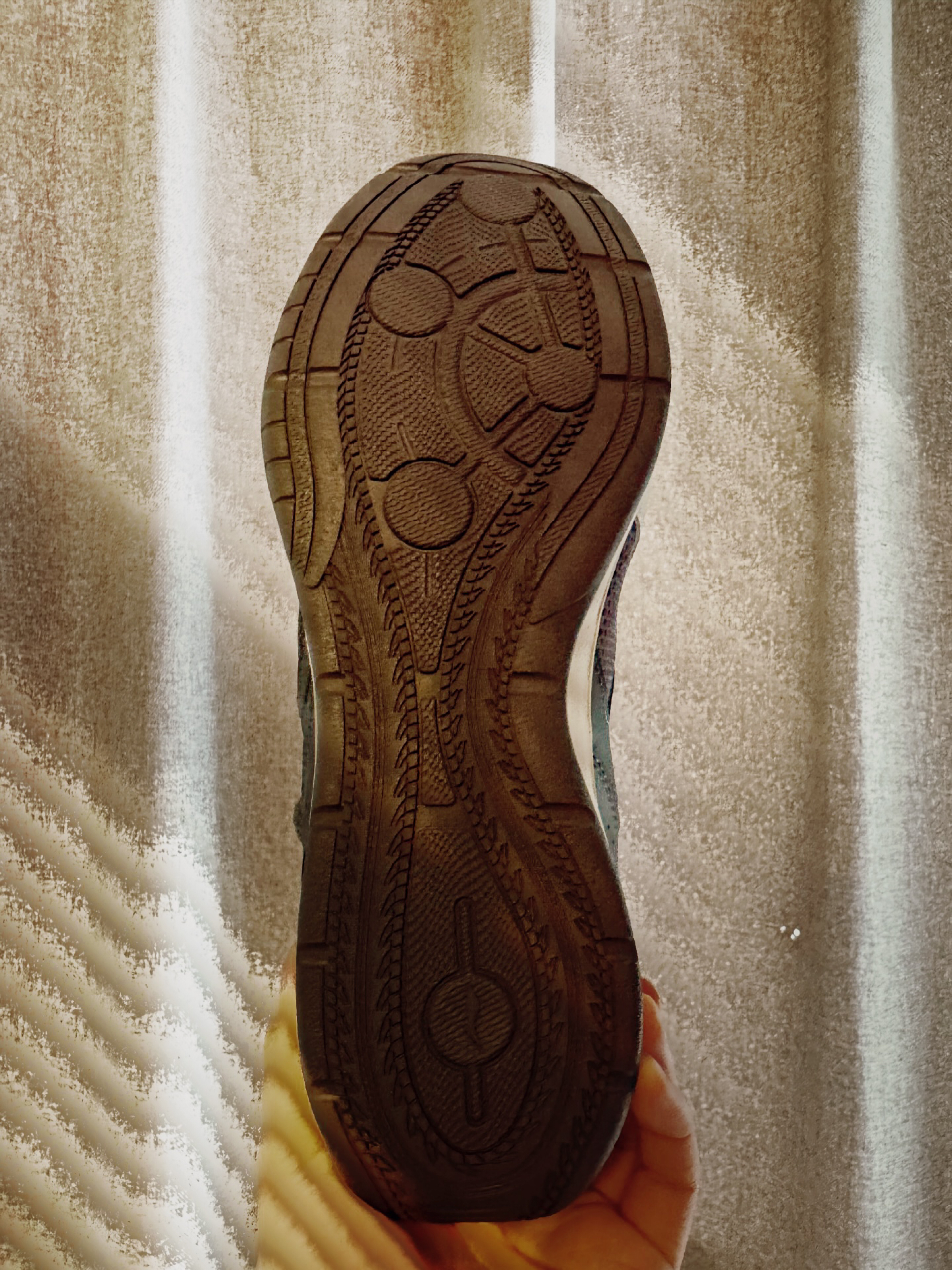 最近出门我几乎都穿它,主要就是轻,走久了脚不会被拖着走那种累感👟🌤️。薄底踩地更贴地,但不硬,走路的反馈很自然。鞋面对脚背的压力小,长时间穿也没不适。 不过稳定性没有厚底鞋强,走得快或拐弯猛一点会觉得支撑稍弱。另外灰绿色实物比我预期更耐看,日常百搭没什么压力🩶🌿。