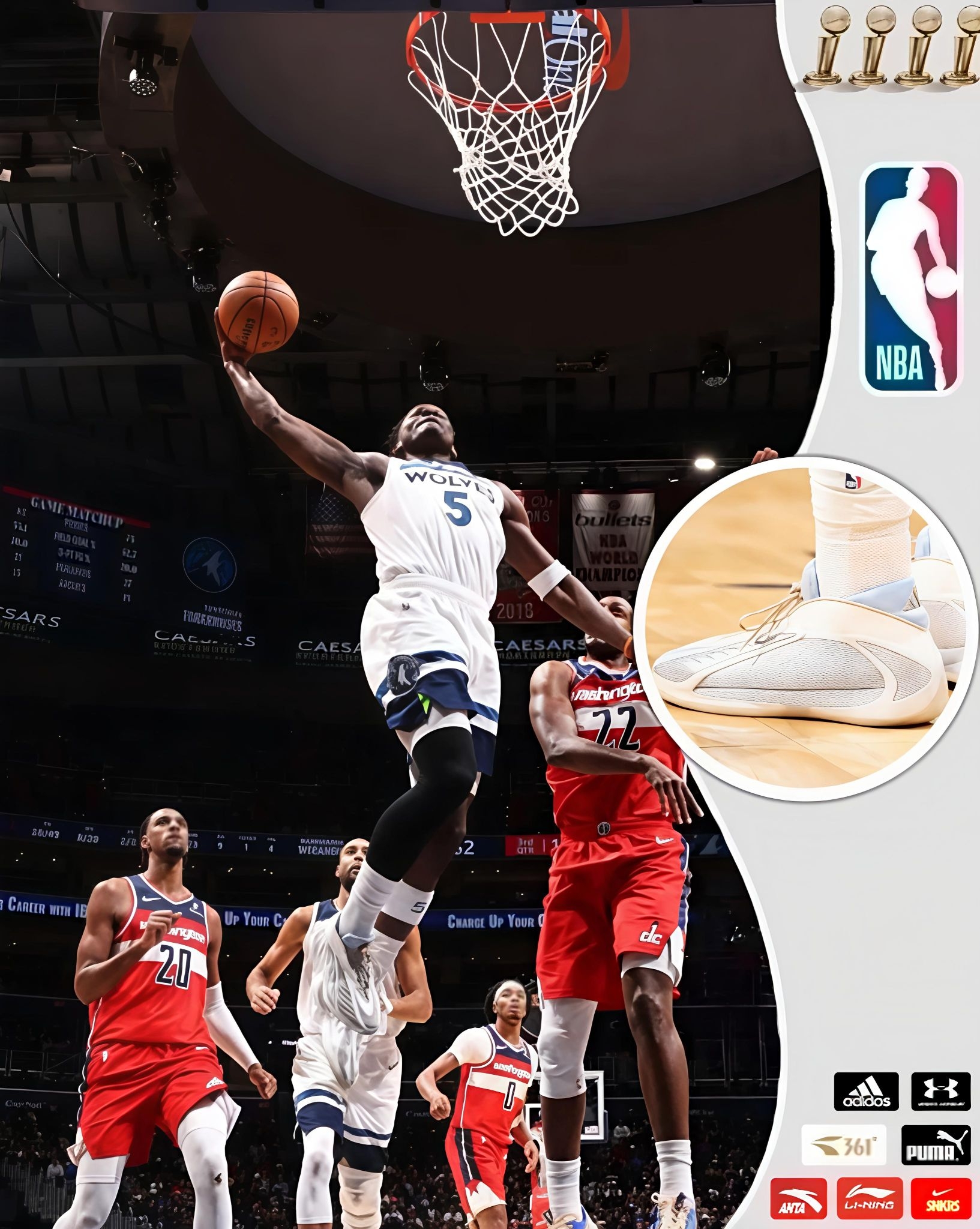 本篇笔记关联了【爱德华兹同款】Nike/耐克 字母速干印花Dri-FIT森林狼队无袖套头5号球衣定制篮球服 22-23/Association/SW、adidas AE2 爱德华兹2代 篮球鞋 支撑防滑耐用训练 马年限定/ Anthony Edwards联名/白色等商品,为用户提供真实的使用体验和购买参考。