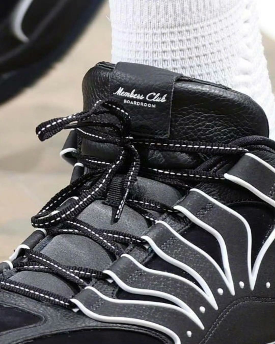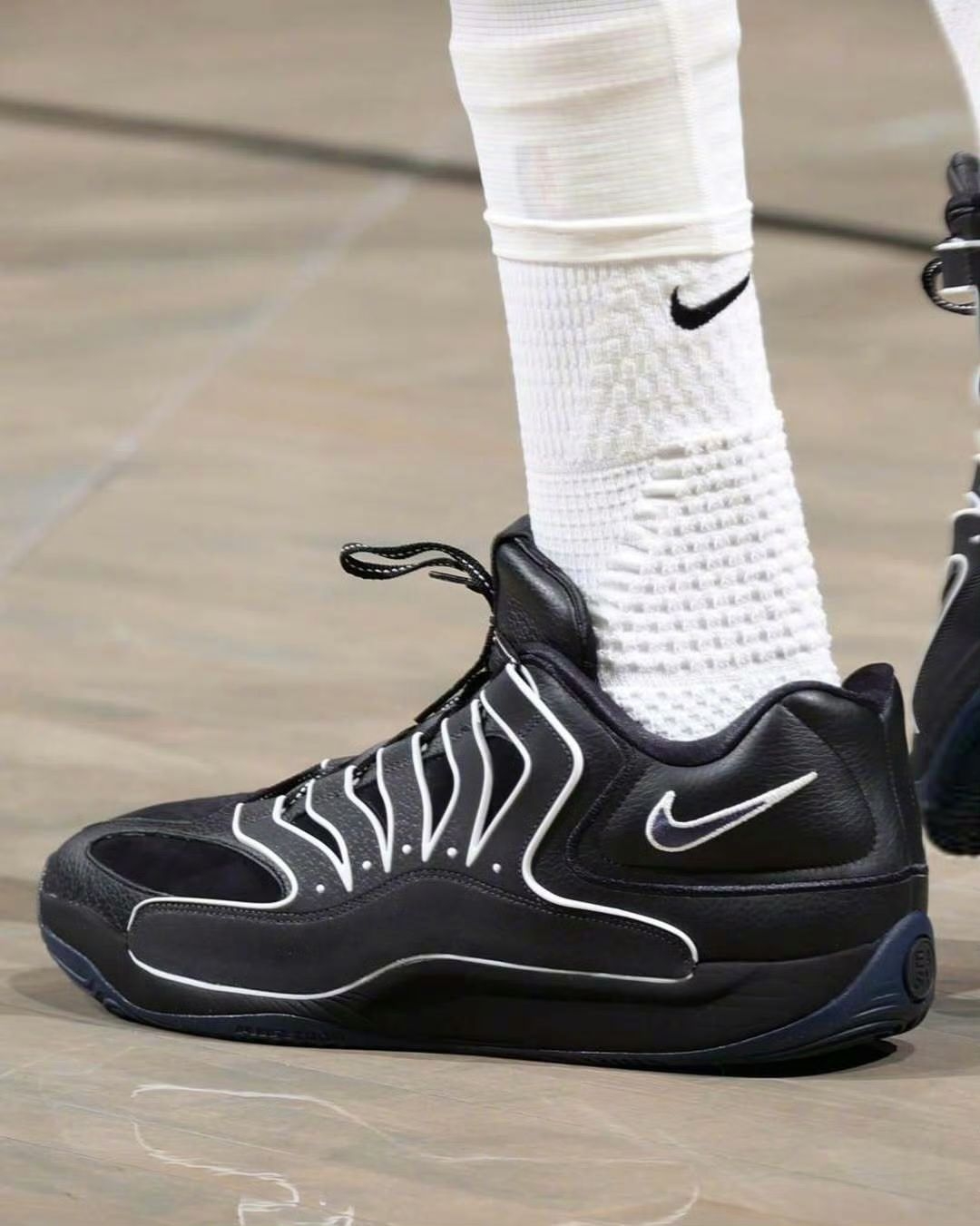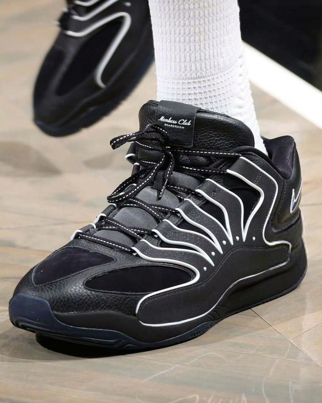 蹲到KD18 “Board Memless Club” PE上脚图了,第一眼就被这黑白配色戳中,乍一看还以为是篮网队的专属调调,低调得完全不像顶级富豪俱乐部的联名款。 鞋身的黑色皮革搭配白色线条勾勒,没有花里胡哨的装饰,线条感把复古和现代感揉得刚刚好,鞋舌上的“Members Club”小字细节直接拉满,这种藏在细节里的质感真的太戳我了。 作为KD的签名鞋,实战性能不用多说,脚感依旧是熟悉...