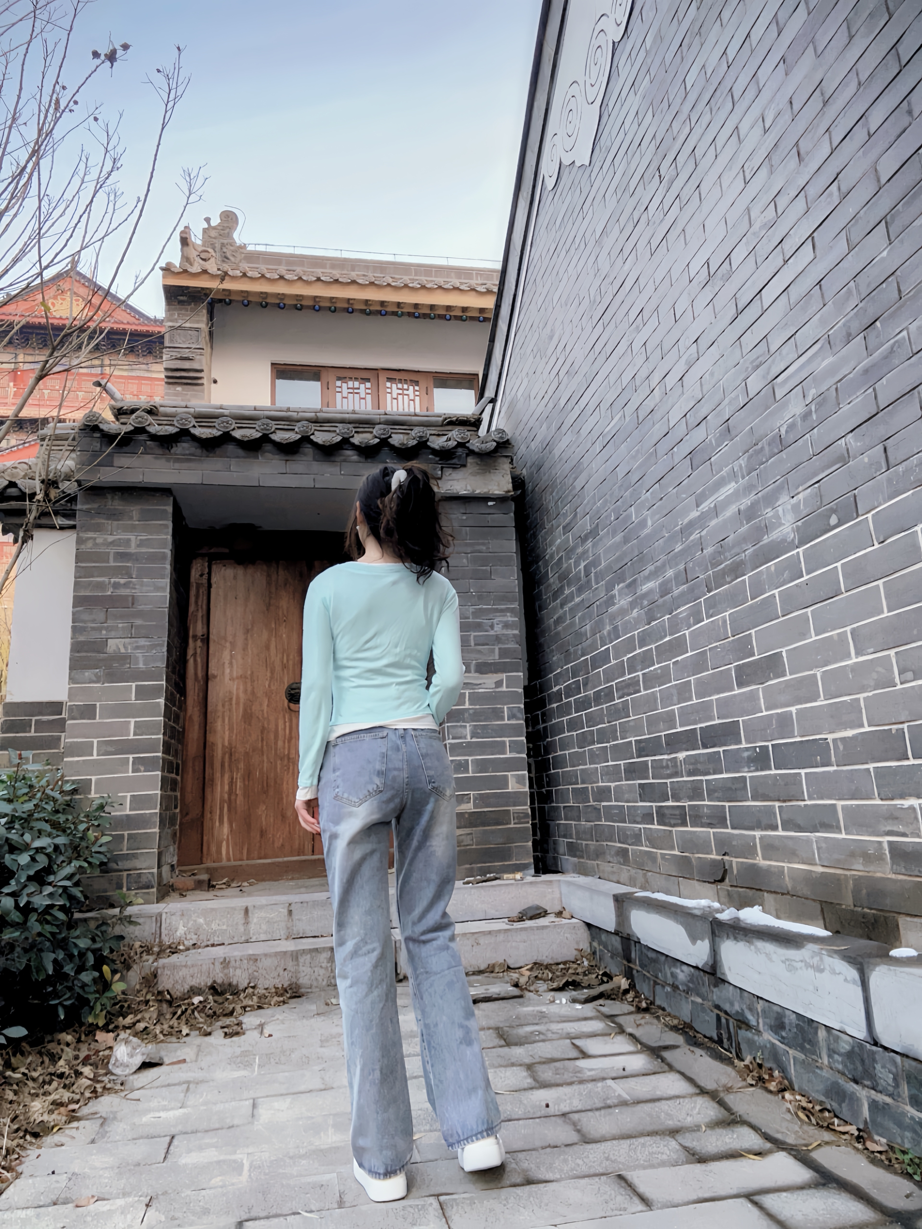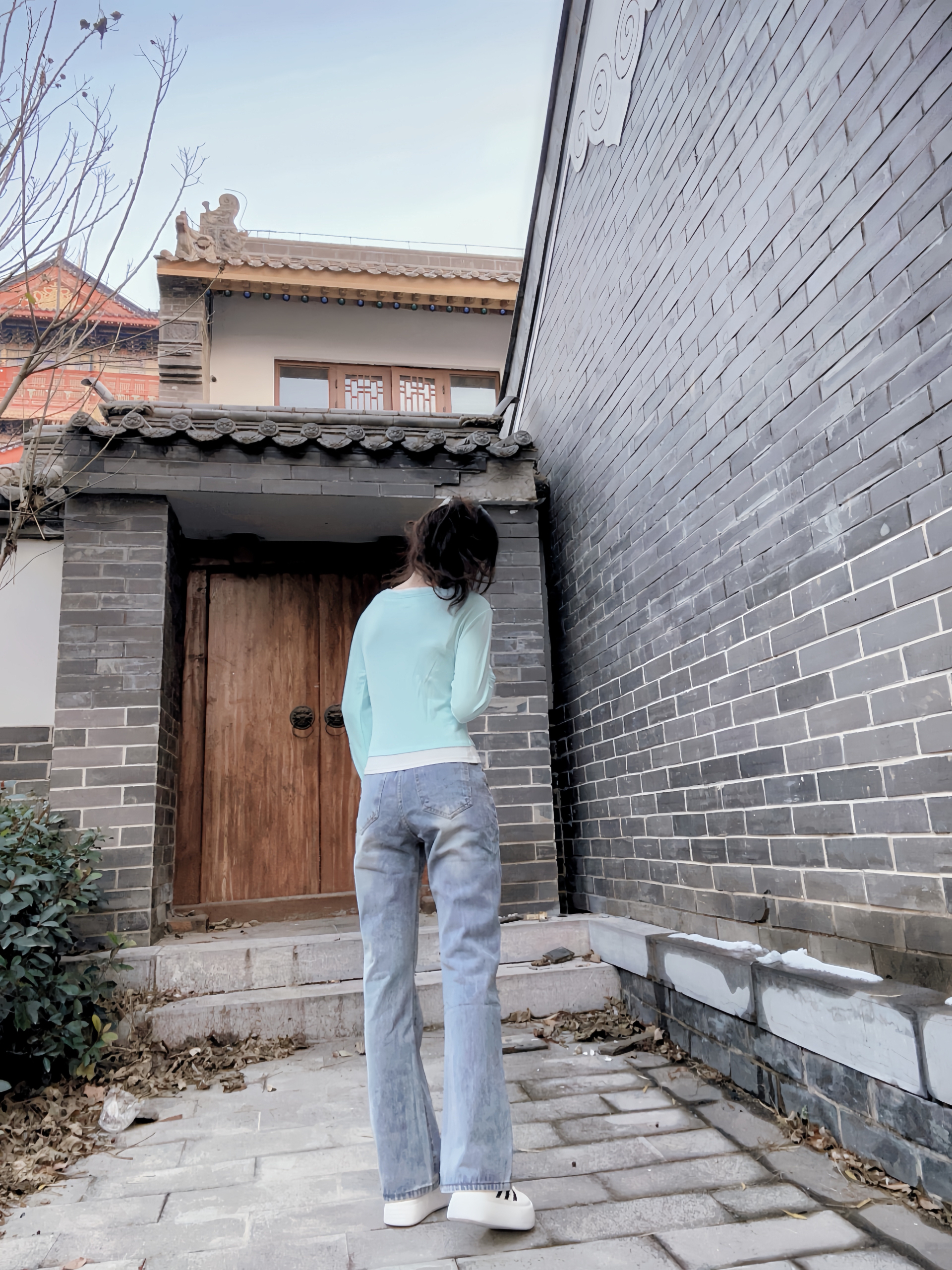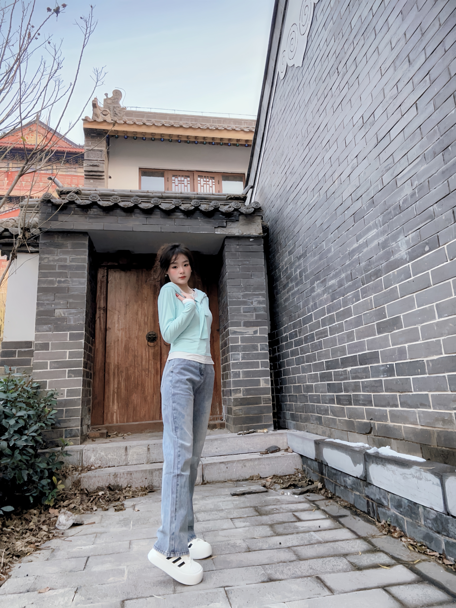 简简单单的牛仔裤穿搭分享~ 浅蓝色微喇叭📣牛仔裤👖 搭配青色系上衣 很和谐的一身 版型上身是我喜欢的宽松感 软硬适中的料子 很有版型耶✌️ 是有一定厚度滴 冬季穿也不会冷 而且浅色也蛮百搭的呢😻 是不管怎么搭配都不会出错的一条