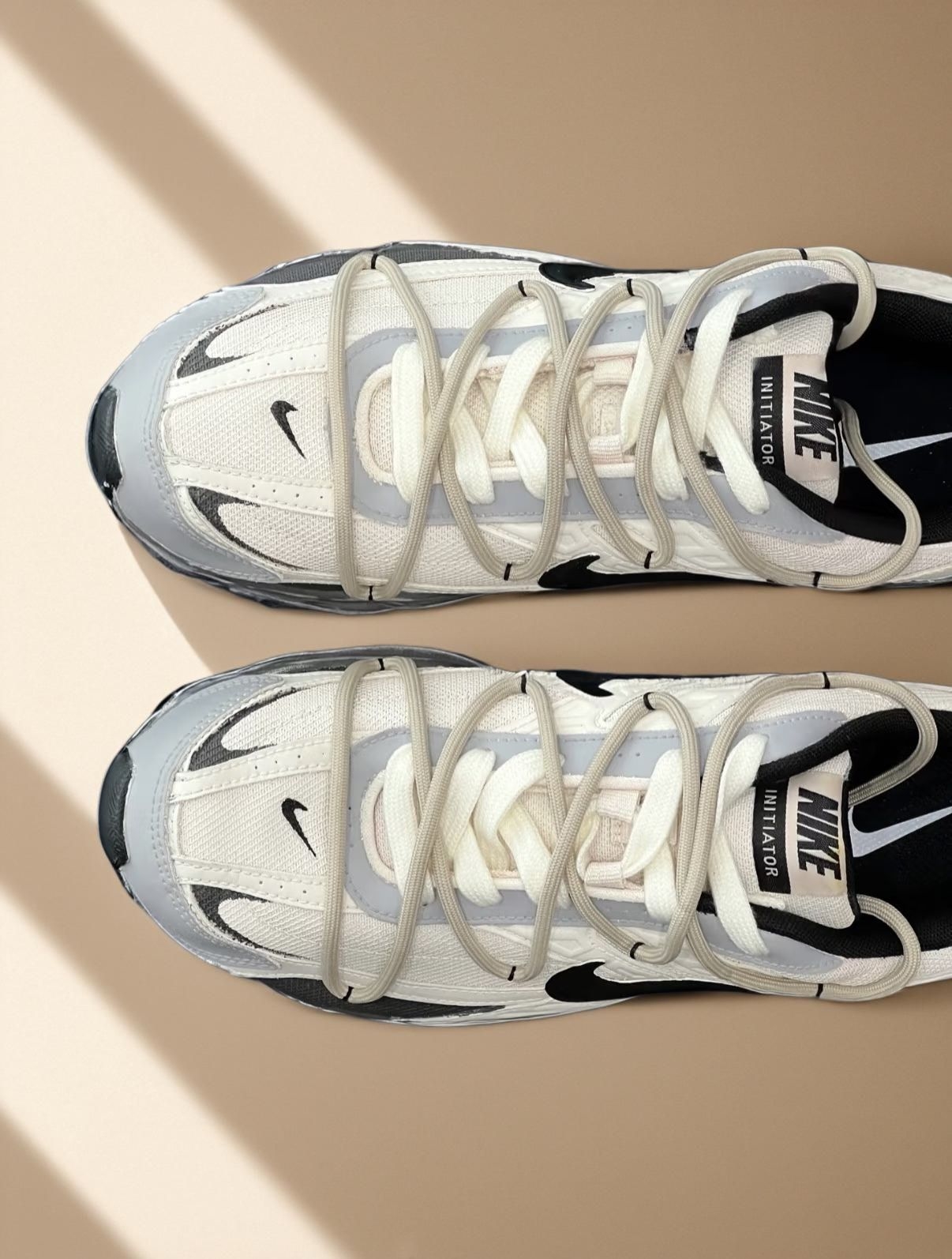 Nike Initiator的奶油灰调太戳了,复古老爹鞋的版型配双鞋带设计,细节感拉满! 奶白+水泥灰的配色高级又百搭,脚感软弹还显腿细,这双真的闭眼入