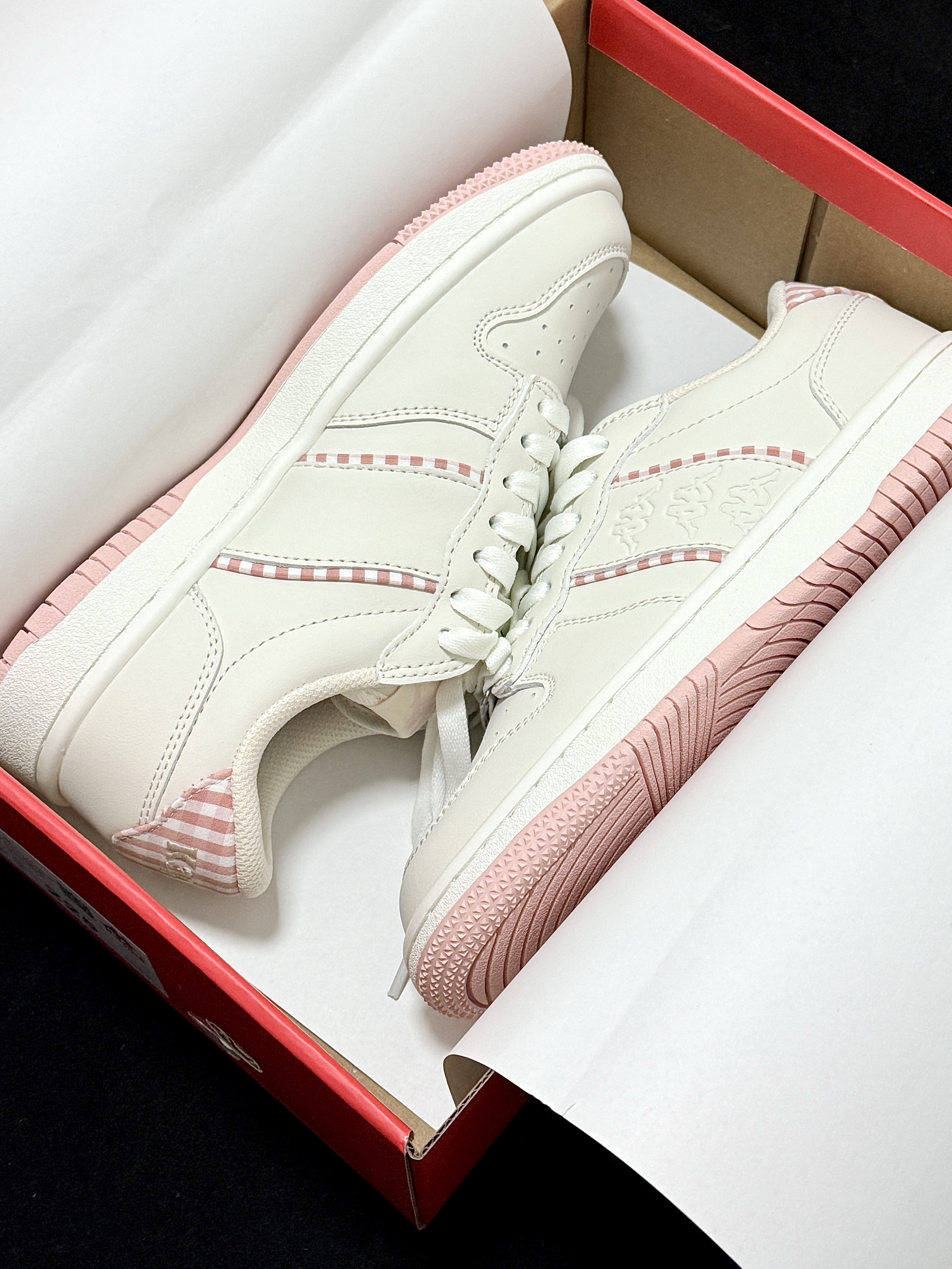 一眼就心动的kappa家这双少女粉小板鞋 粉白格设计粉粉嫩嫩的 上脚好有甜妹感 平时搭配牛仔裤还是小裙子我感觉都蛮好看的 元气满满又吸睛!