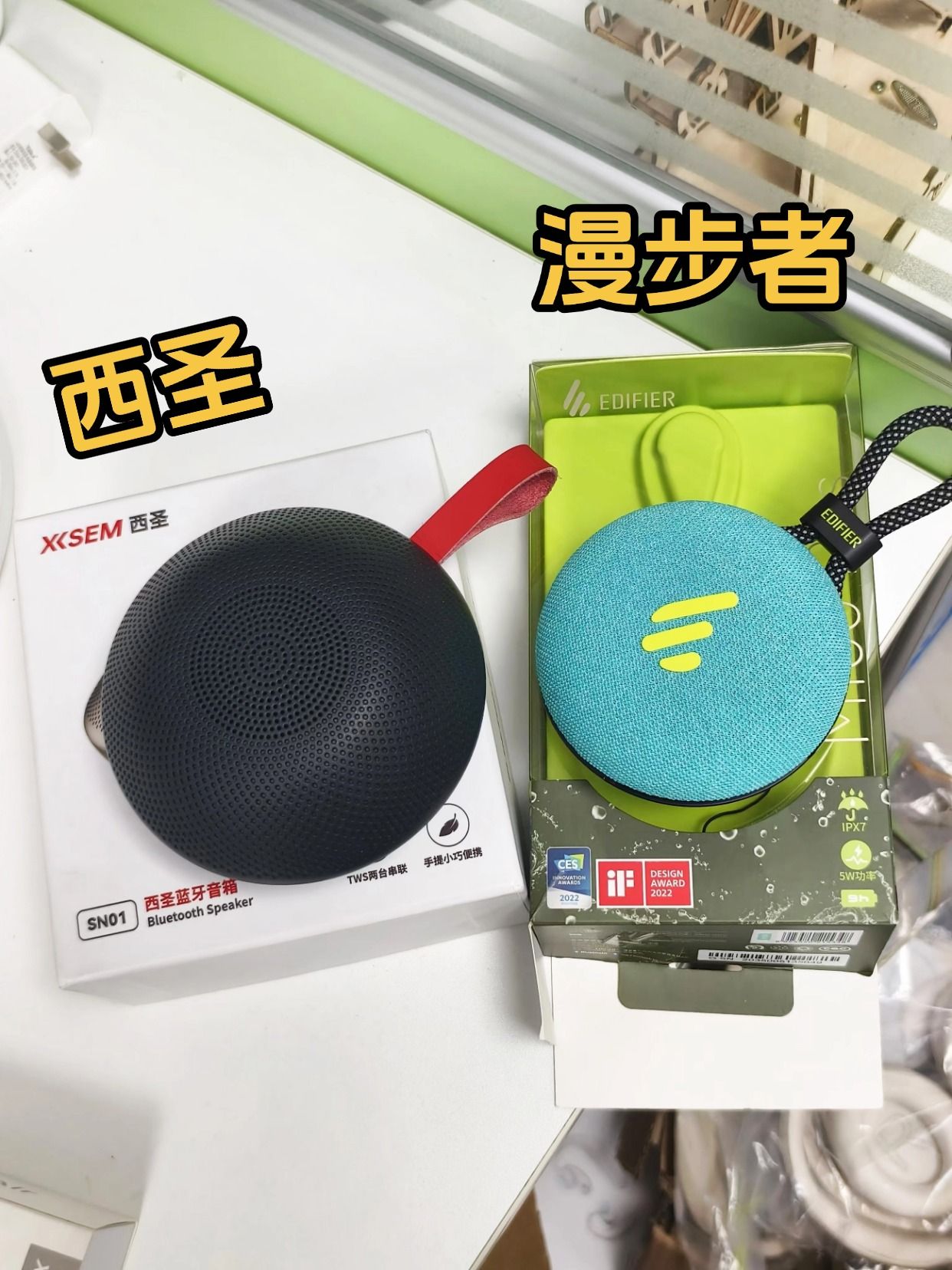 西圣SN01、漫步者M100 Plus蓝牙音箱。 玩游戏比较少,听流行歌比较多,偶尔听听小说,之前老带去的一款退休了,于是就尝试了这两款。 💓西圣SN01蓝牙音箱: 音箱实际上手很轻,连接很快,声音也不错。 听流行歌很清透,人声也不闷。 电池很耐用,听了一下午还有电。 可以双设备连接,也可以接听电话。 💓漫步者M100 Plus蓝牙音箱: 都说颜值好,实际拿到手配色也是挺好看的, 圆形的设计也挺特...