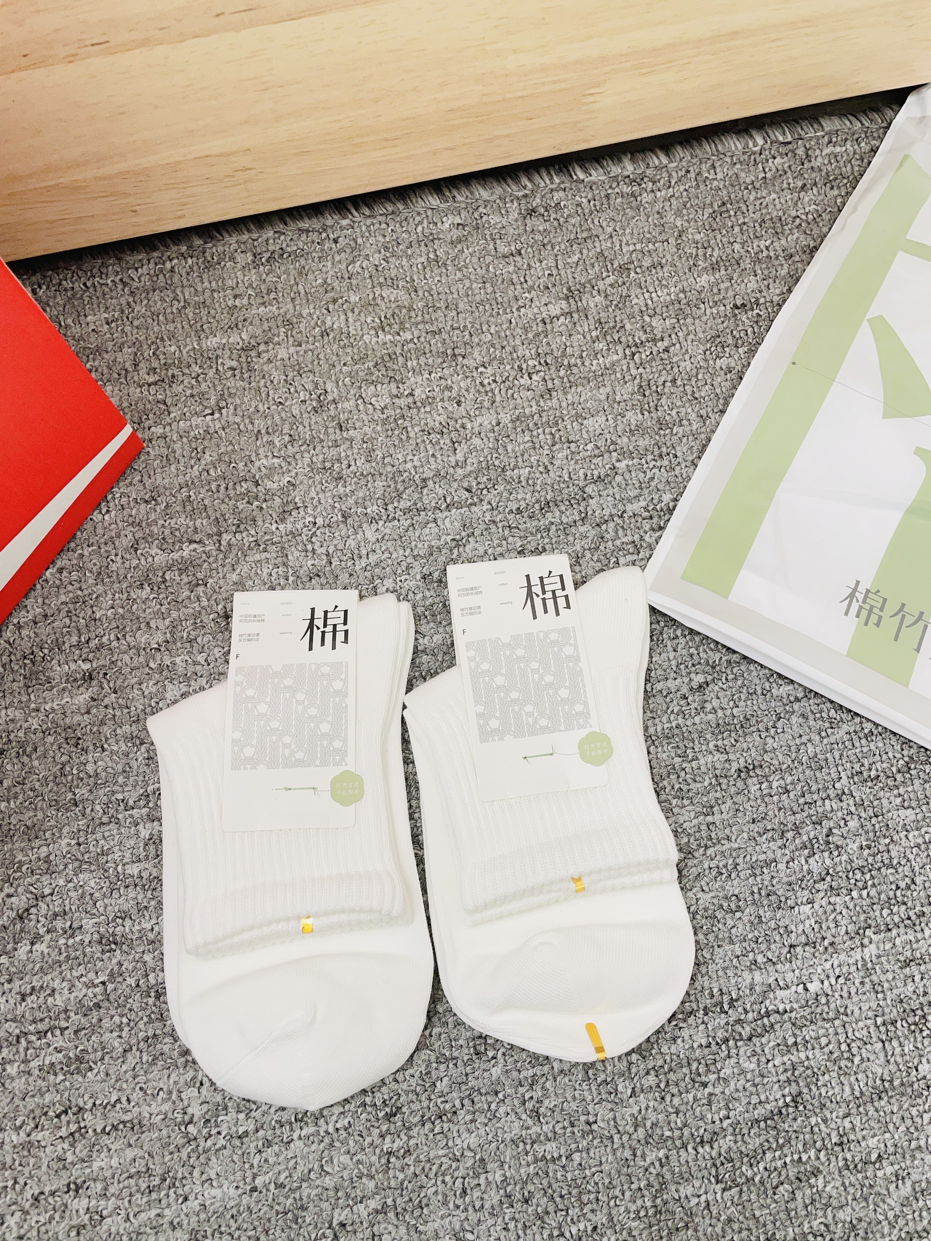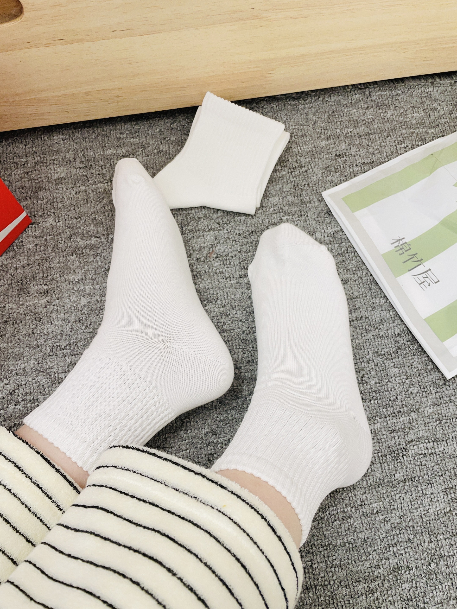 嘻嘻嘻距离春节还有一个多月咯 我给自己安排了新的袜子准备过年穿 棉竹屋这款小白袜子好好看啊 我摸着面料柔软舒适 细节做的可以没有多余线头 我上脚穿了感觉蛮舒服的 也不会勒脚闷脚啥的 新年穿着随便搭耐克鞋都可