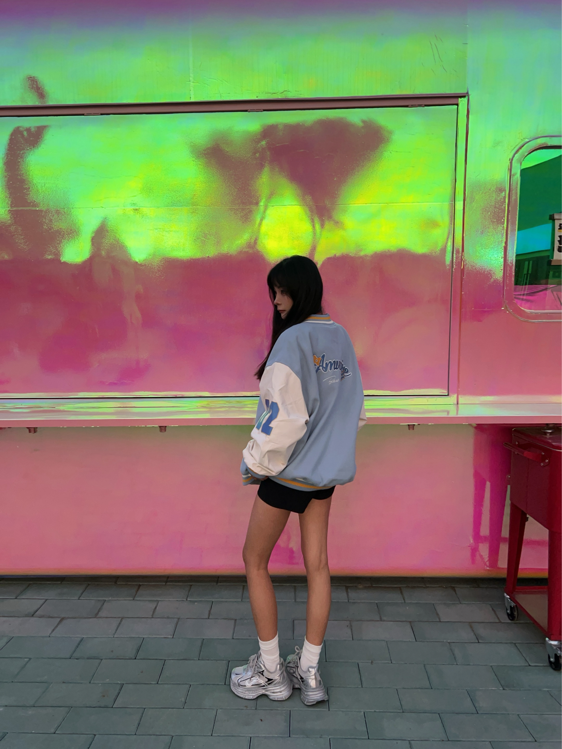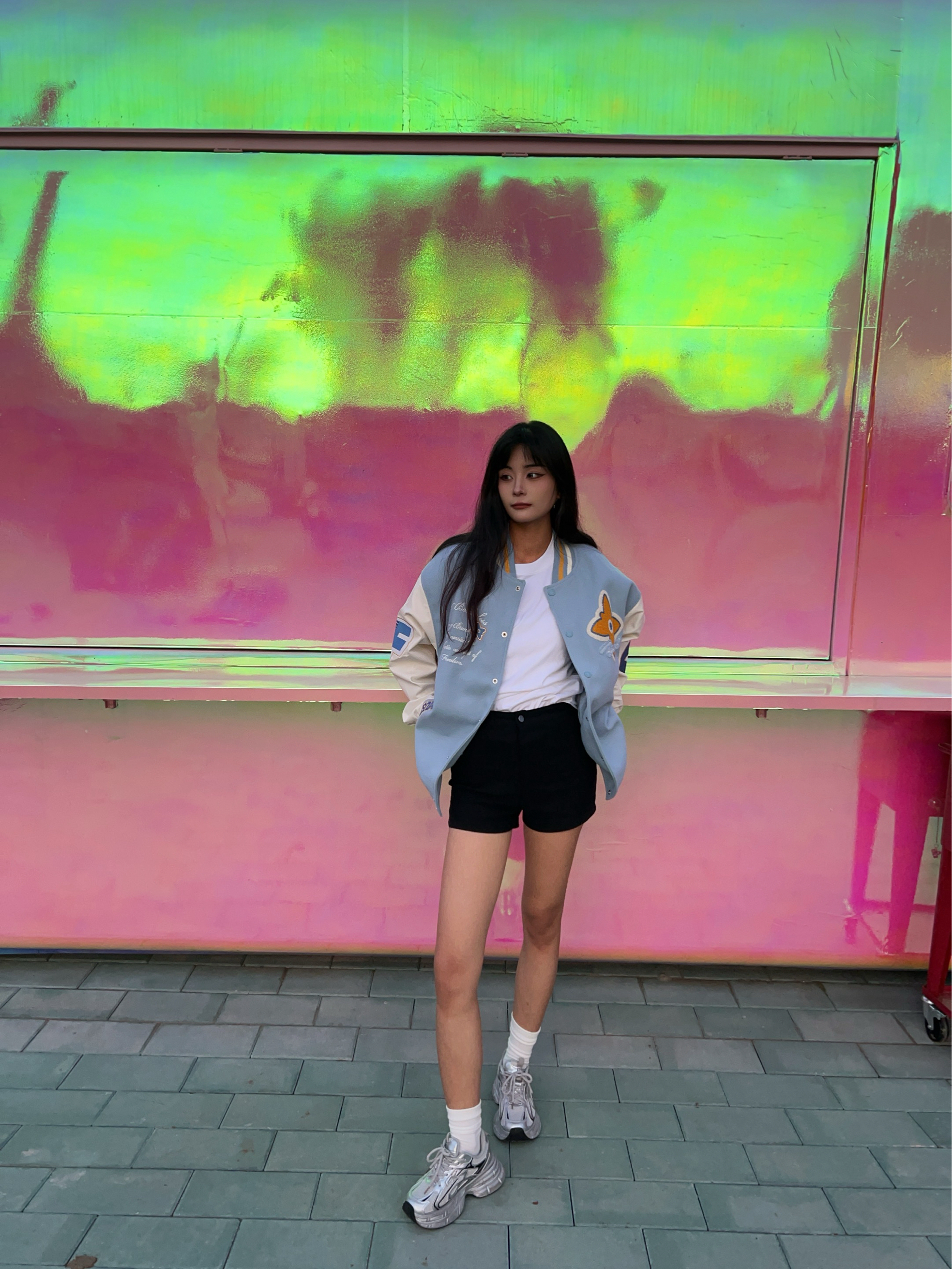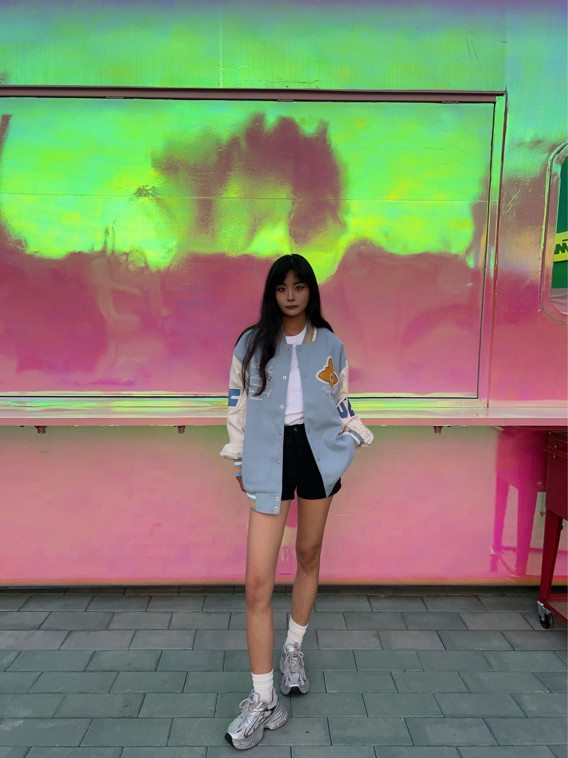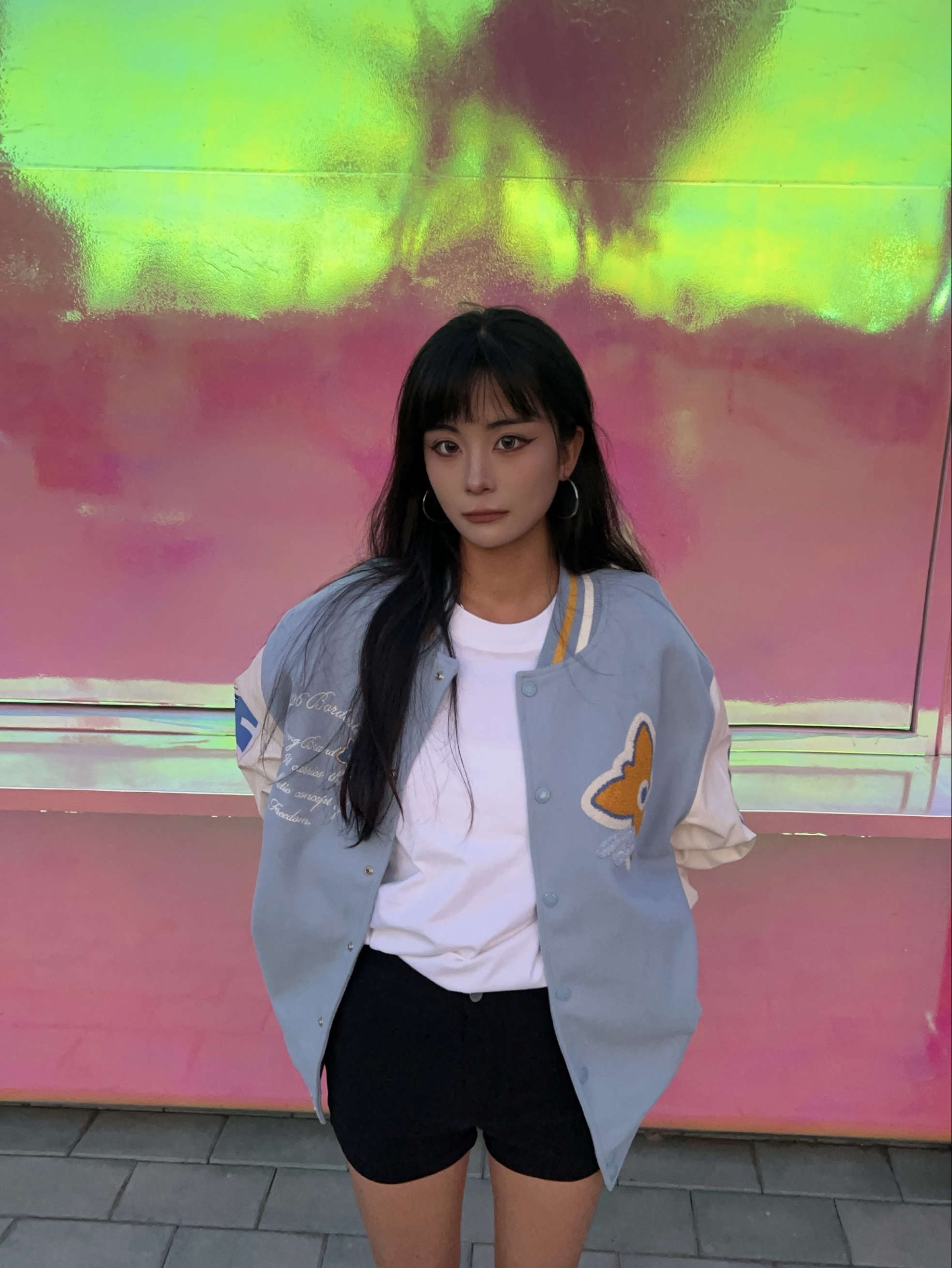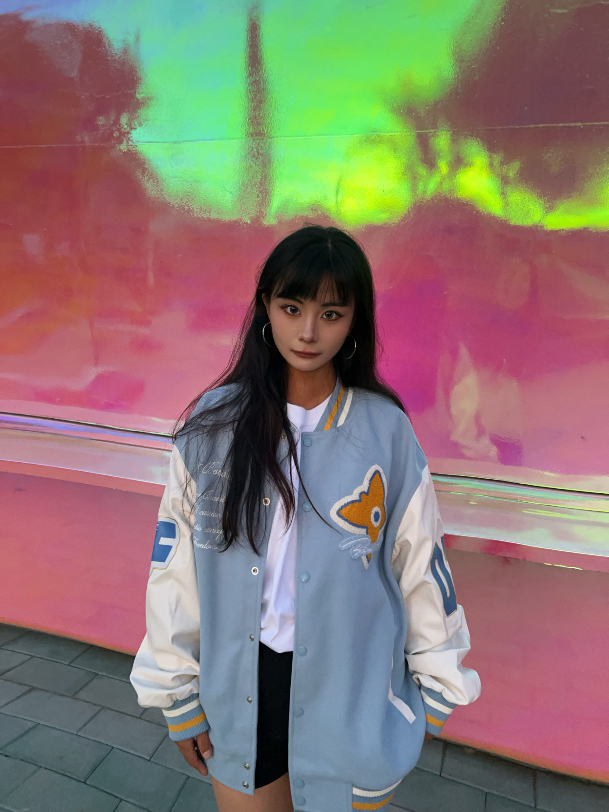 F426 的美式复古街头棒球服超帅气 超喜欢蓝白配色给人带来干净清爽的视觉 刺绣毛巾绣的字母logo很精致 面料是单面呢很柔软不扎皮肤 但很有型硬挺 袖子是优质仿皮面料也很舒服 出去拍照很上镜出片杠杠的!
