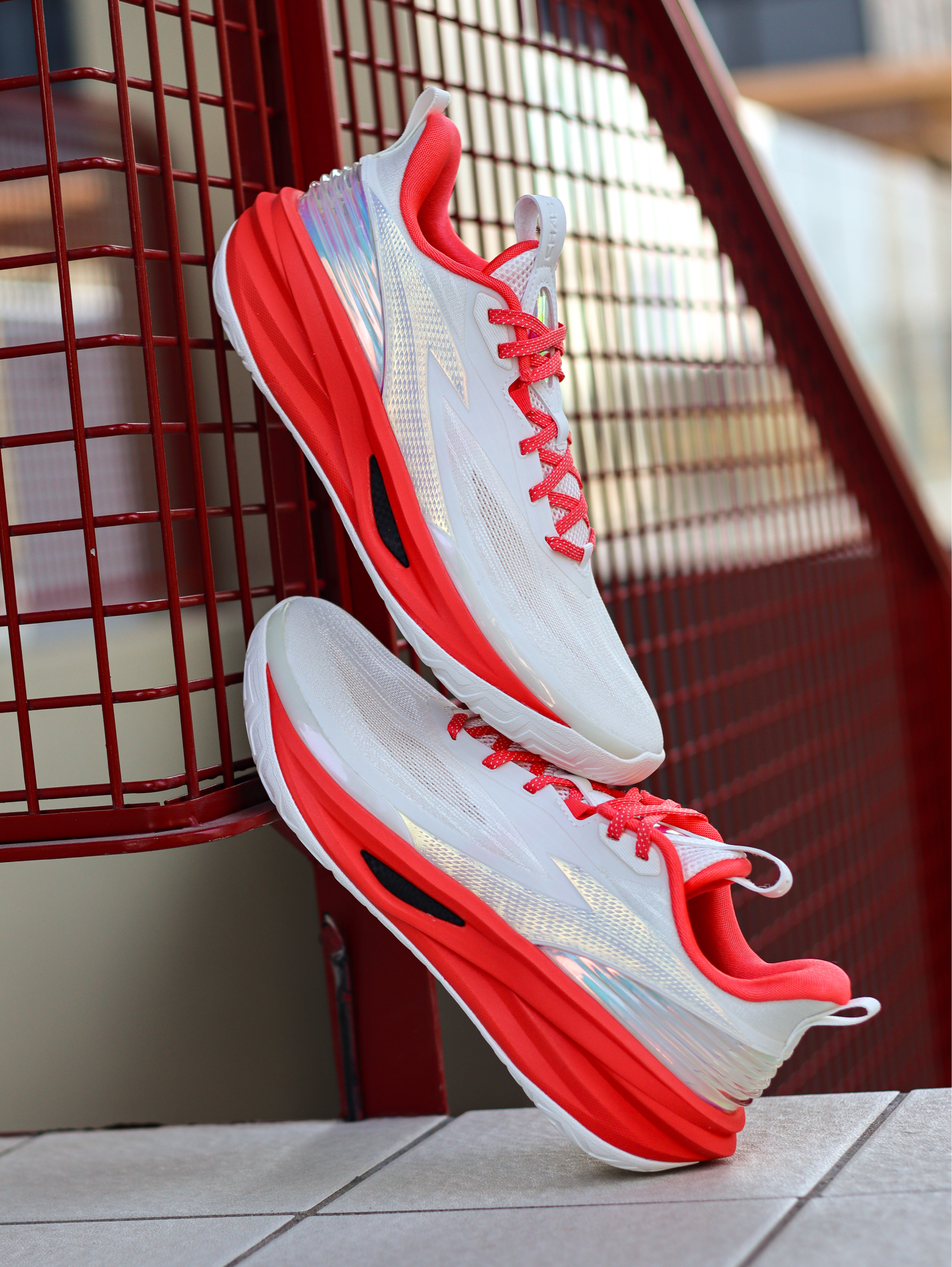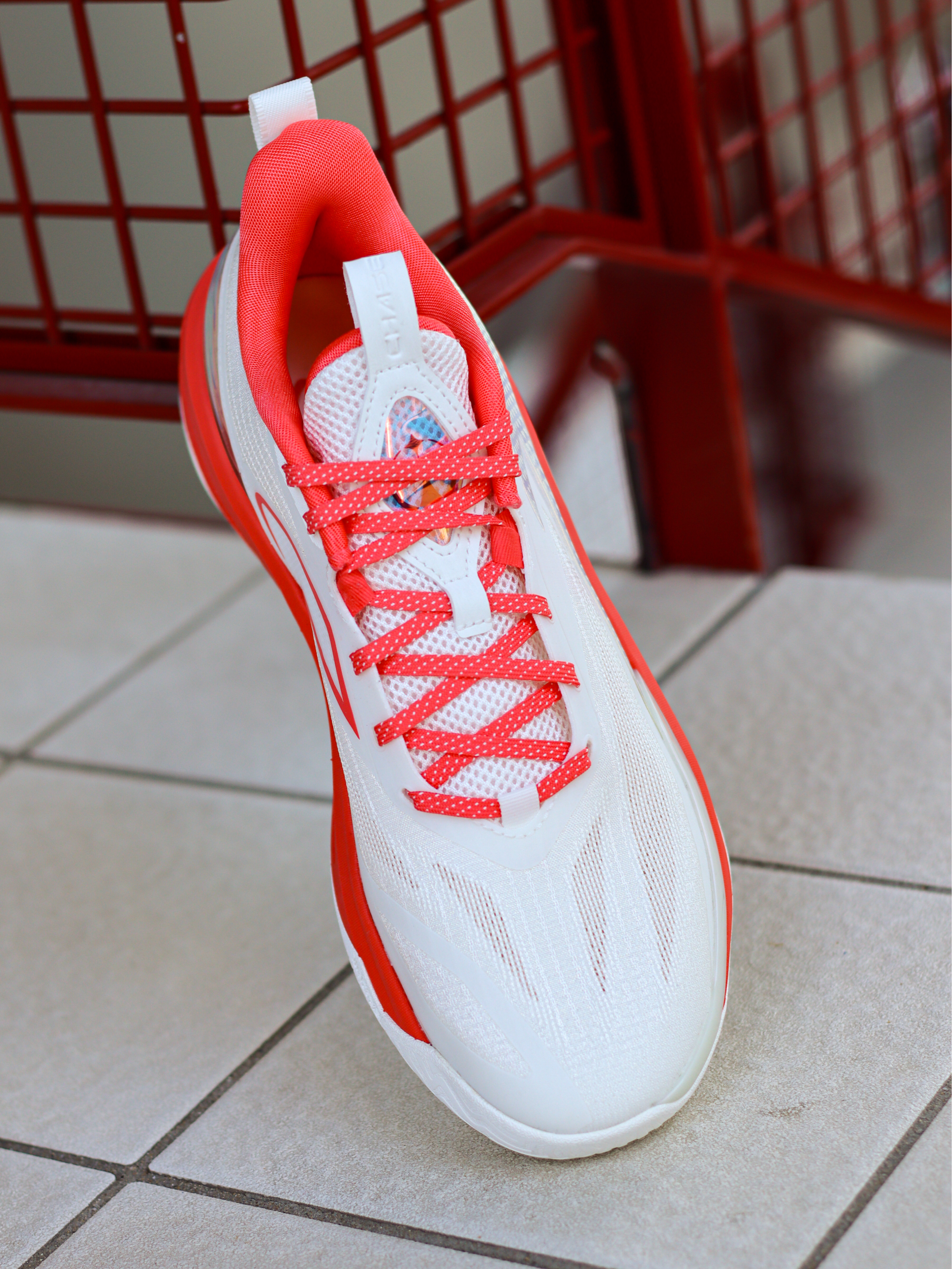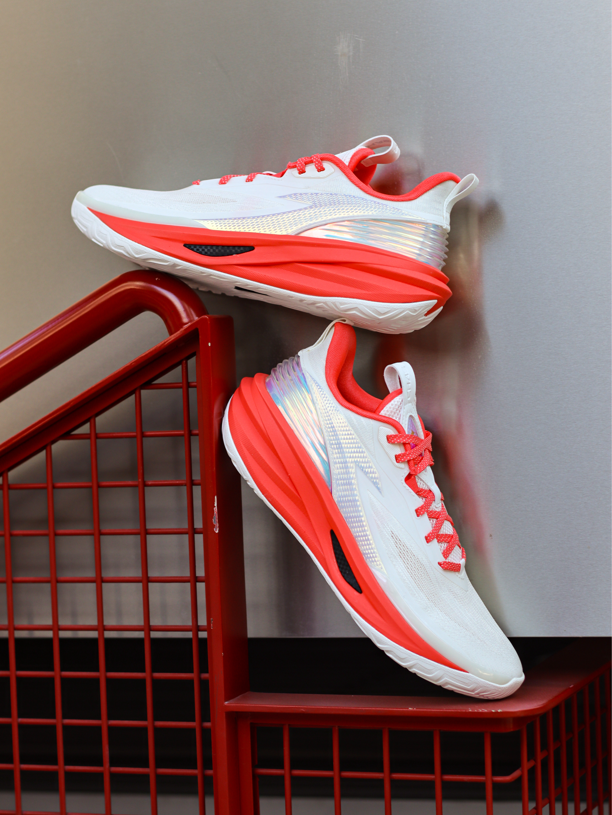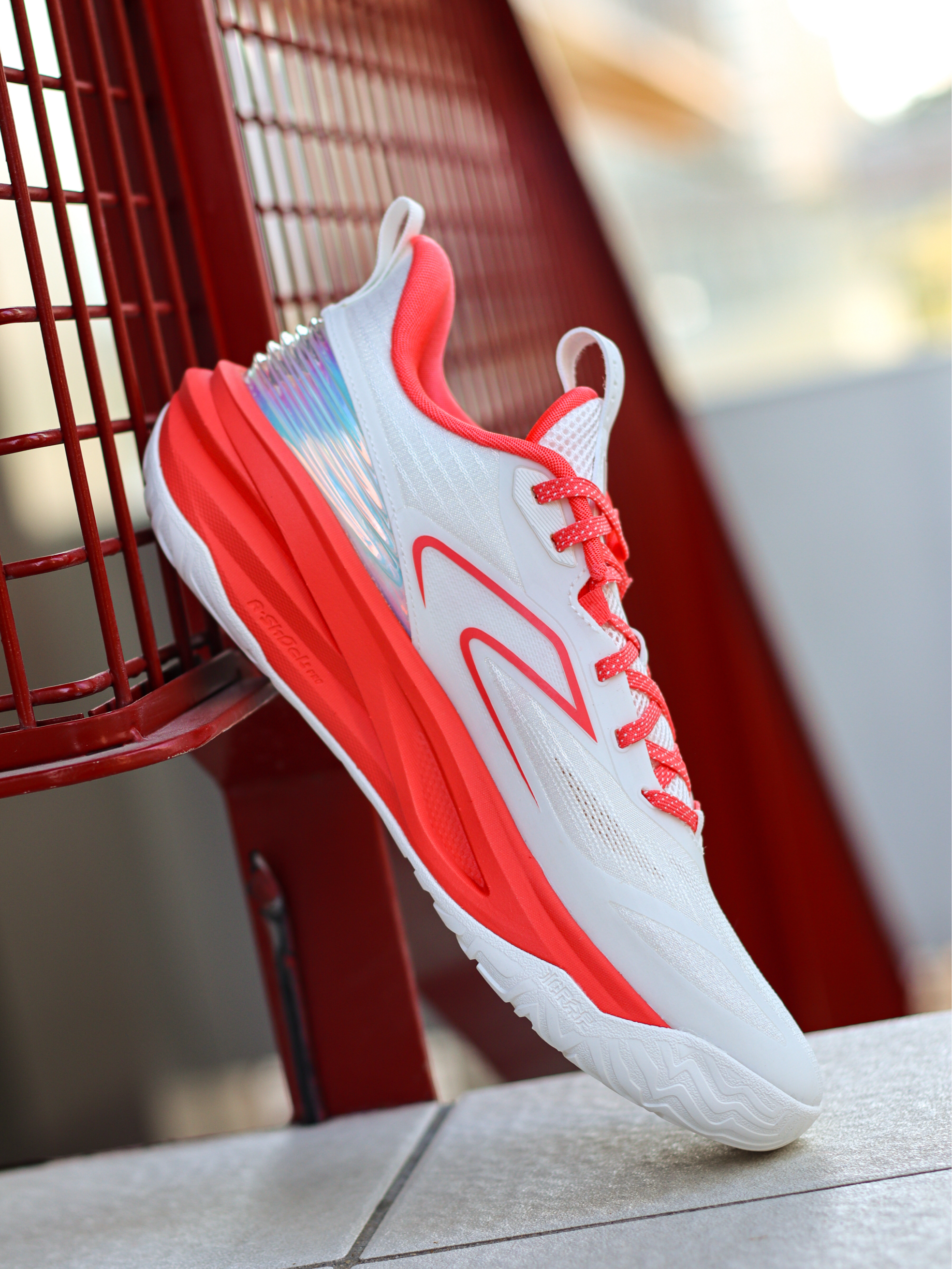 新年战靴当然首选白红配色了!安踏新出的这个追光1代「红外线」配色来的太及时了~ 白红搭配简约又很有新年氛围感~鞋侧logo和后跟都有点珠光炫彩的感觉,上脚很吸睛! 整个鞋型很有速度感,原来这次采用了ASHOCK-PRO框架+全掌氮80,篮球鞋融入了跑鞋黑科技,既能抗撕裂,又有高回弹!确实是为突破爆发而生~ 中足还有一块X型的柔性碳片,增强抗扭性的同时又比较容易驾驭~磨合起来还挺顺畅!橡胶大底搭...