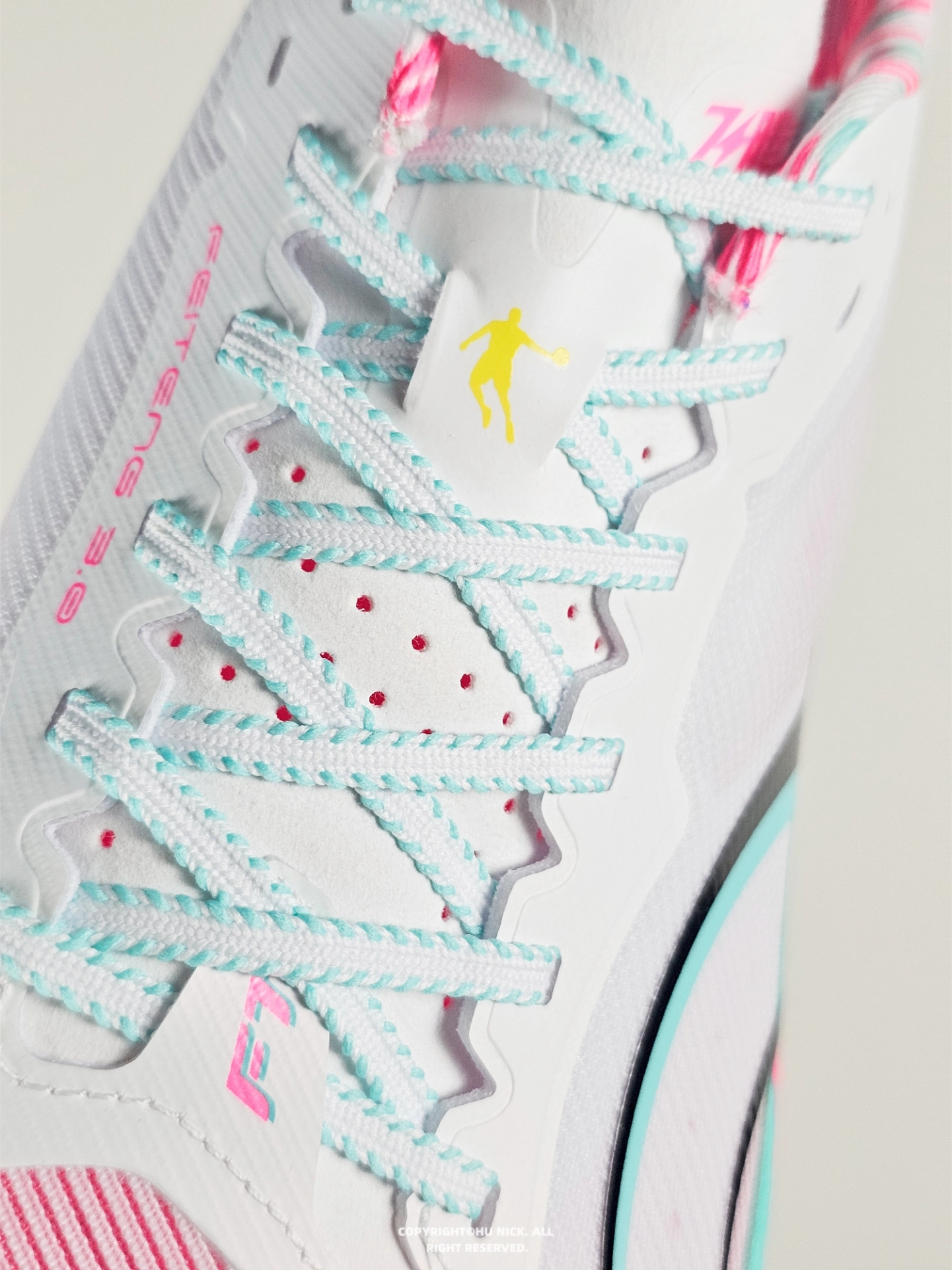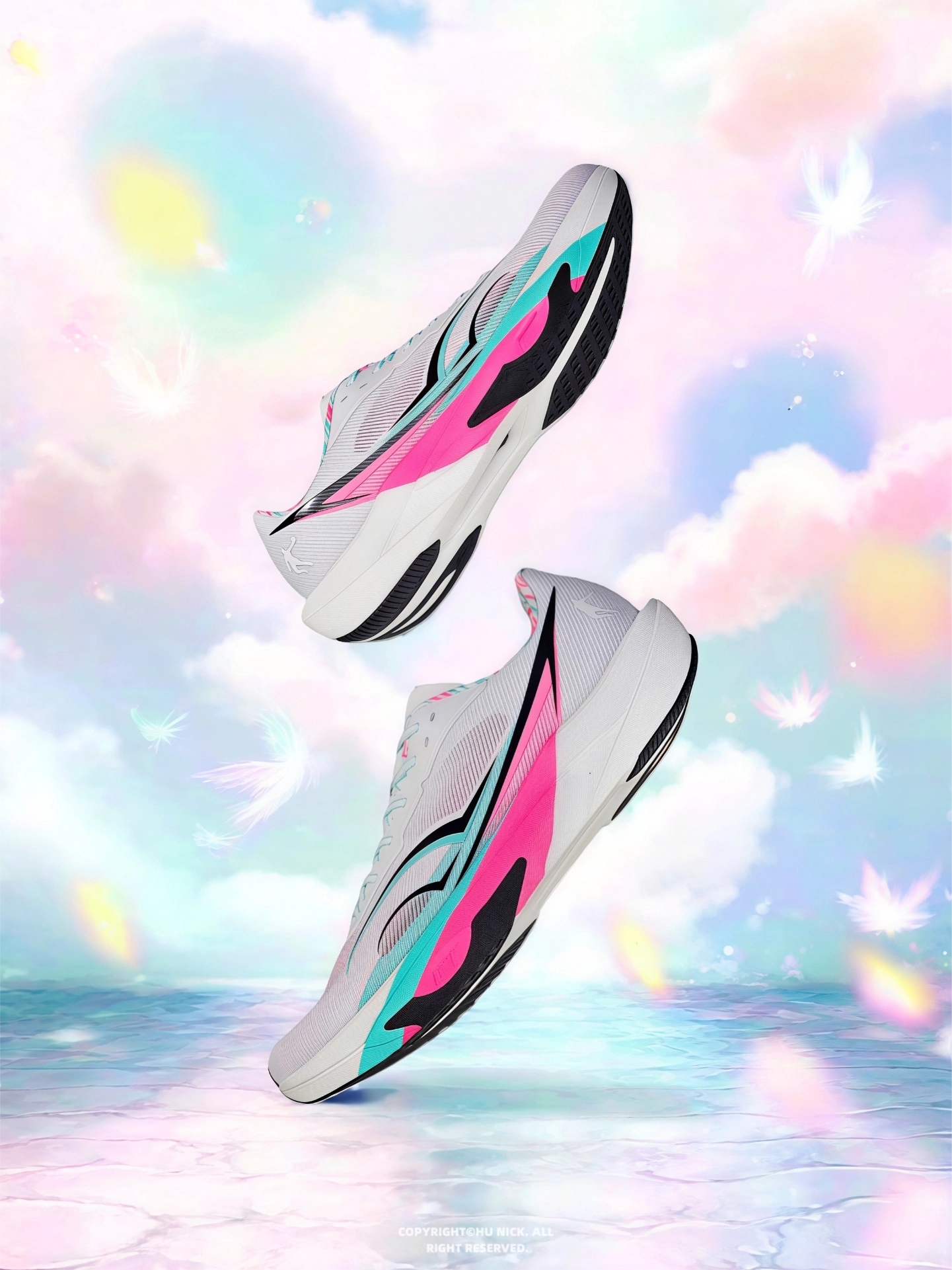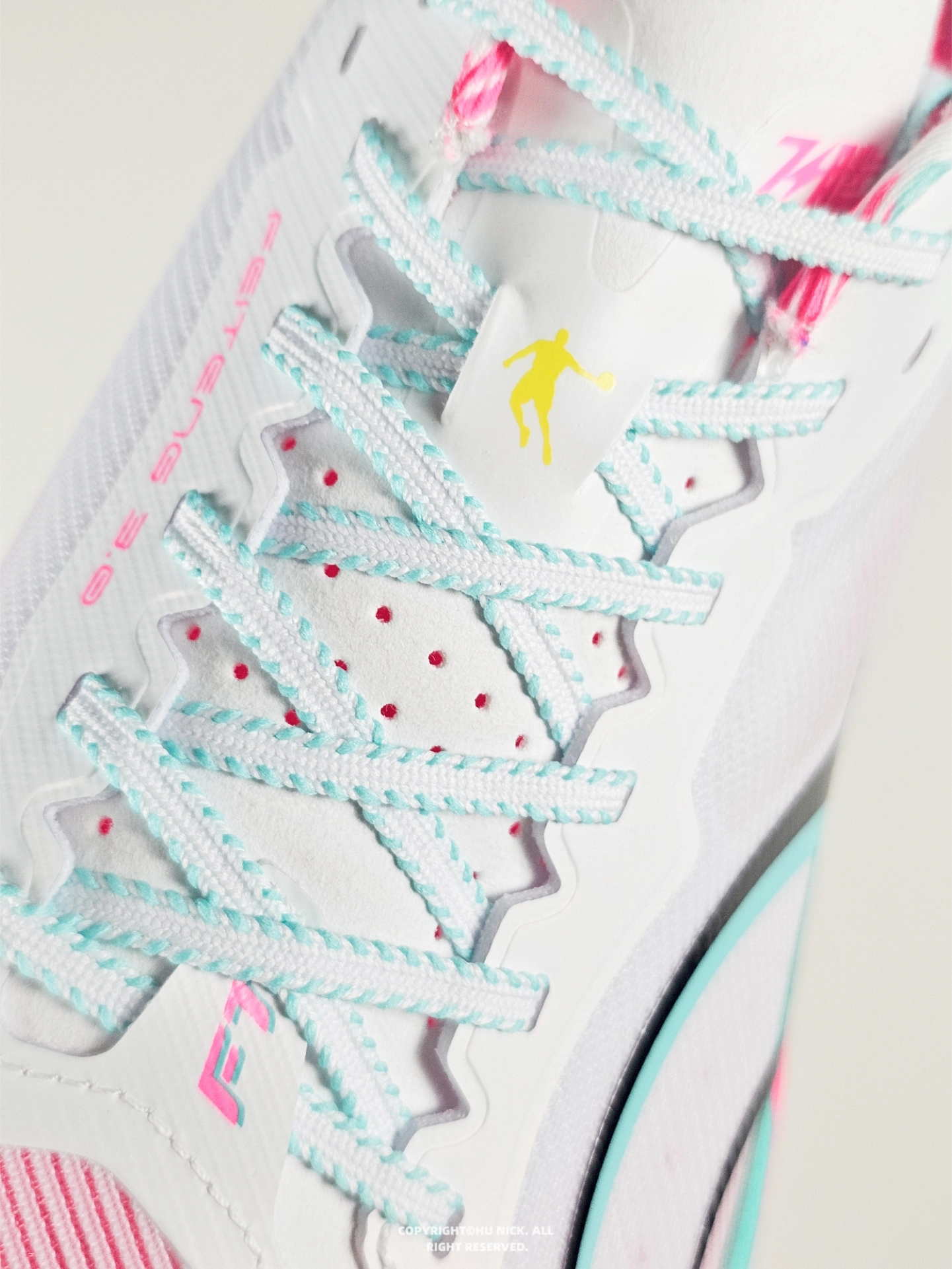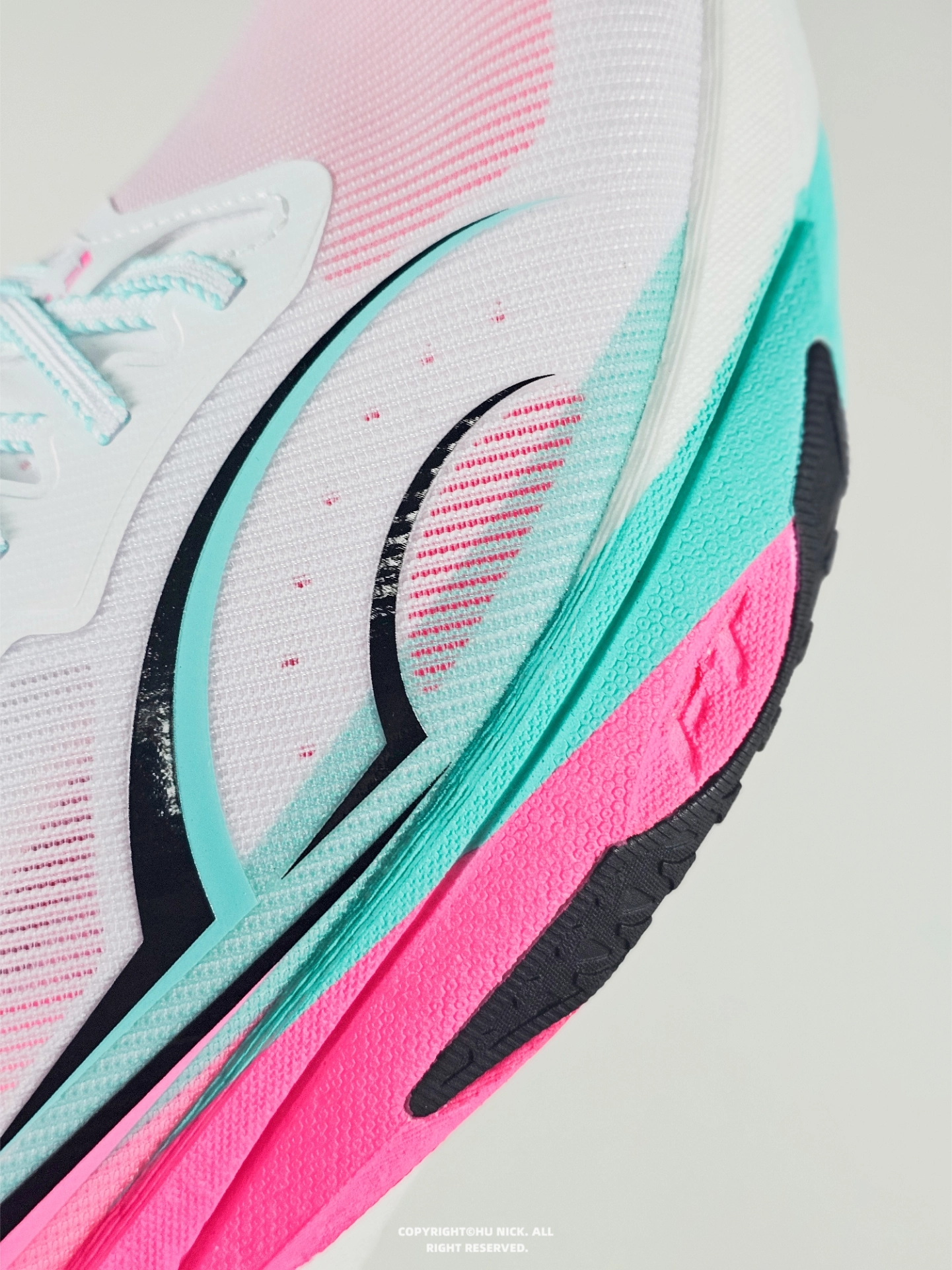 今天给大家分享的是中乔即将发售的飞腾 3.0。 这双「彩虹斑马」还是有够帅的,白色鞋身搭配粉蓝相间的中底一直延伸到鞋面的LOGO处看起来很有速度感,内衬也做成了彩虹色的斑马纹,颜值还是很棒的! 作为一双偏薄底的竞训跑鞋整体的脚感偏韧弹,前掌的反馈也很迅速,全掌尼龙板和内外上翻的外底设计也让这双鞋有着很不错的稳定性,在过弯的时过度会更流畅。 #飞腾3稳过弯超在前 #飞腾3.0弯道超车 #飞腾3 #...