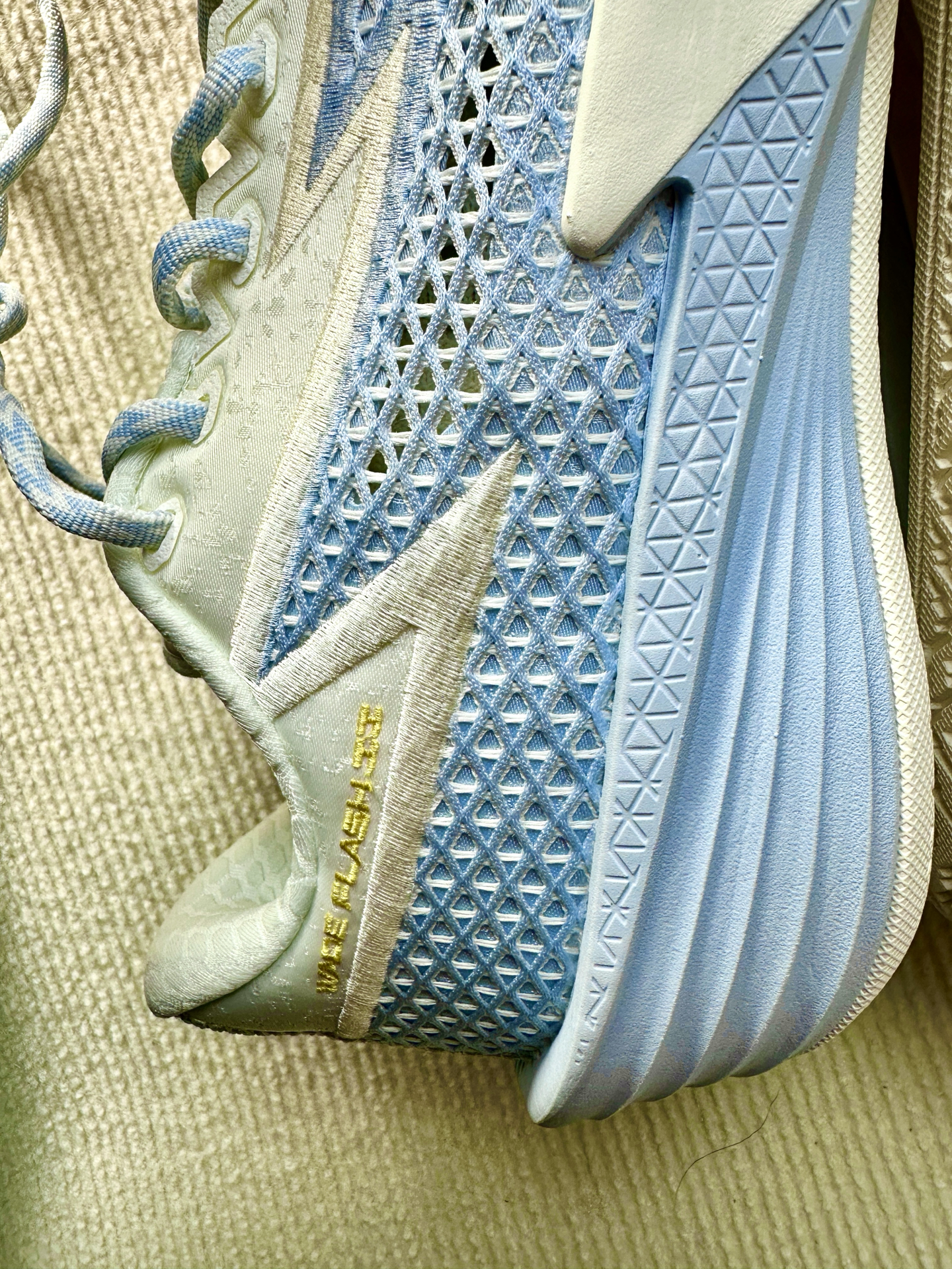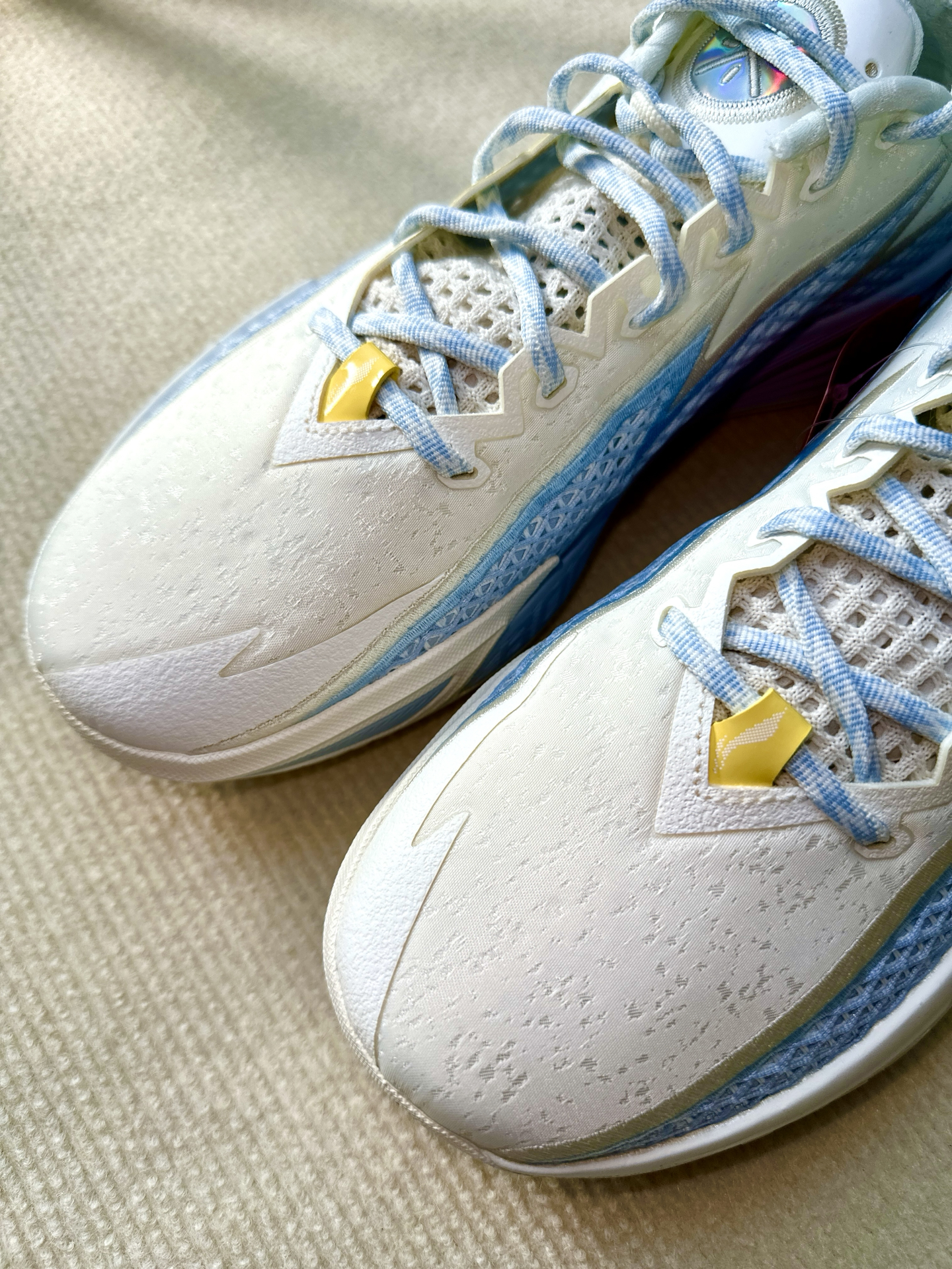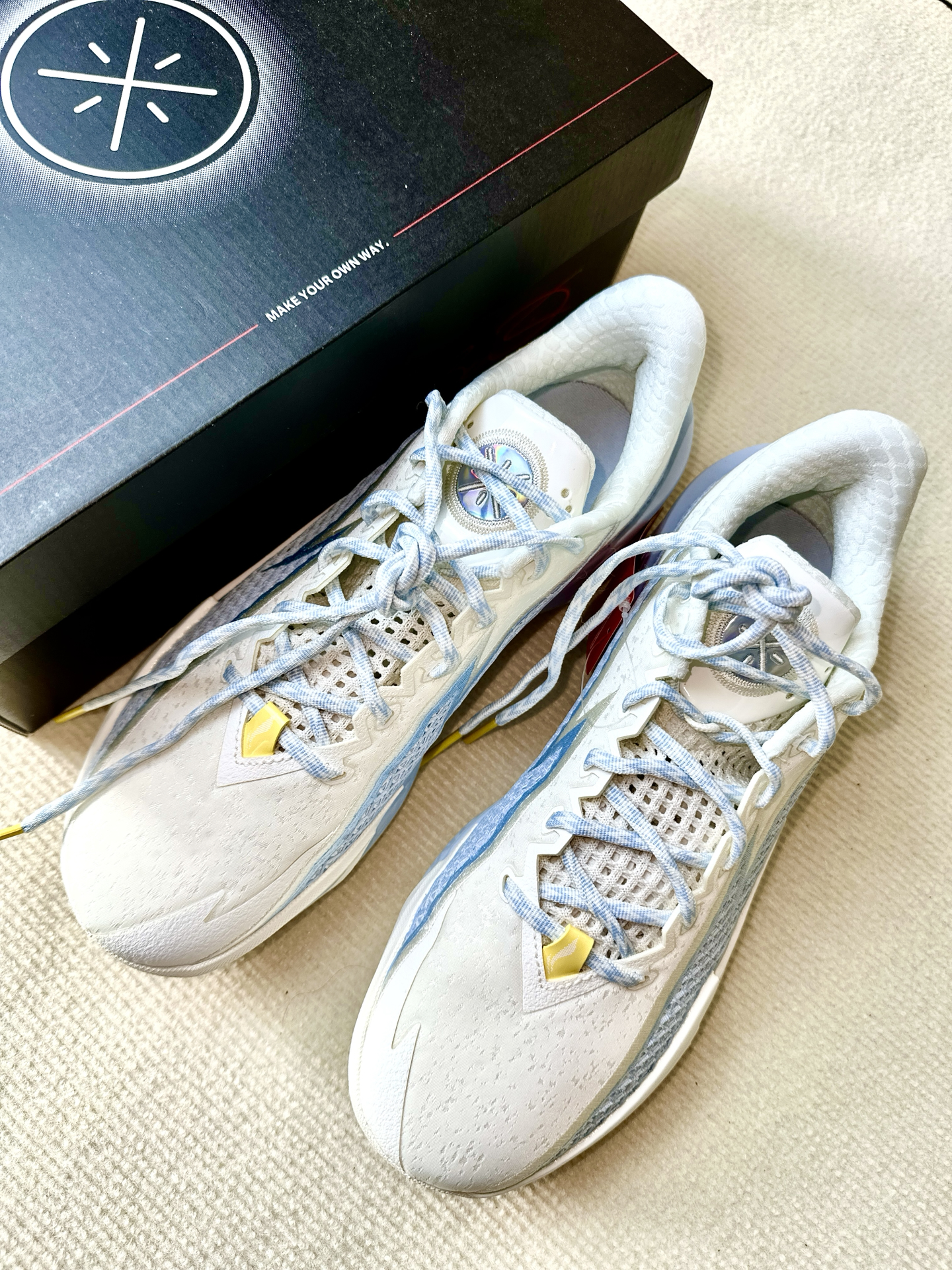 最近我开箱了李宁韦德闪电2,上手感觉比较轻,42码单只305克,没有什么负担感,仔细端详可见球鞋设计的细节也比较多,大底纹路细密印有logo。这次配置上用的是lightfoam ultra➕全掌四雷,既要稳定性又要回弹感,我是130斤完全还踩不透,虽名为闪电像是一个适合小体重的球鞋,但是我感觉160斤完全能够。后跟细节设计和gt心有灵犀,颜值更加流线感了一些,我是略高脚背正常脚,穿上去没有感觉压脚...