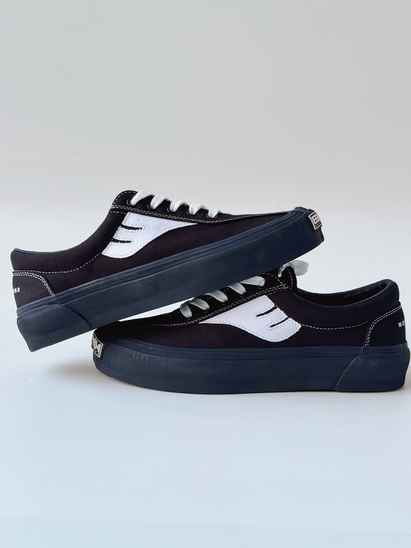 这双 EQLZ 404 OG 帆布鞋卡带黑配色是真对味儿,全黑帆布面料带点肌理感,手感挺括但不硬,鞋身的白色线条是 “卡带” 设计,跟鞋头那个做旧的 EQLZ 小标一搭,美式复古那股劲儿直接出来了。 鞋舌是薄款帆布的,不压脚背,鞋带是那种扁扁的棉绳款,系紧了也不会勒得慌。鞋帮做了轻微的加厚包边,穿低帮袜子也不会磨脚踝,这点比很多板鞋都贴心。 我 运动鞋穿40码,这双鞋楦宽松,鞋后跟的海绵垫也够软,...