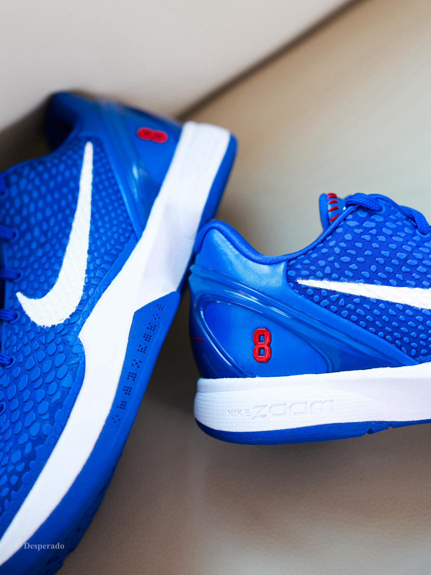 鞋款名称: Nike Zoom Kobe 6 Protro Dodgers 科比最喜欢的棒球队就是洛杉矶道奇了,道奇的这个经典的宝蓝色依然是经典的颜色,棒球的缝线设计也是非常点睛之笔,更可贵的是这种原本只做PE的配色也能做出来给市售真的很好。