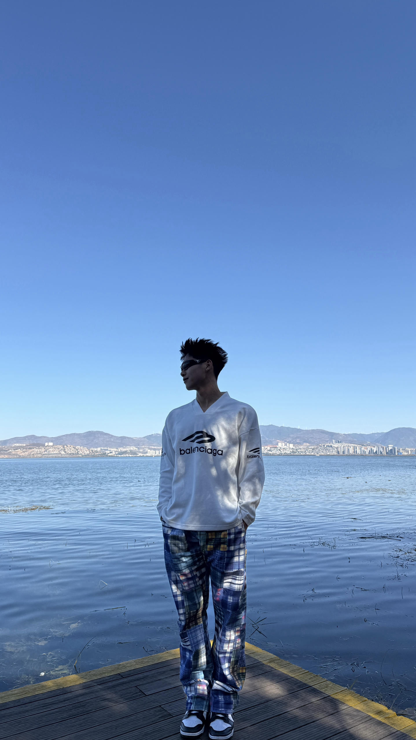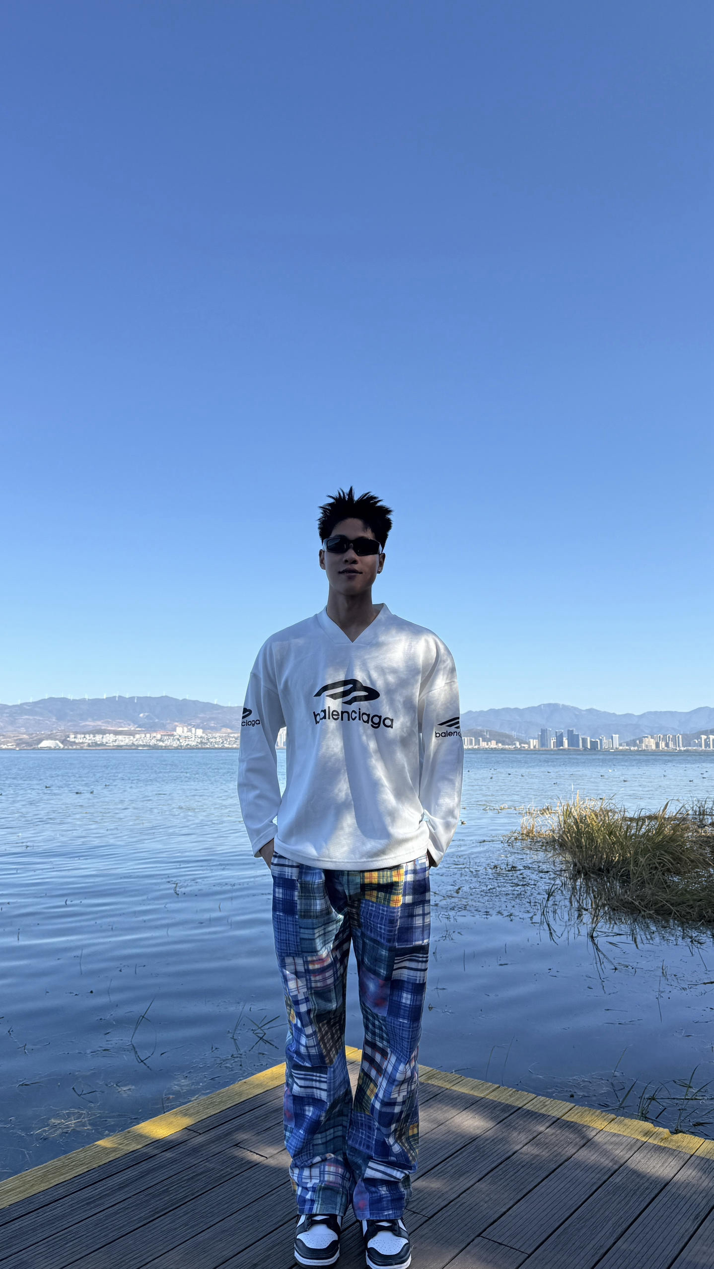 身高|体重:183/85公斤 🧍♂️ 穿搭风格:洱海休闲穿搭 👔 上衣:Balenciaga 👖 下装:百家布 👟 鞋子:dunk 熊猫