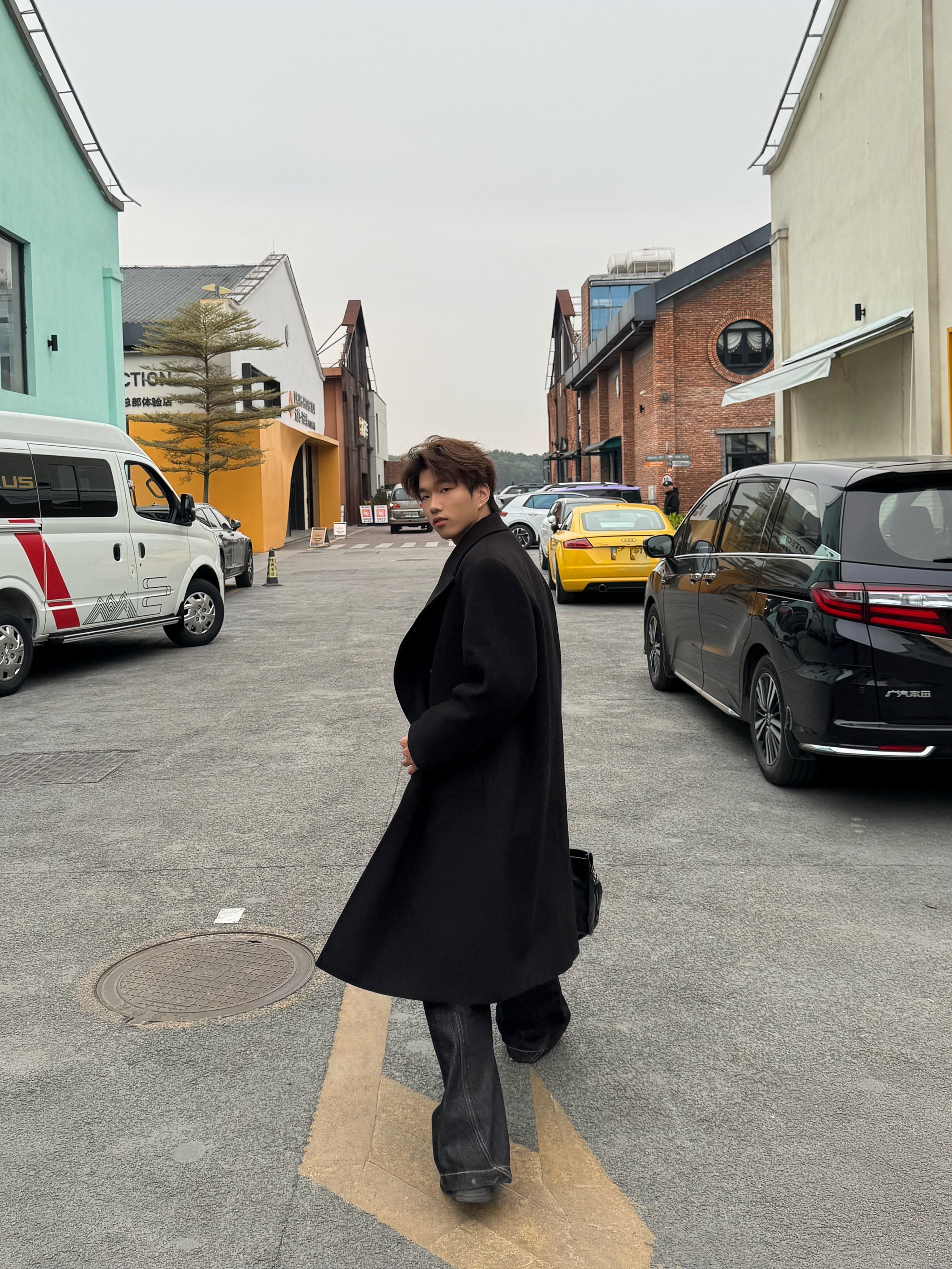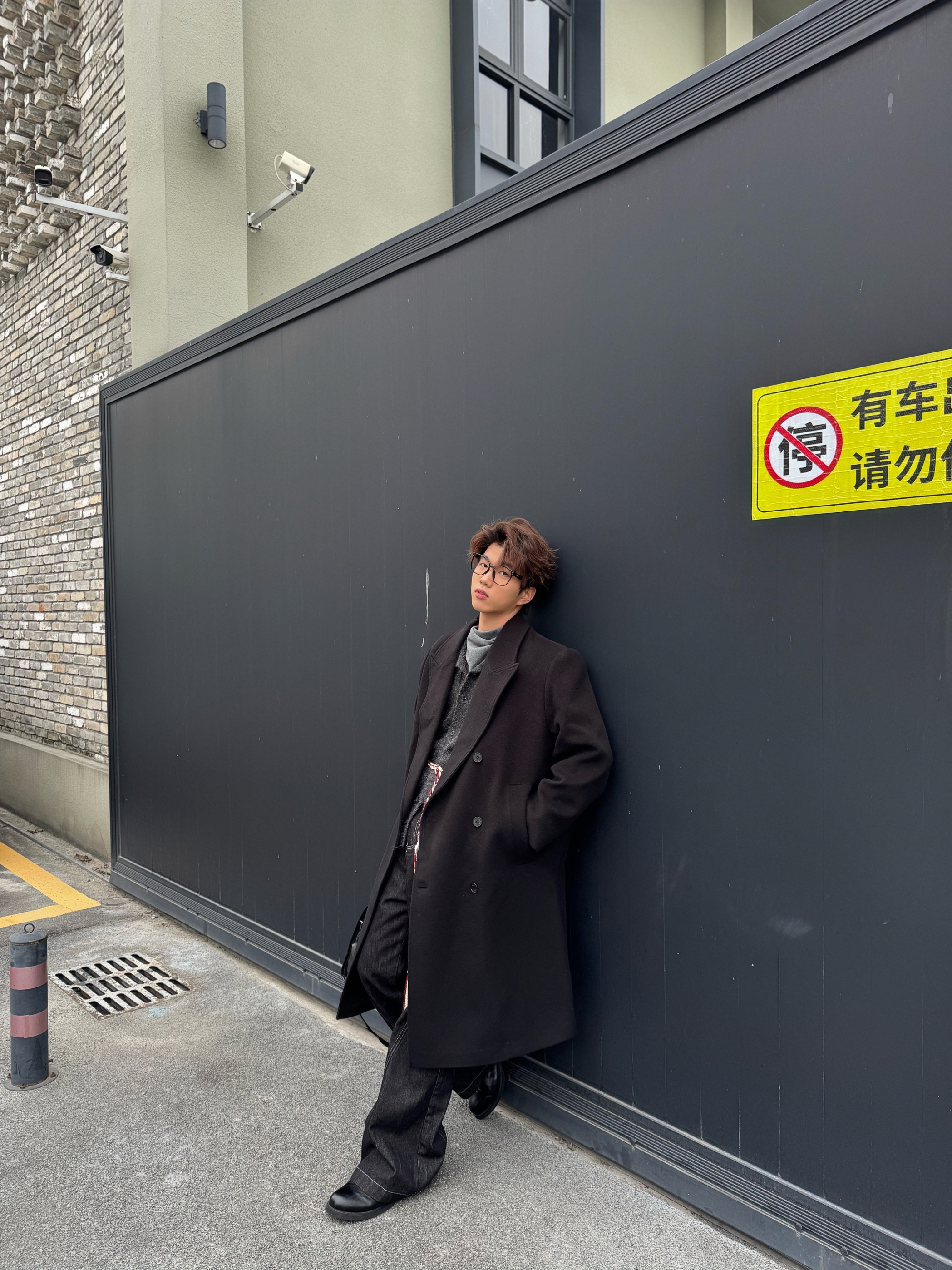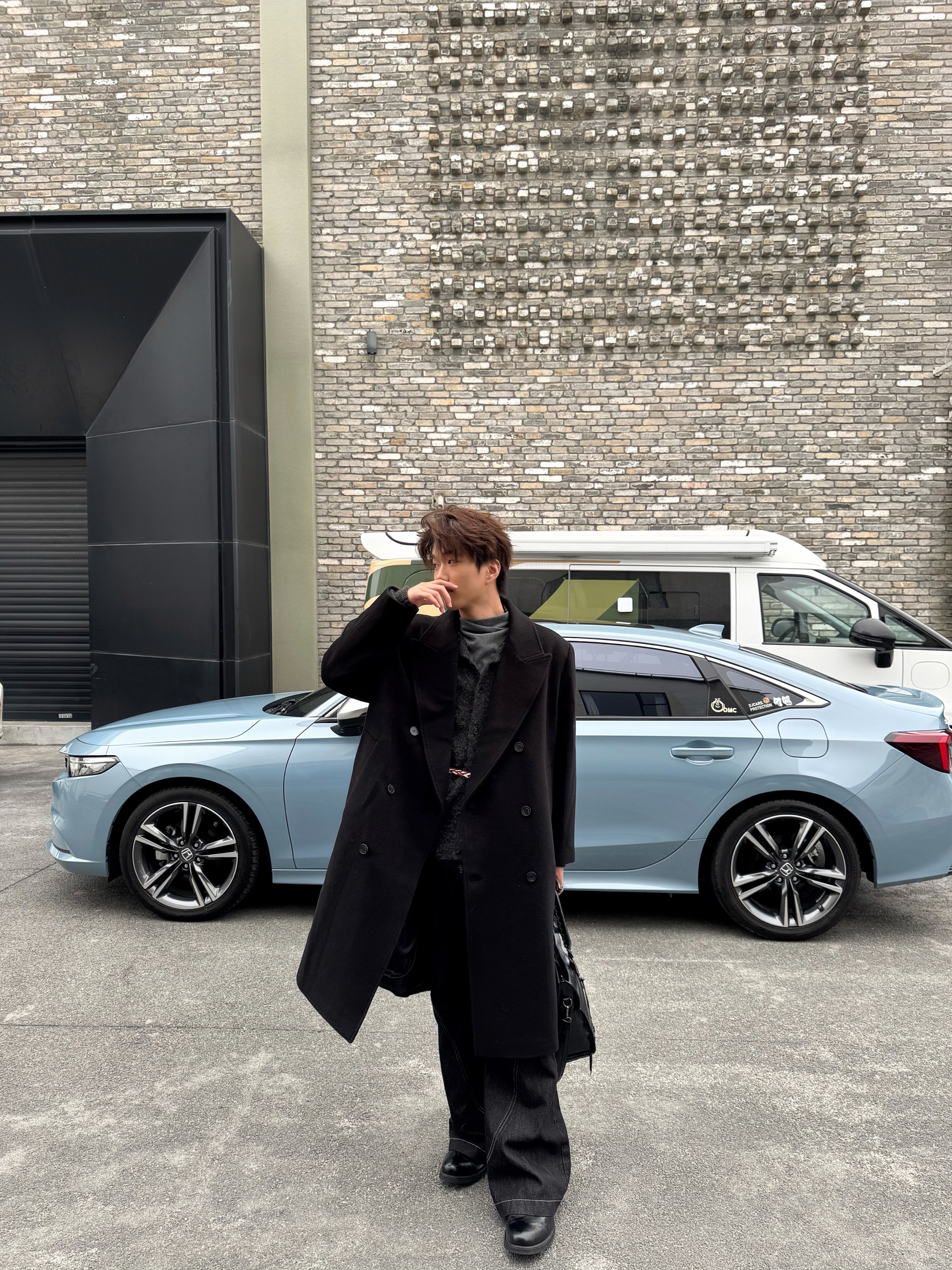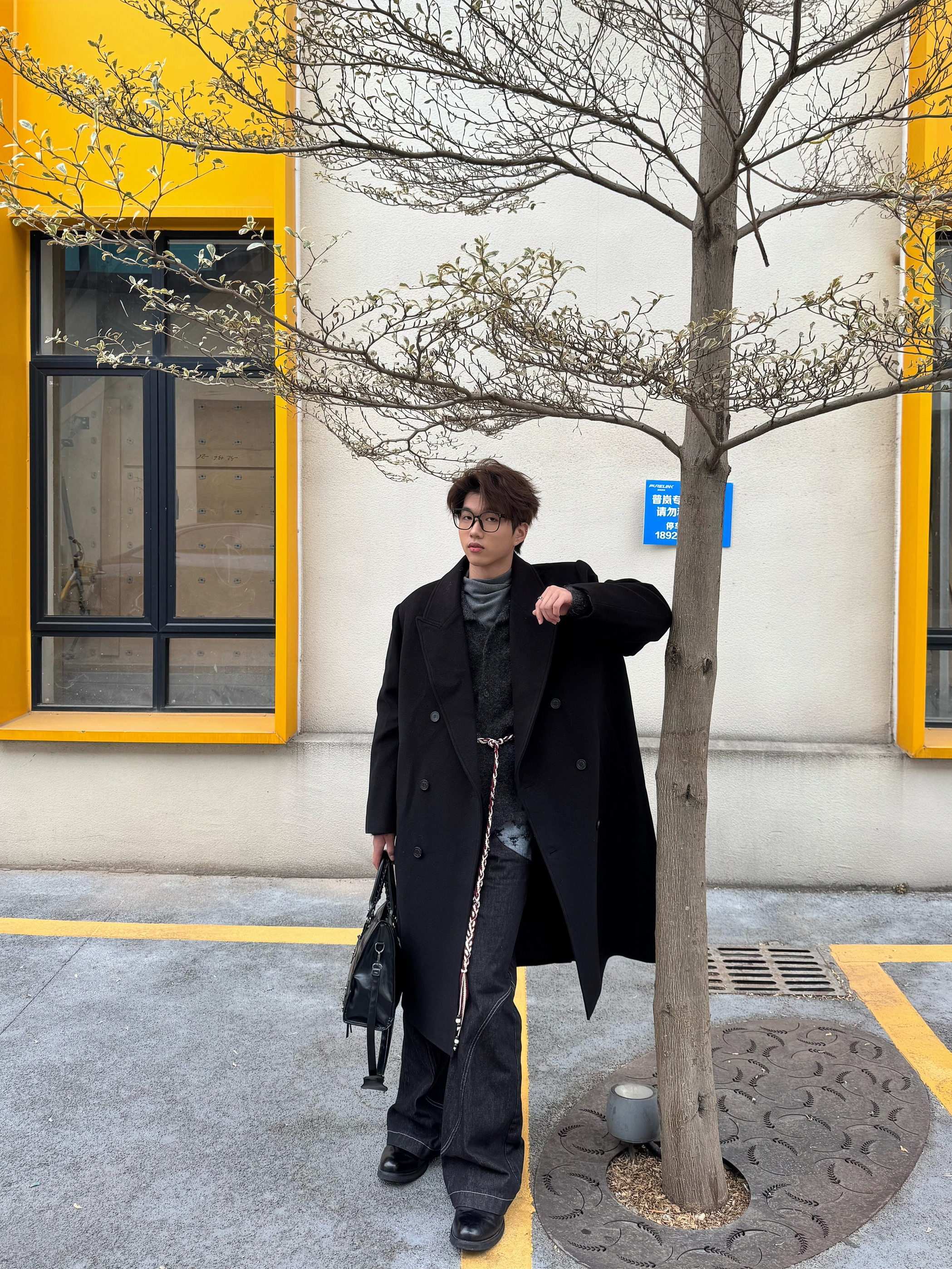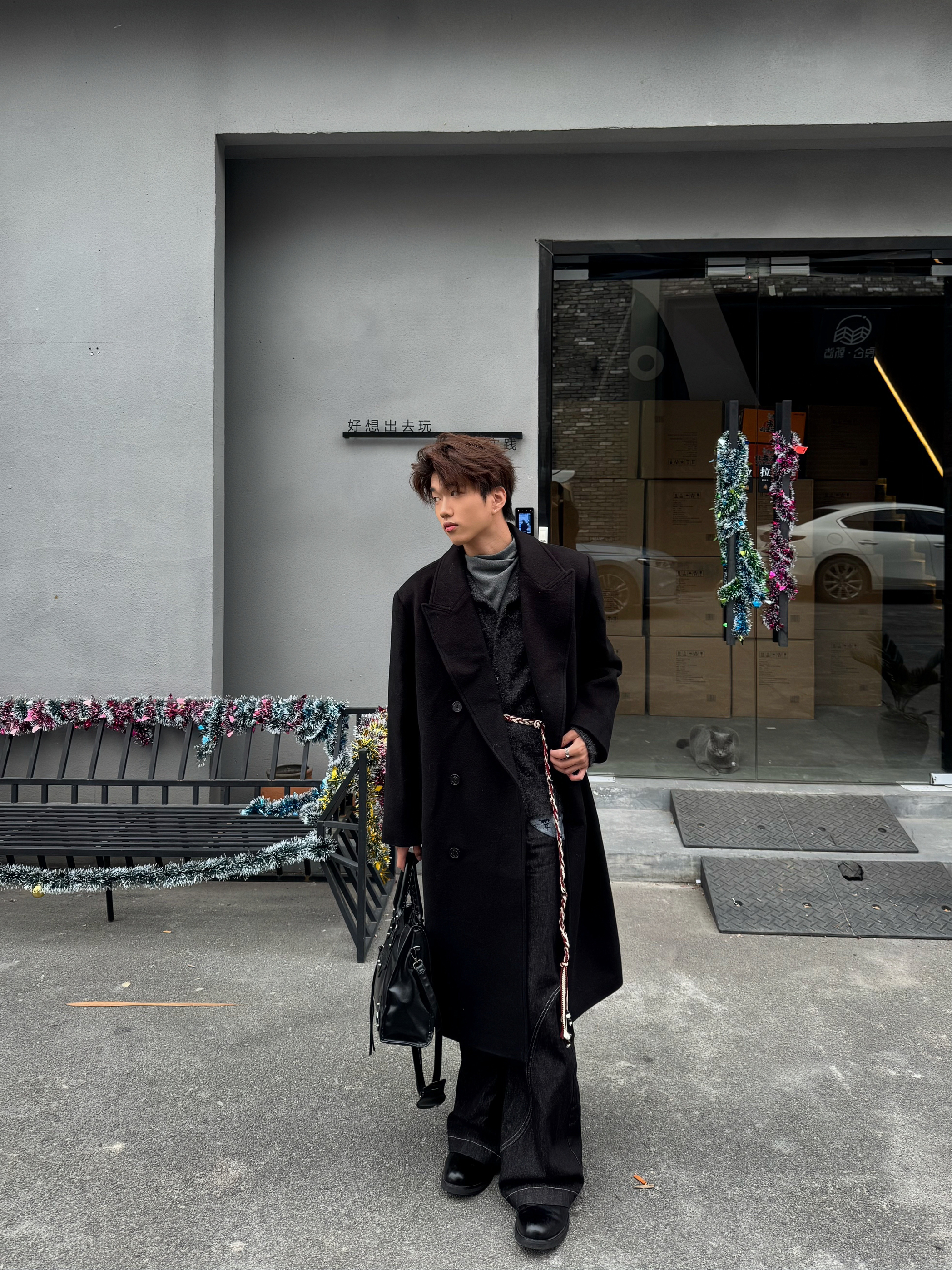 这套all black穿搭真的戳中我! 黑大衣宽肩廓形超立挺,内搭灰色高领中和了沉闷感,搭配黑裤和皮鞋利落又有层次。腰间的细链做点缀,再拎个黑包,细节感拉满,走在街上随性又酷,特别有氛围感