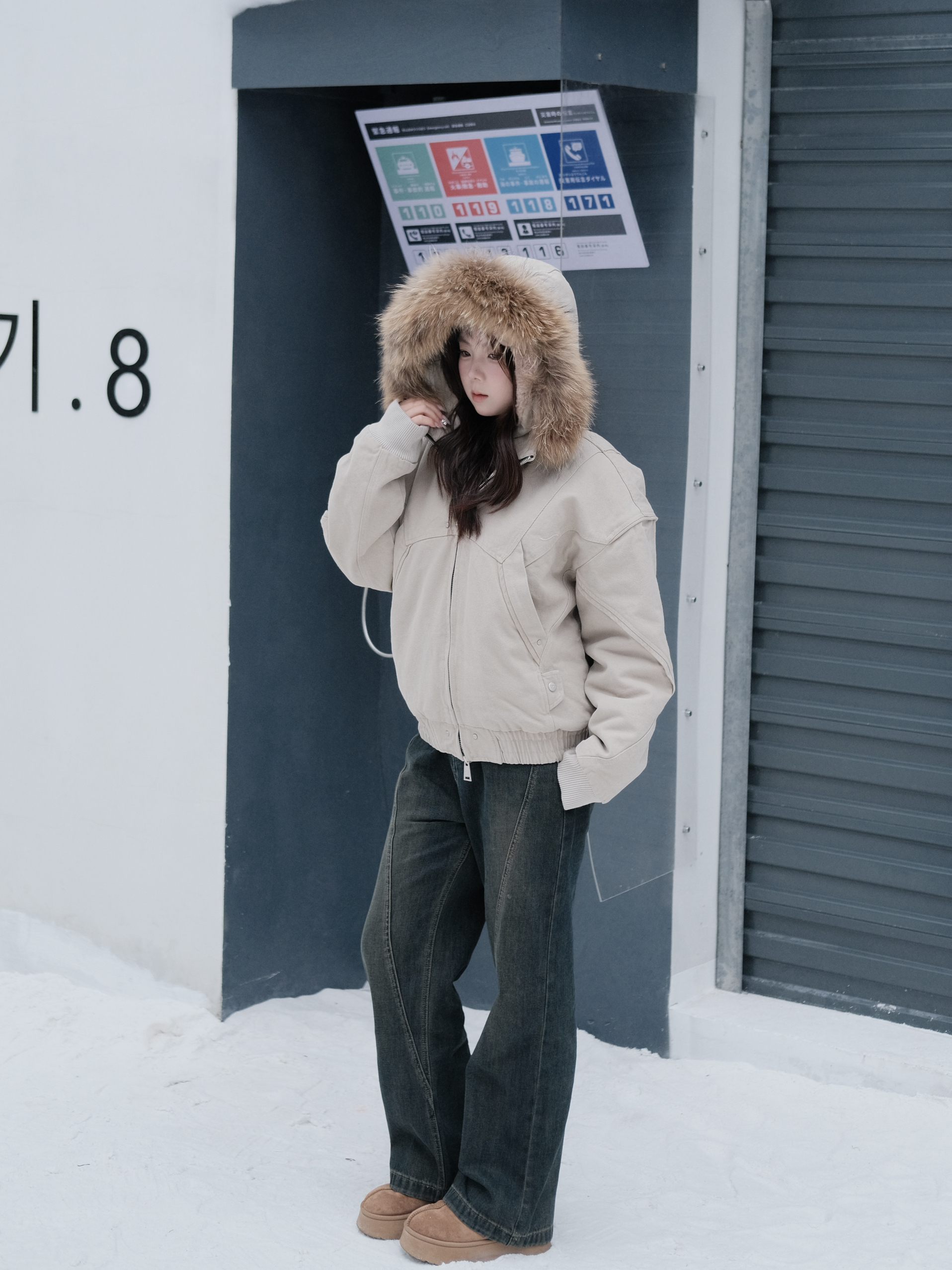 能顶得住冬天的一件座山雕 拿到手就感觉很重 里面是加绒加厚的 但穿上一点也不会臃肿 搭配大毛领氛围感一下上来了 162/110 穿的M码