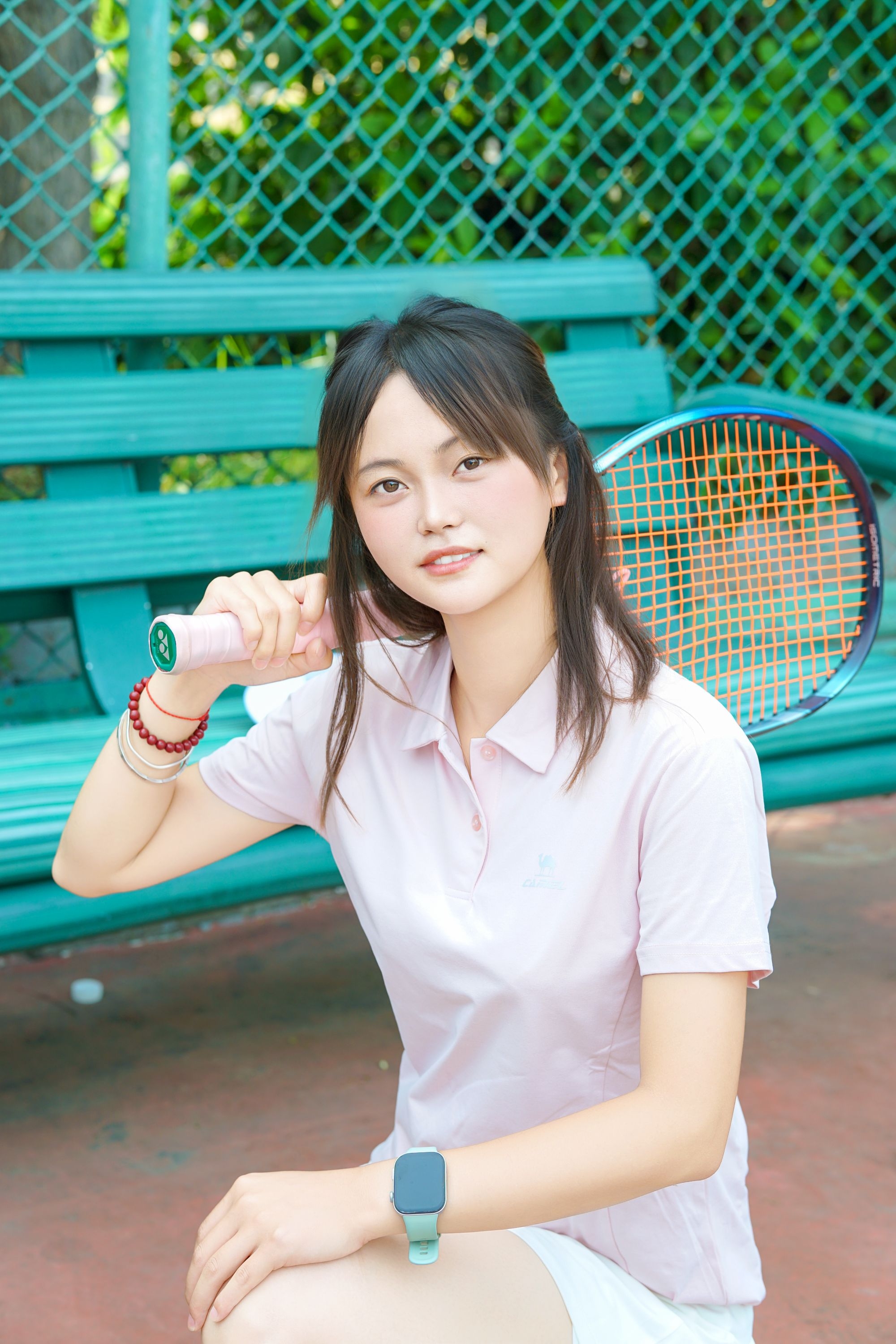 粉色超级好看,再配上一个网球裙,直接运动风拉满,在网球场随便凹几个造型就很出片。