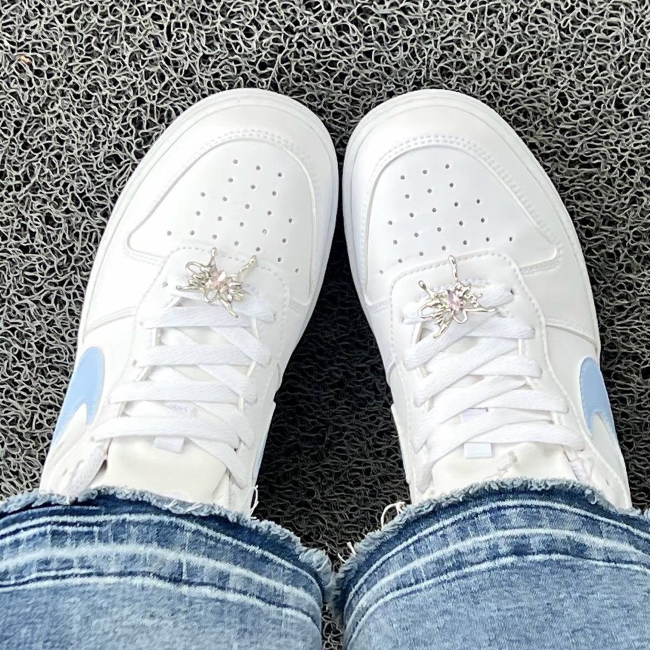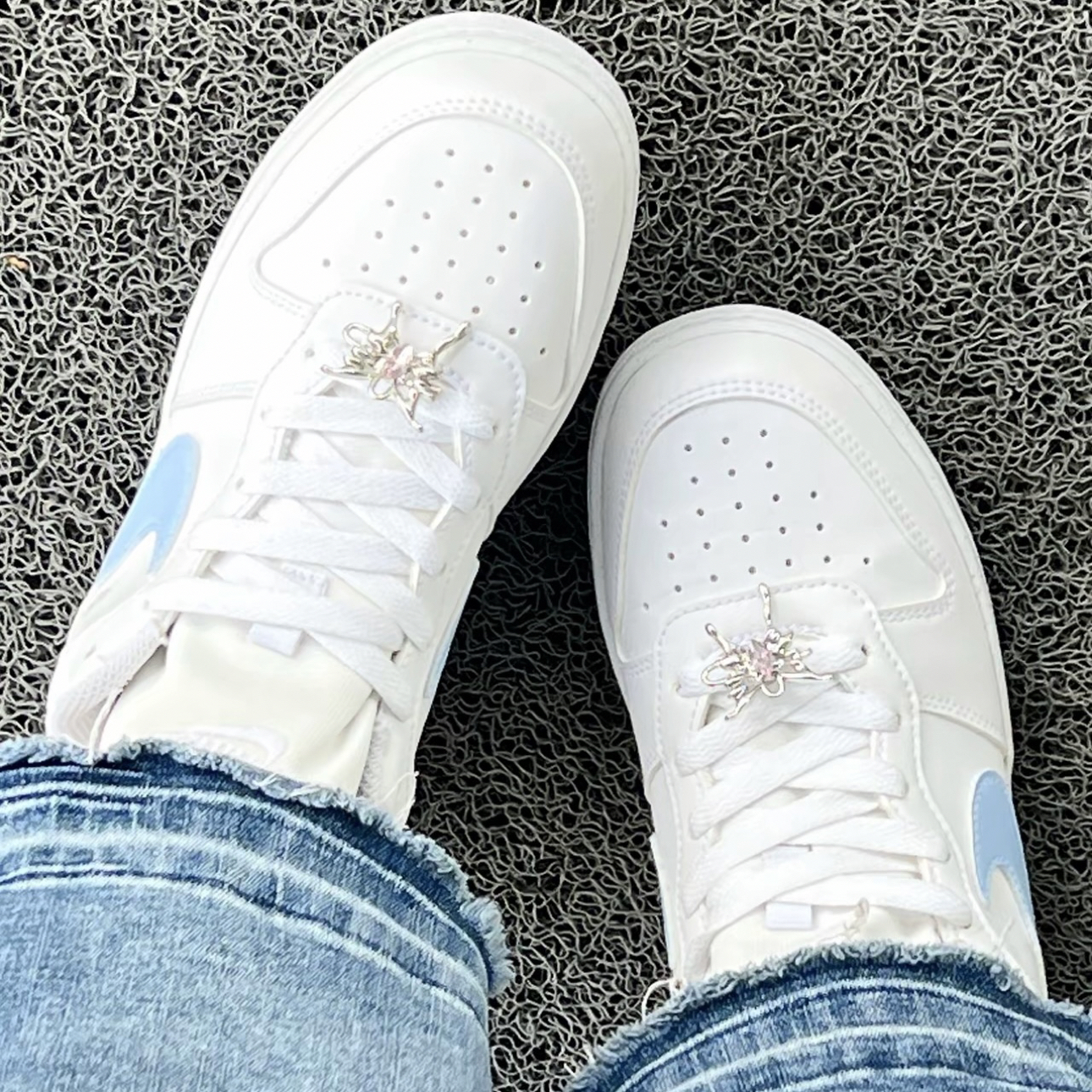 刷到双Nike定制板鞋直接心动!蓝银配色超显白,还有“残破蝴蝶”小设计,甜妹也能穿出酷感~低帮款搭裙子、牛仔裤都适配,液态金属细节超耐看!手工定制每双都独一无二,日常穿舒服又不撞款,夏天穿它出门回头率绝了!