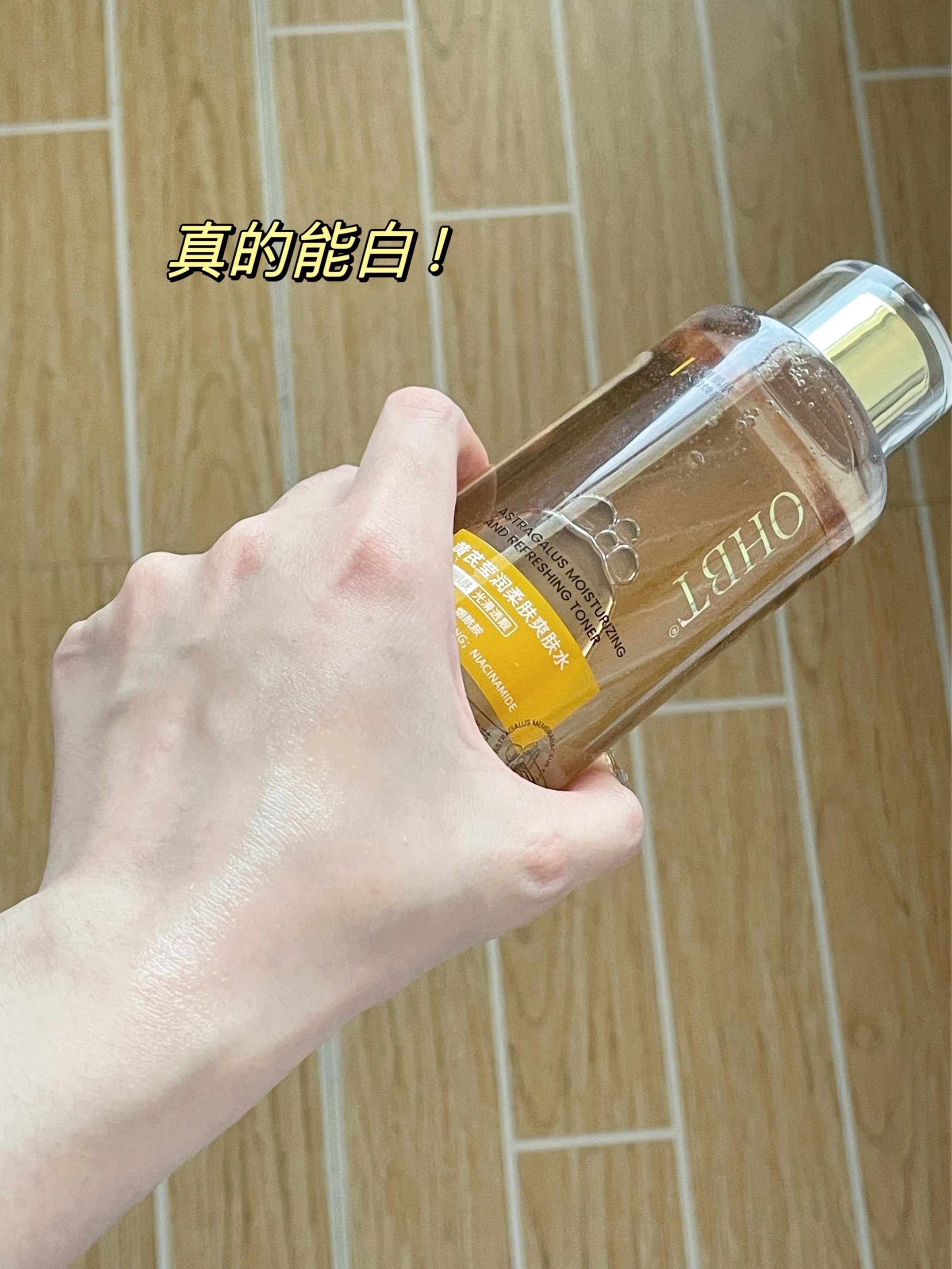 最近新宠 OHBT的这个黄芪爽肤水去黄提亮是有两把刷子的 早晚用 天天用 真的可以看见效果! 质地尊嘟很清爽 上脸完全没有负担 吸收的也超快! 平时护肤可以当作爽肤水用 晚上睡前可以用湿敷棉湿敷 敷完脸软软糯糯的 很亮很白净! 而且这么大一瓶足足300ml湿敷完全不心疼 我看谁还没有拥有它!