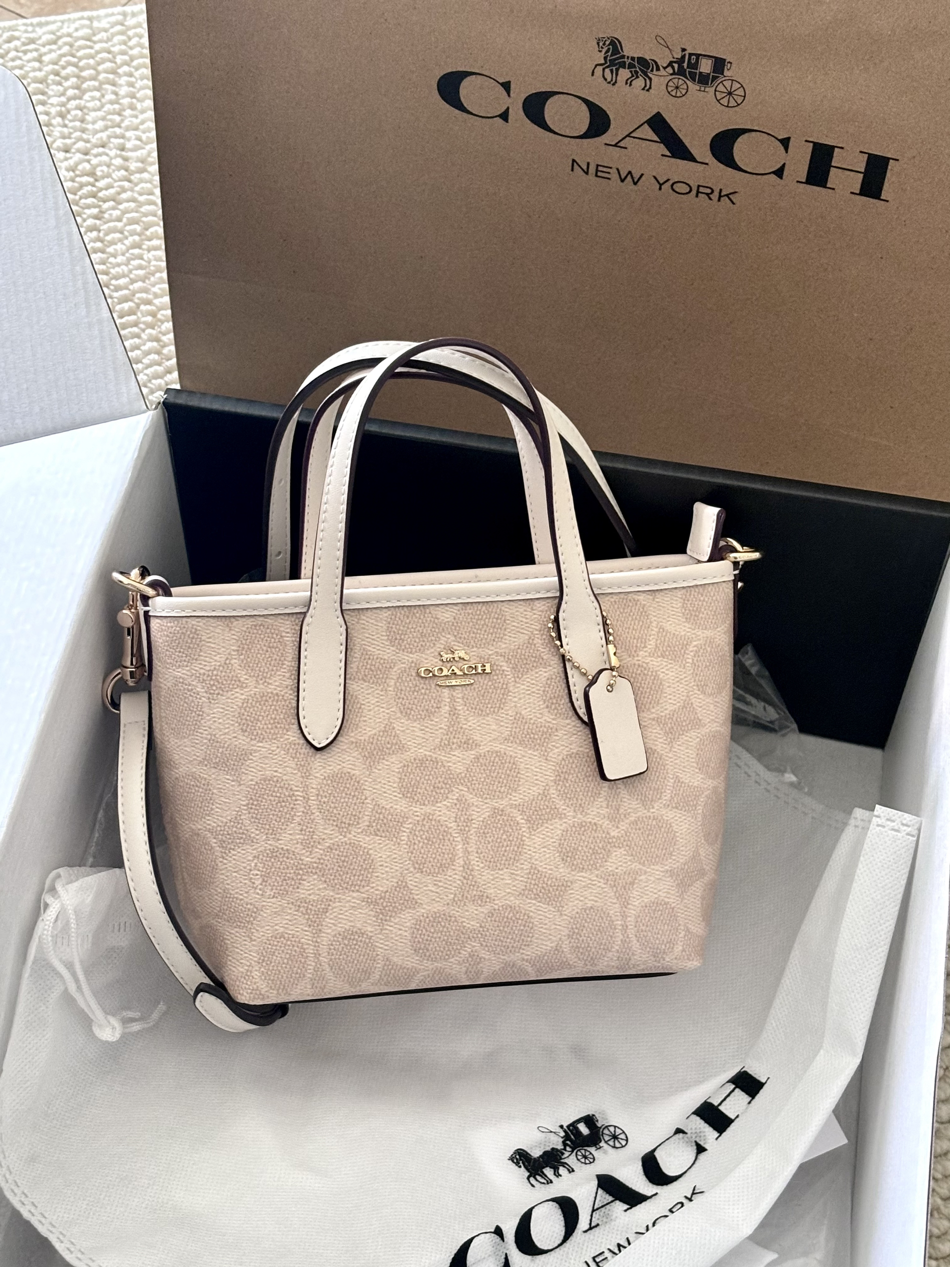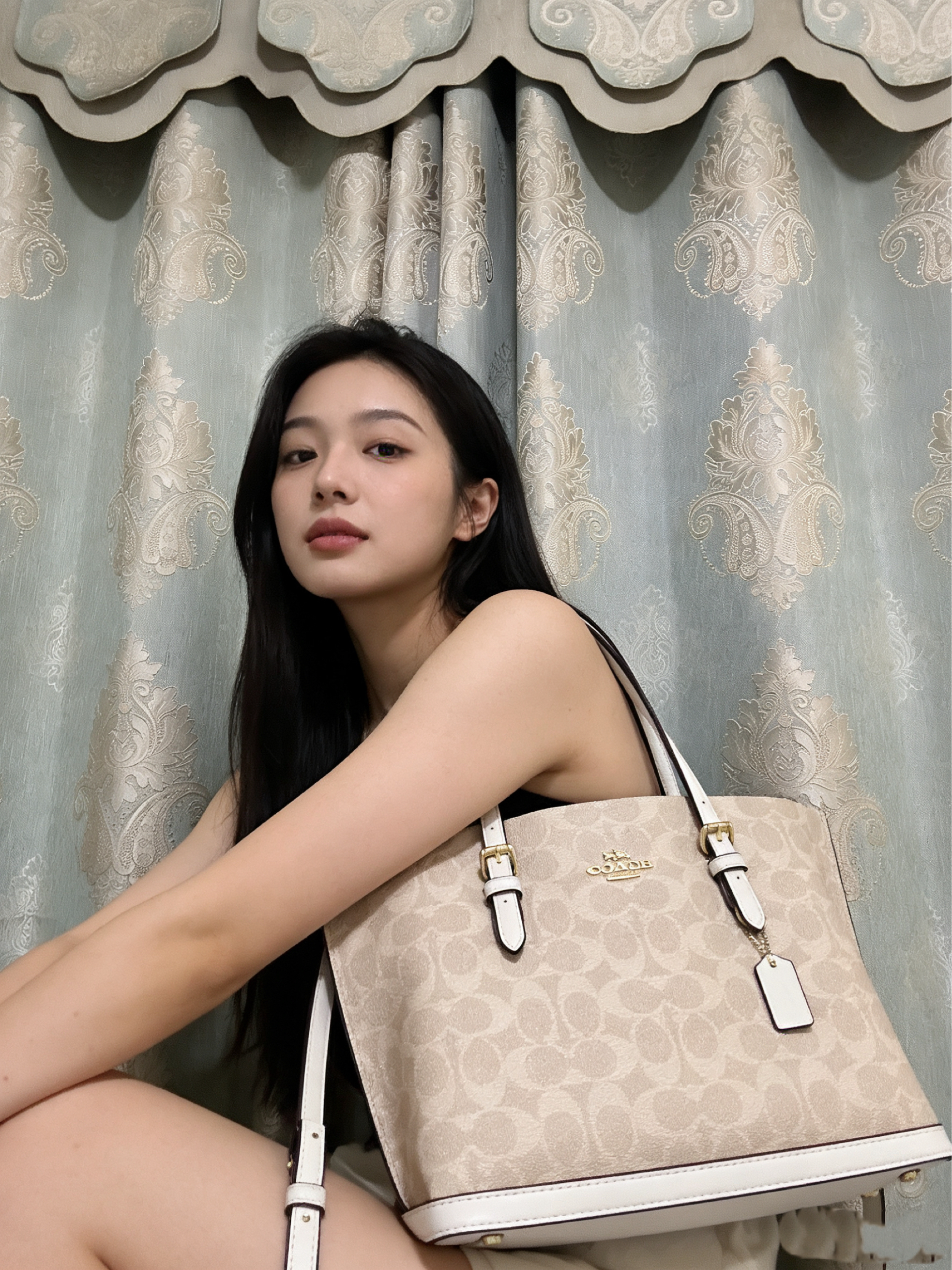 本篇笔记关联了Coach Fiona 24 中号 品牌印花金属Logo帆布拼皮革手提购物袋托特包单肩包 沙黄色拼粉笔白色等商品,为用户提供真实的使用体验和购买参考。