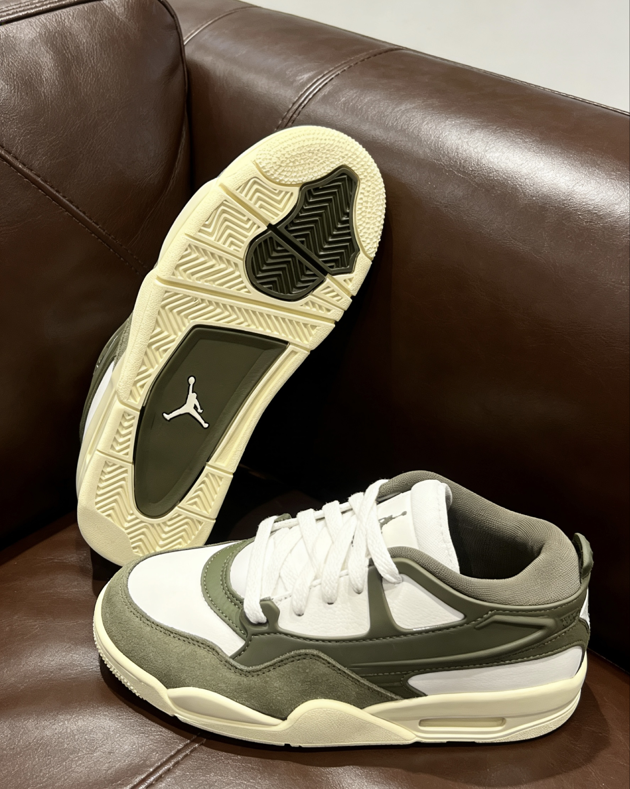 终于蹲到这双橄榄绿AJ 4RM了!实物的质感真的绝了,橄榄绿麂皮搭配米白皮质,做旧的中底瞬间拉满复古味儿,和秋冬的工装裤、牛仔衣适配度直接拉满💯 脚感方面也没让人失望,气垫的反馈很明显,日常走路逛街完全不累脚。鞋型是偏宽的设计,脚肥的兄弟也能轻松驾驭,包裹感和舒适度平衡得刚刚好。 绿标鞋盒也超有收藏感,摆着看都觉得养眼~这双真的是近期入手最满意的一双AJ,闭眼冲不亏! 📸搭配小tips: ▫...