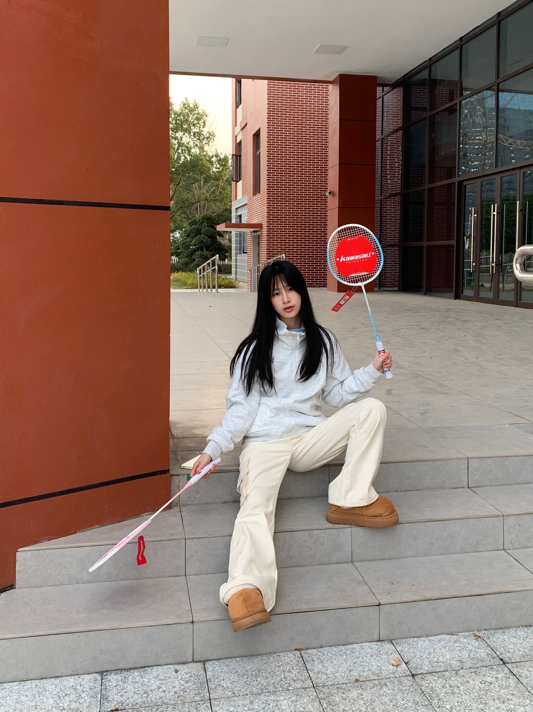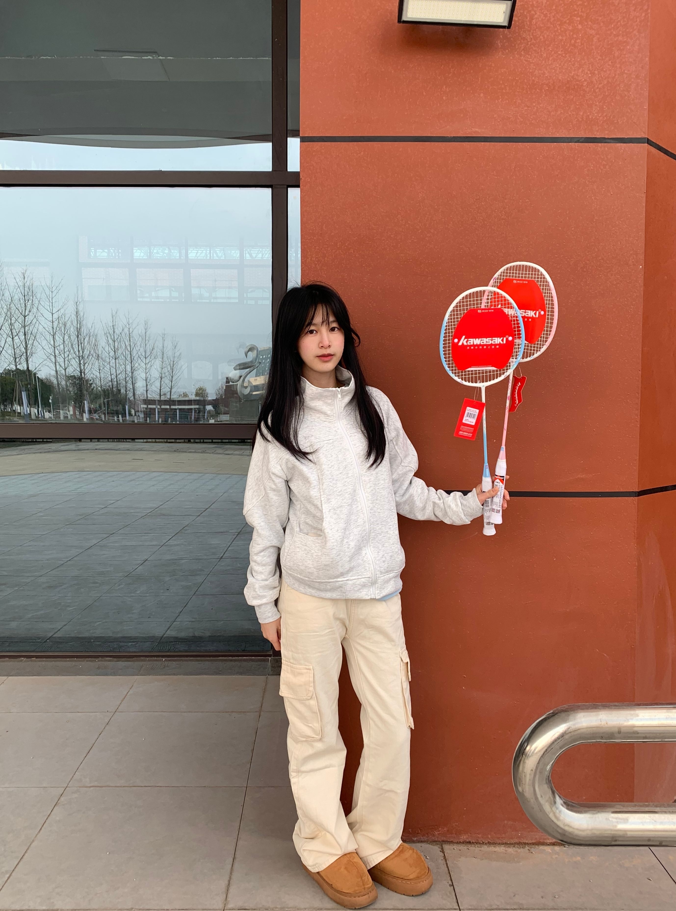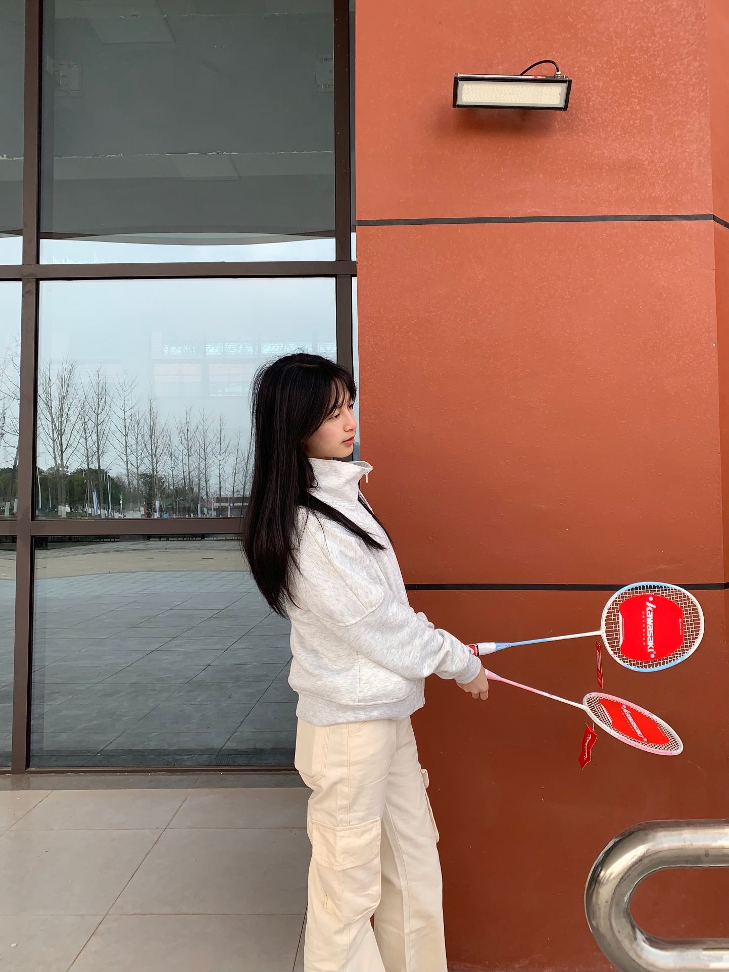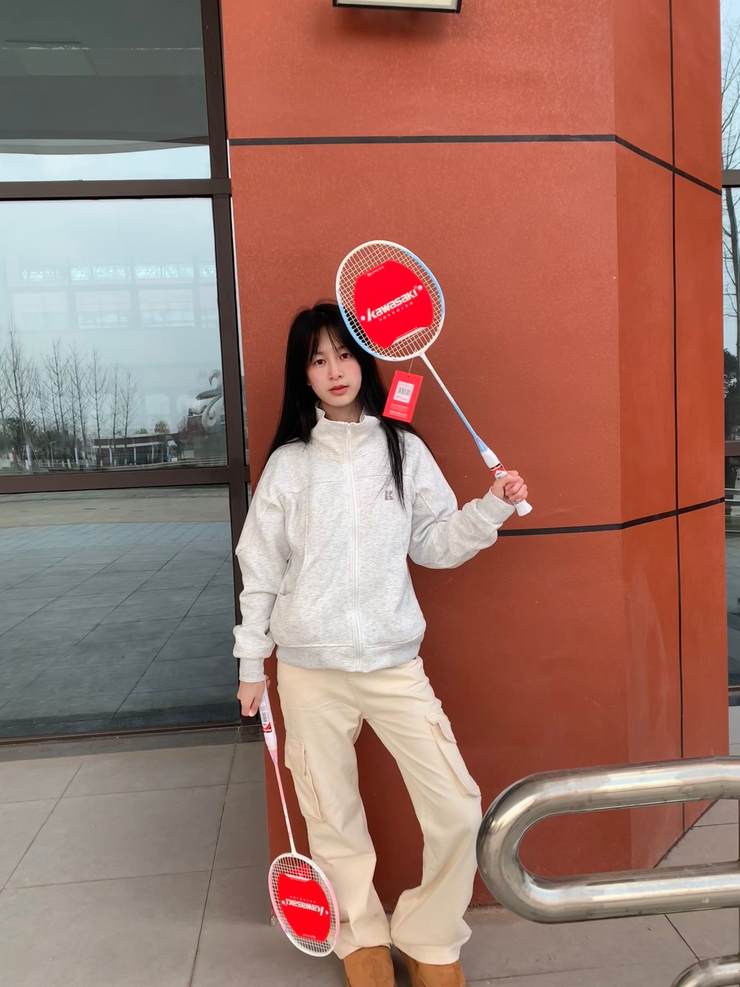 宝子们,今天来给大家分享一套超绝的穿搭!上身是一件浅灰色的连帽拉链外套,简约又不失设计感。立领的设计不仅保暖,还增添了几分利落感。衣服的材质柔软舒适,贴身穿也完全没问题。 下装搭配的是米白色工装裤,裤型超赞,对各种腿型都很友好。多个口袋的设计不仅实用,还充满了潮流感。整体色调柔和,浅灰与米白的组合既干净又清爽。 手里拿着两支羽毛球拍,瞬间让整套穿搭多了一份运动的活力。无论是在运动场上挥洒汗水,还是...