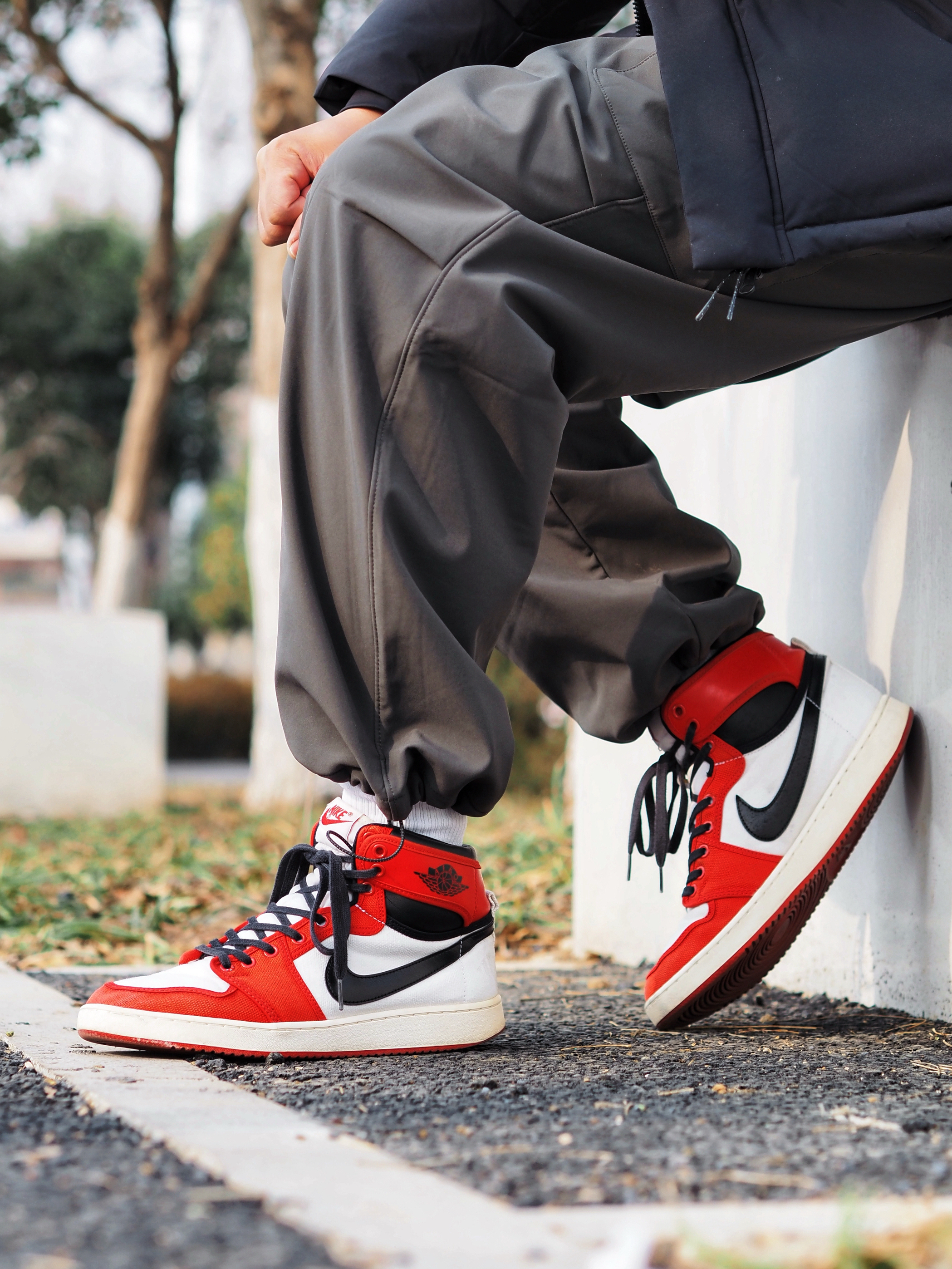 每年冬季都喜欢穿高帮的Aj1, 这双 Jordan Aj1 Ko芝加哥白红配色, 帆布的鞋身比皮质的鞋面是要难打理一些, 但是透气性以及舒适度要好一些, 平时可以用软毛刷清理! 对于冬季清单多海风的选择, 高帮的版型搭配束脚裤还是比较干练的, 同时选择搭配 乔丹 山系休闲款羽绒服, 防风保暖而且颜色氛围也比较亮眼, 也是时髦又有安全感,如果感觉脚感偏硬, 更换一双鞋垫即可解决~