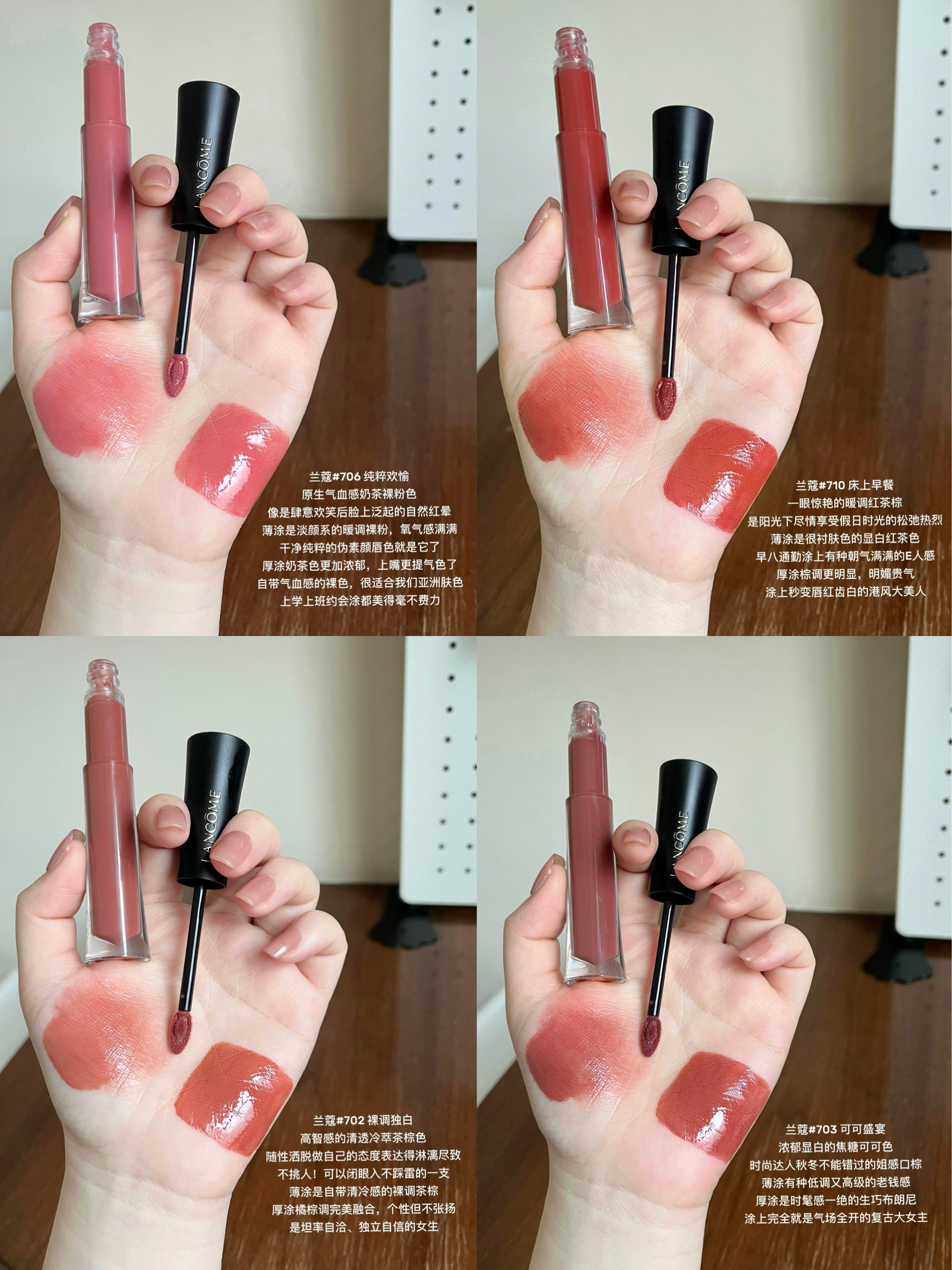 上嘴是水水的质地,推开很顺滑,成膜后是清透的番茄红,显得气色很好。质地不粘腻,日常薄涂很提气。染唇有一点,但用眼唇卸能卸干净,不算麻烦。黄皮涂也比较显白。