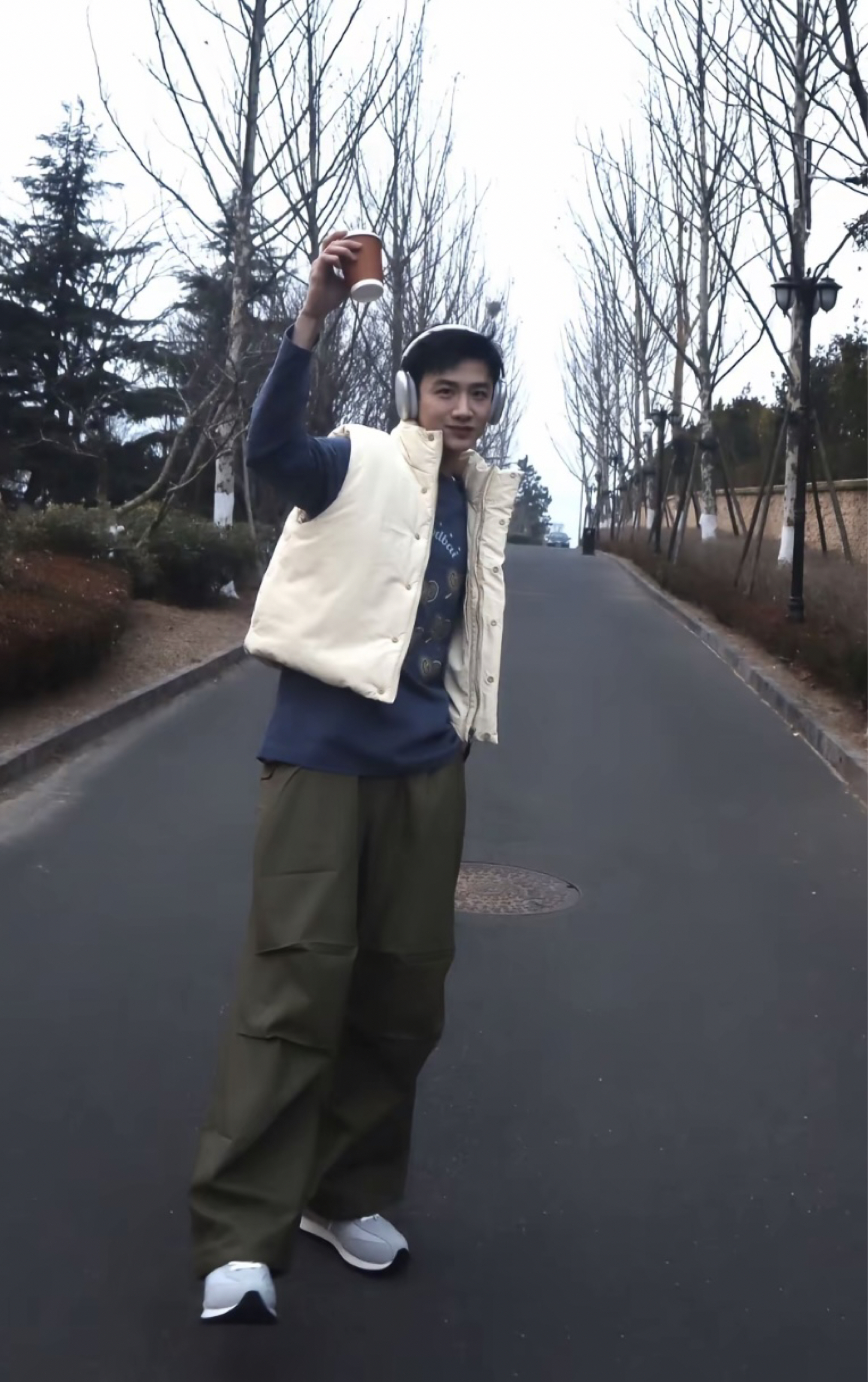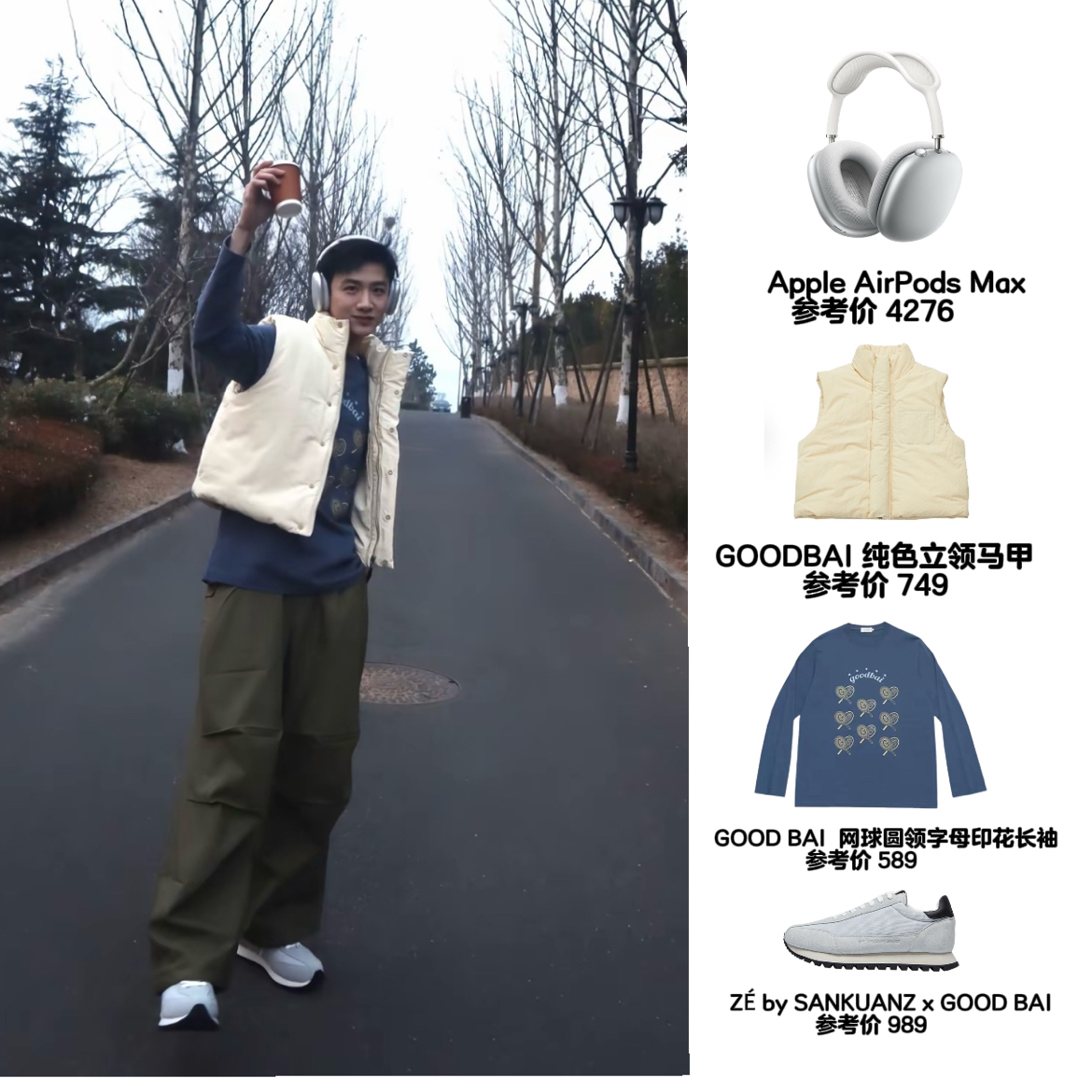 白敬亭这套冬日街头穿搭真的把休闲与时尚平衡得恰到好处!米白色GOODBAI立领羽绒马甲叠穿藏青色印花长袖,软糯的羽绒质感中和了长袖的简约,暖调配色在冬日里既温柔又有层次感🌰。下装搭配军绿色阔腿裤,宽松版型自带随性慵懒的氛围,再踩上ZÉ by SANKUANZ x GOODBAI联名鞋款,细节处尽显潮酷品味。头戴AirPods Max耳机作为配饰,不仅是穿搭亮点,还让整体造型的街头感和科技感拉满🎧。...