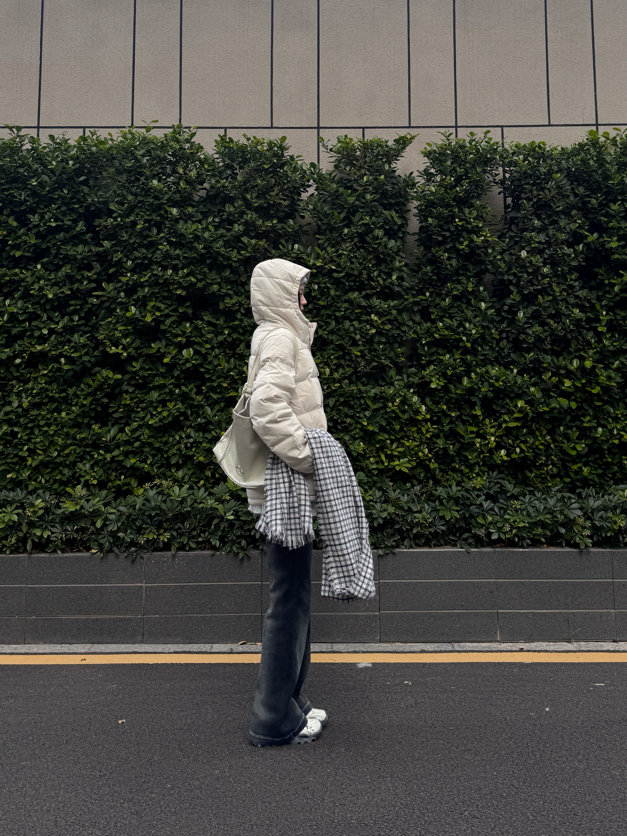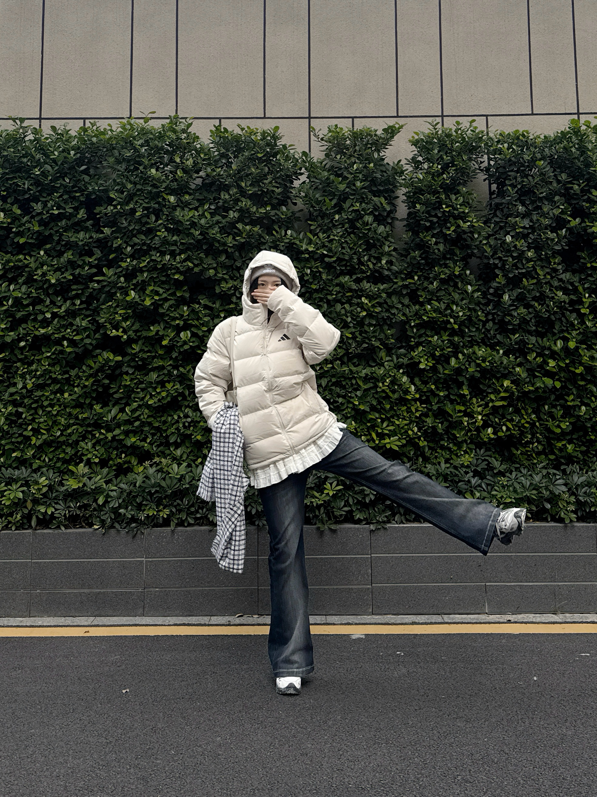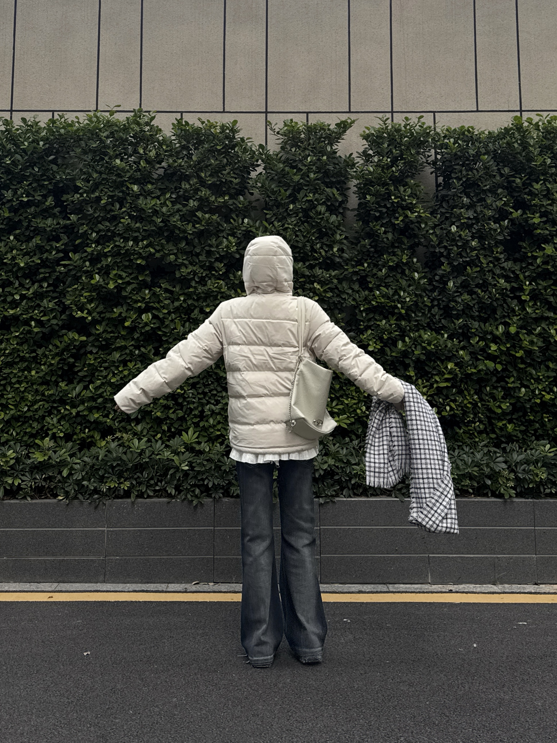 入冬一定要拥有的白色连帽羽绒服呀 充绒量很足 上身一下子就暖和啦 南方可以直接一件过冬✌️ 搭配牛仔裤nike鞋一套松弛又帅气😎