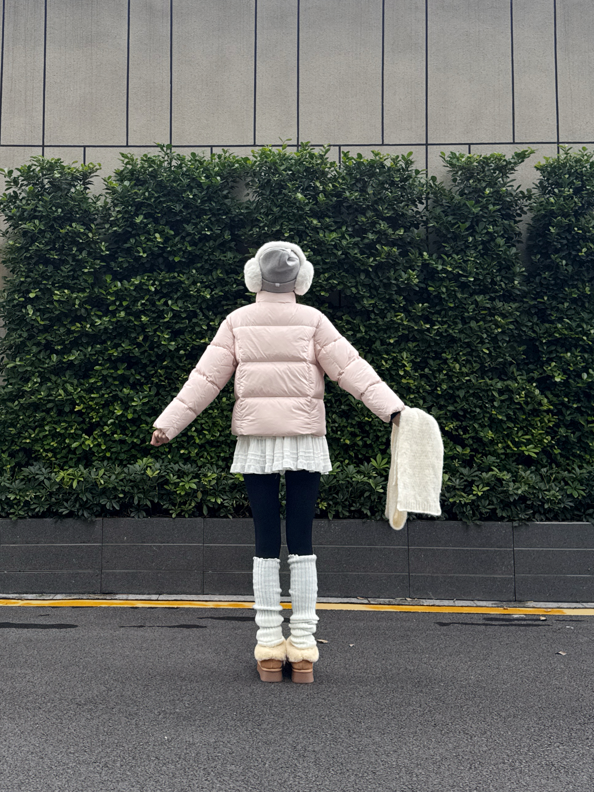 答应我!这个冬天一定要试试粉色羽绒服 上身真的好显白好韩好少女!! 这件鸭绒充绒量好足 上身好暖和 北方也可以过冬❄️ 搭配打底裤雪地靴一套韩系少女感十足☺️