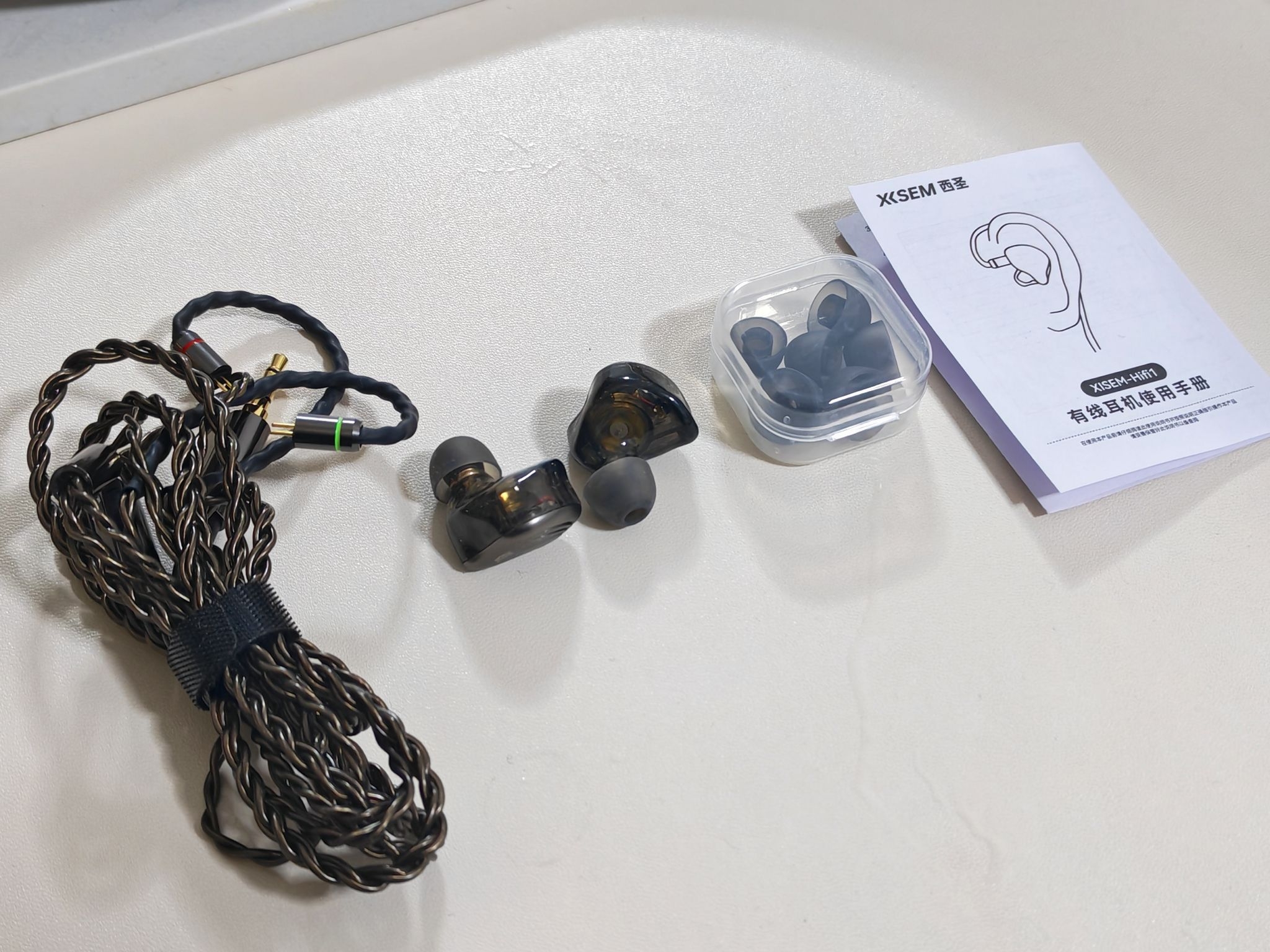 西圣HIFI有线耳机的包装简约而不失质感,没有过多花里胡哨的设计,打开包装盒,耳机主体与配件摆放规整,给人一种高品质的感觉。它附赠了三对不同尺寸的抗菌亲肤耳帽,无论是耳道较浅还是较深的人,都能找到最适合自己的尺寸,完美贴合耳道,杜绝漏音和异物感。