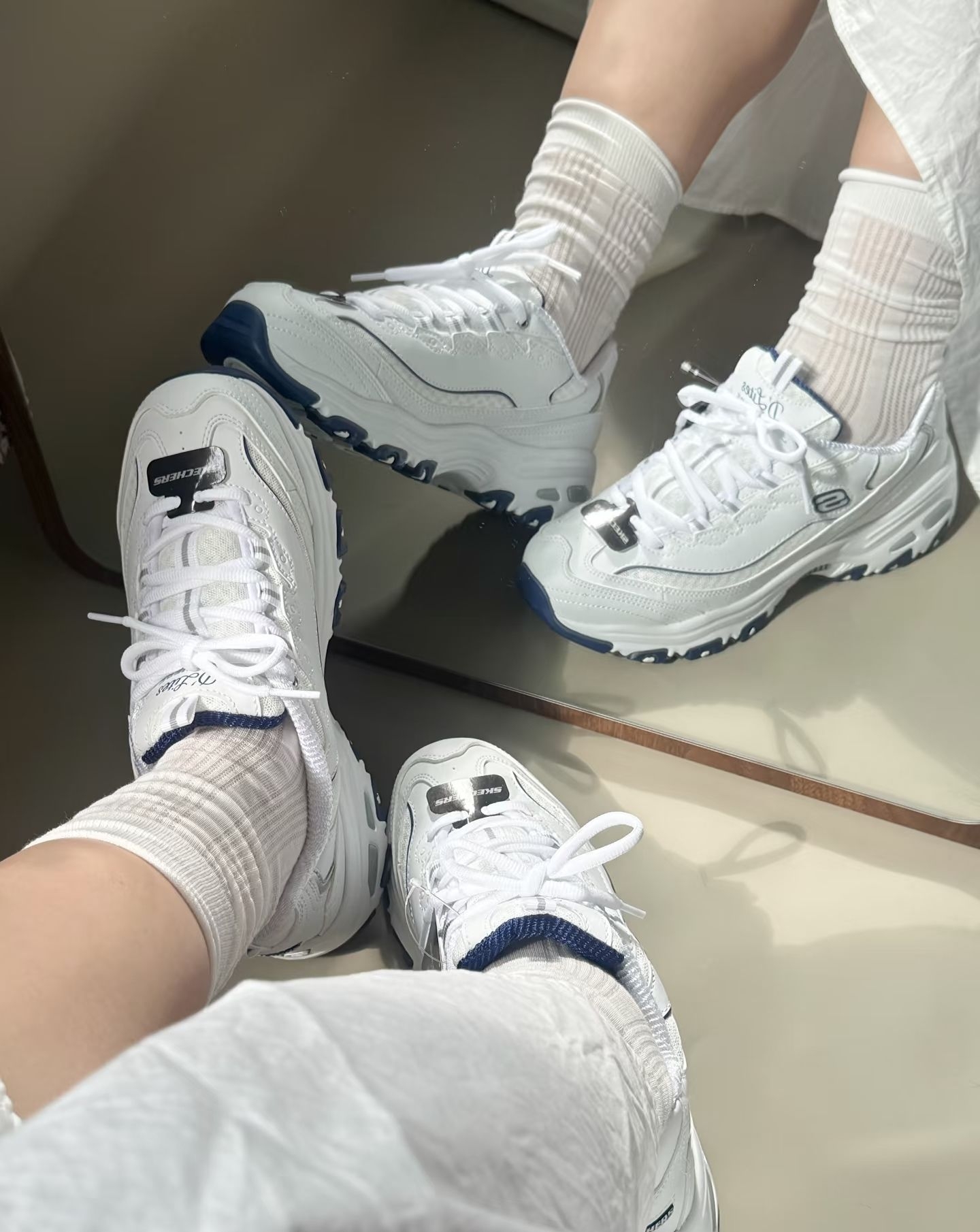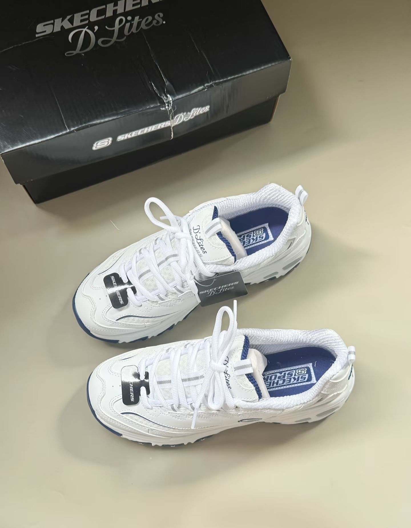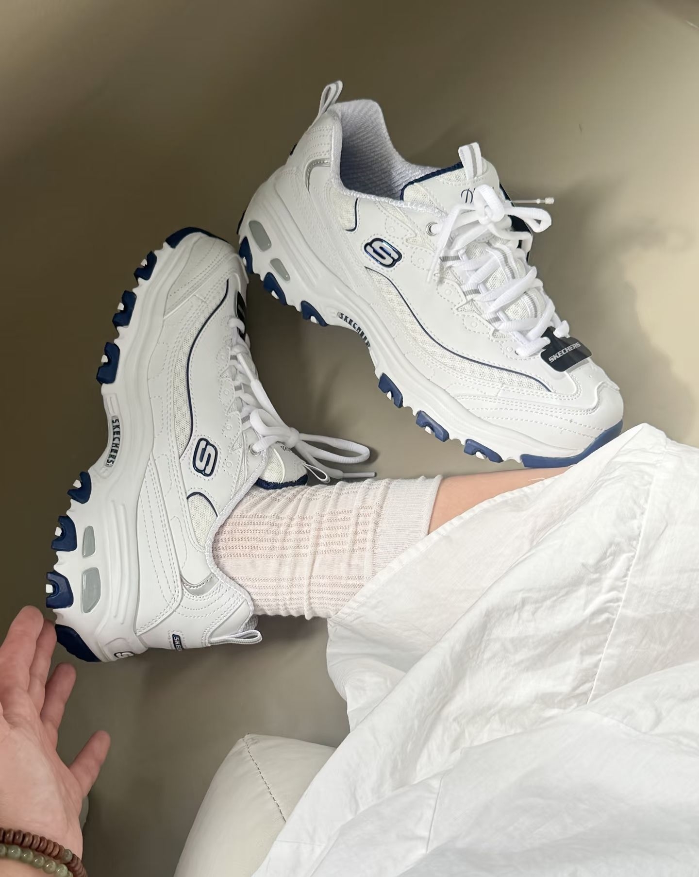 本篇笔记关联了Skechers/斯凯奇 D'Lites 1.0 奶茶熊 熊猫鞋 老爹鞋 闪穿鞋 厚底增高复古缓震百搭 低帮/女款/白色/海军蓝等商品,为用户提供真实的使用体验和购买参考。