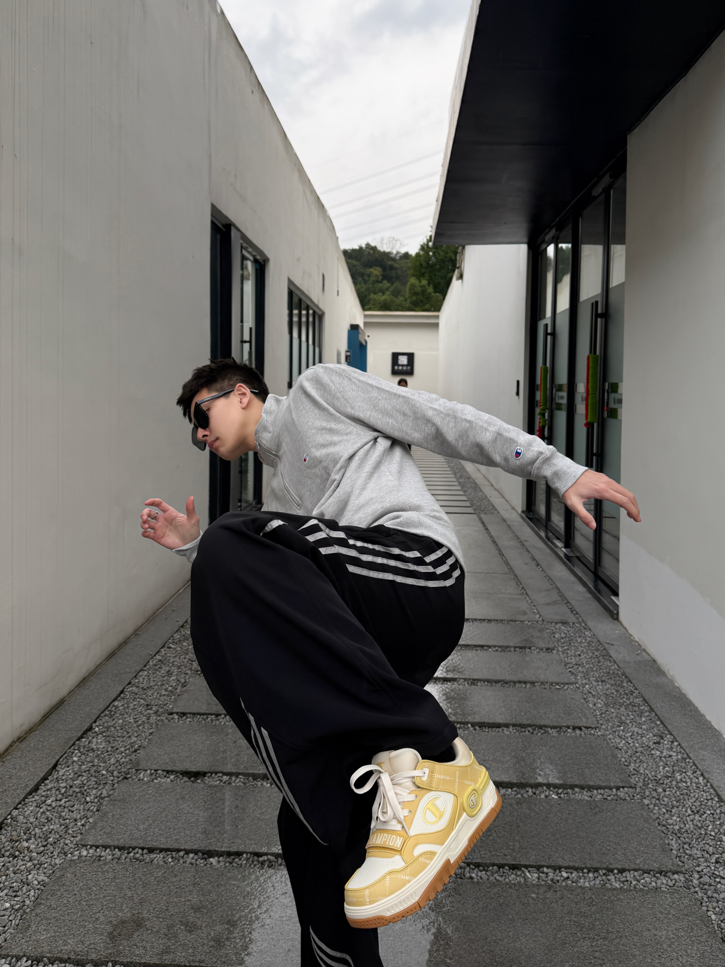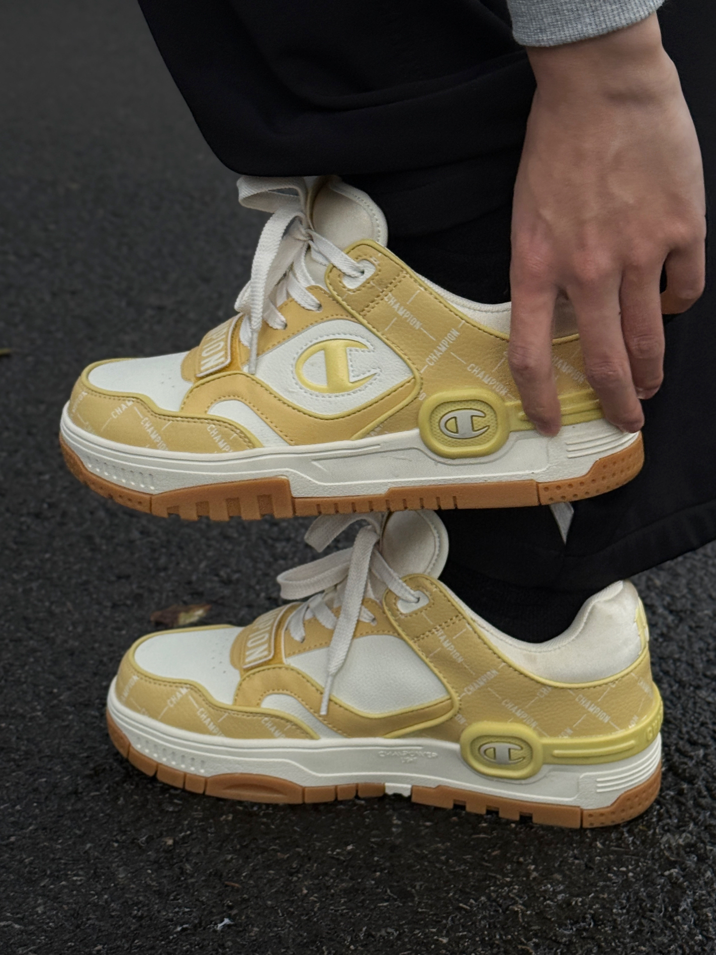 Champion黄白板鞋:给灰黑休闲风撒了把焦糖碎 Champion FW24灰色加绒卫衣是美式休闲的基础牌,小C-logo藏着低调的品牌辨识度,半高领的设计又添了冬日的慵懒感;搭同品牌黄白板鞋时,树脂黄的鞋身像撒了块焦糖,和素净的灰黑调撞出暖调的甜,拼接的鞋面包裹着复古潮味,不用花哨搭配,一双鞋就让日常穿搭多了份美式街头的随性。 基础款的美式休闲,靠一双焦糖色板鞋就能跳出平淡的套路。 #Ch...