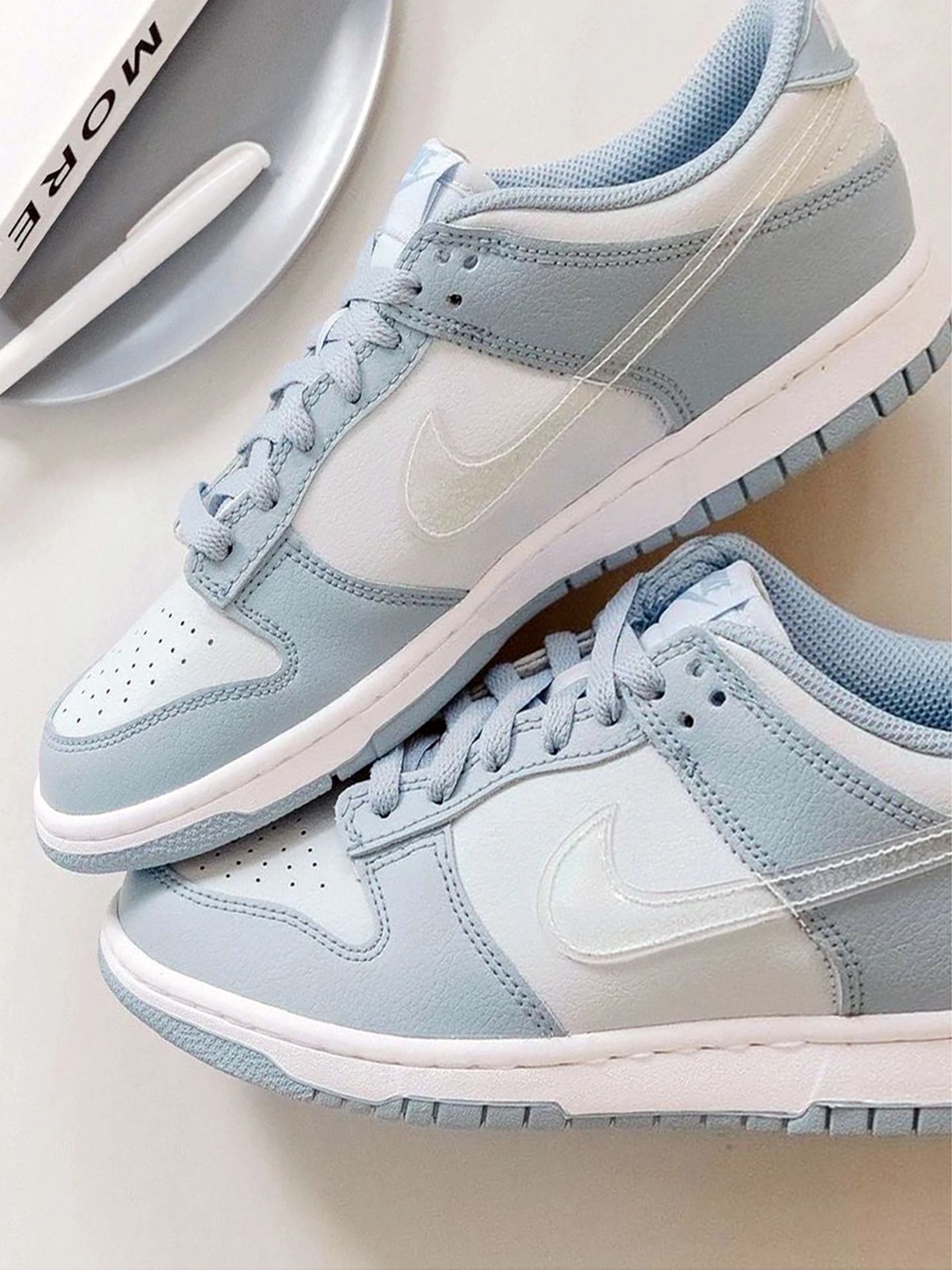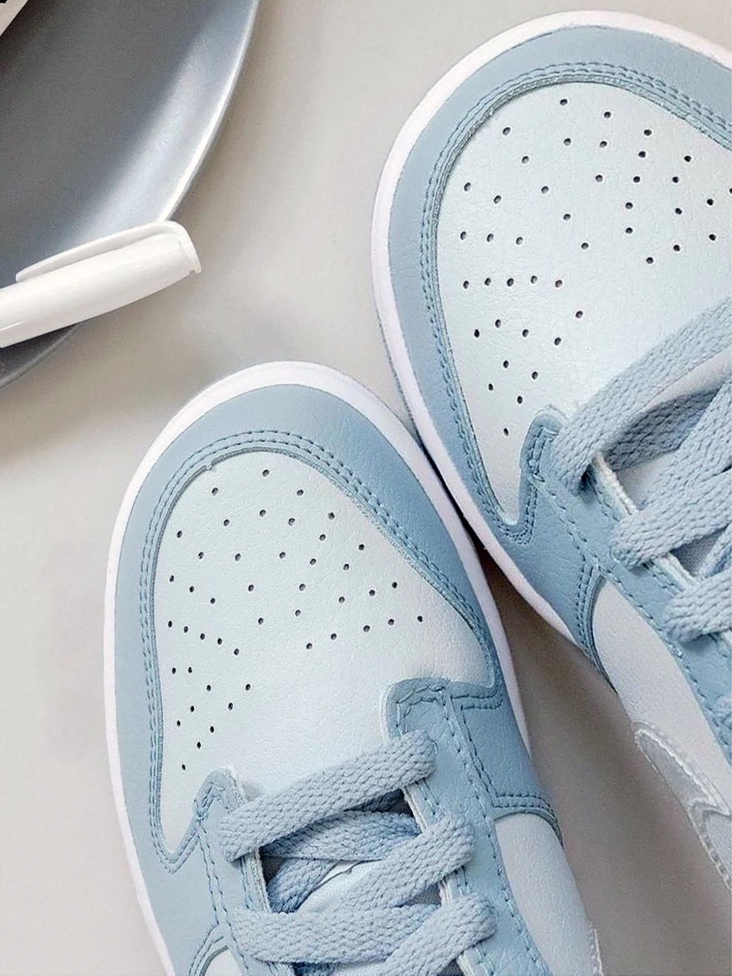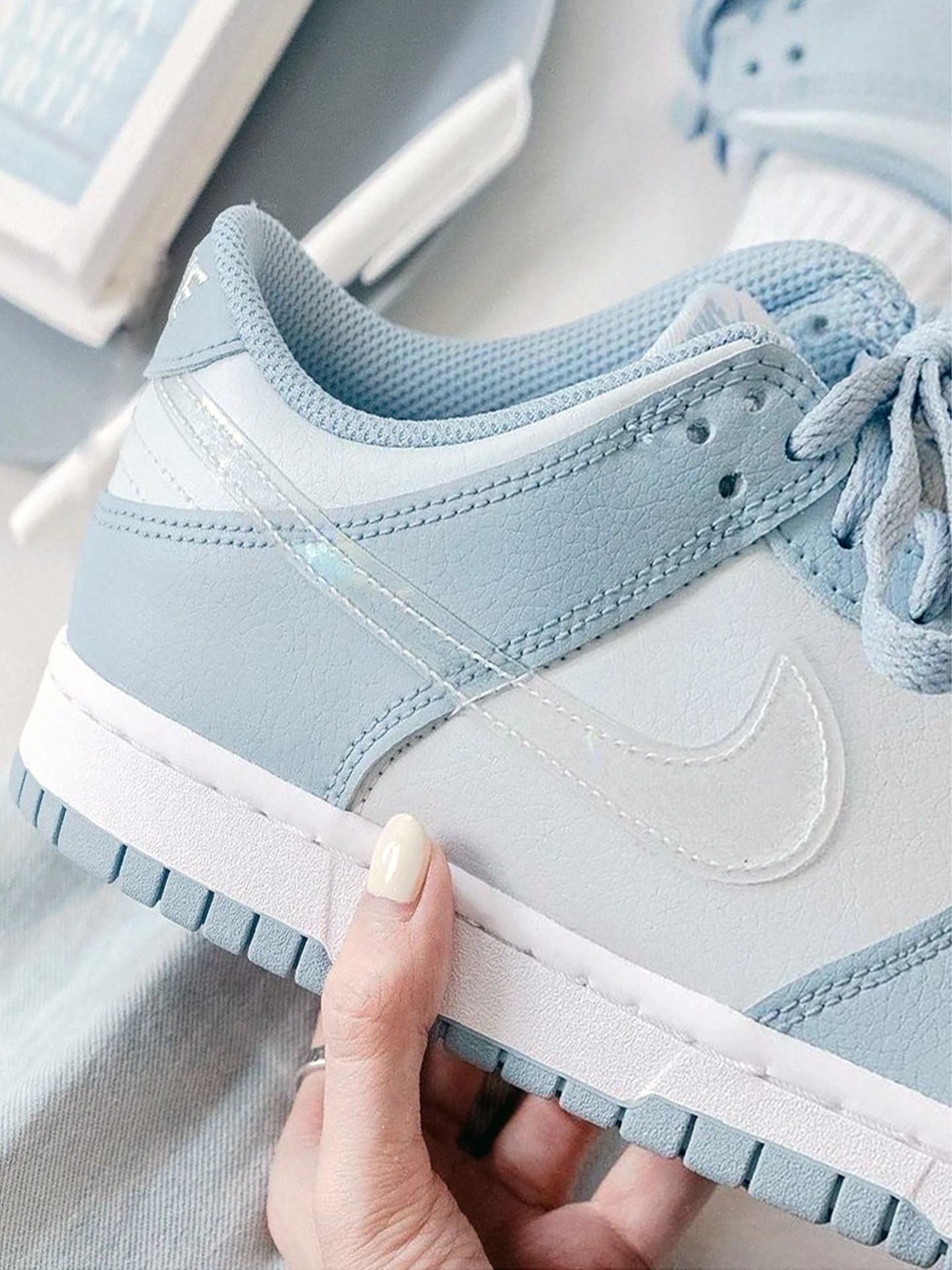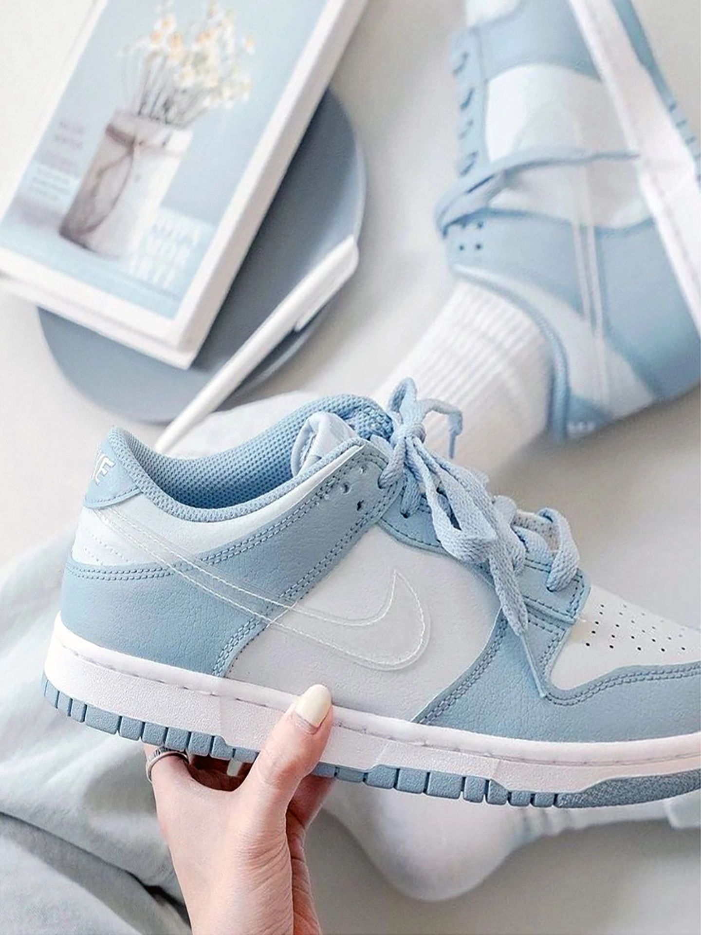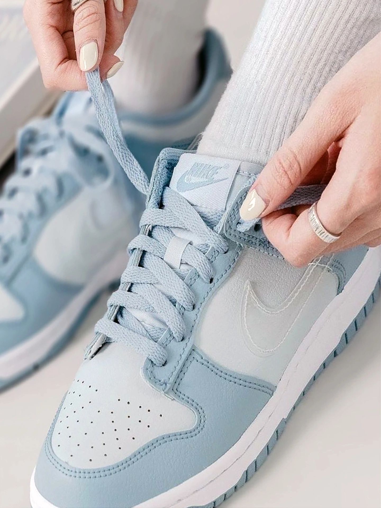 谁懂啊!Nike Dunk Low GS浅蓝灰好清新☀️|||救命‼️上周刚入的Nike Dunk Low GS浅蓝灰款,今天穿出门被问爆链接了🤩! 这鞋是皮革材质,浅灰色鞋身点缀浅蓝色小细节(鞋带、鞋舌标、鞋跟和中底都是蓝色),外底也是蓝色橡胶,像蓝天白云一样舒服🧼~ 今天穿它去公园散步晒太阳☀️,配白色短T+浅蓝牛仔裤,闺蜜说“你这鞋和今天天气绝配!整个人清爽又好看😎” 走一下午脚都不酸,...