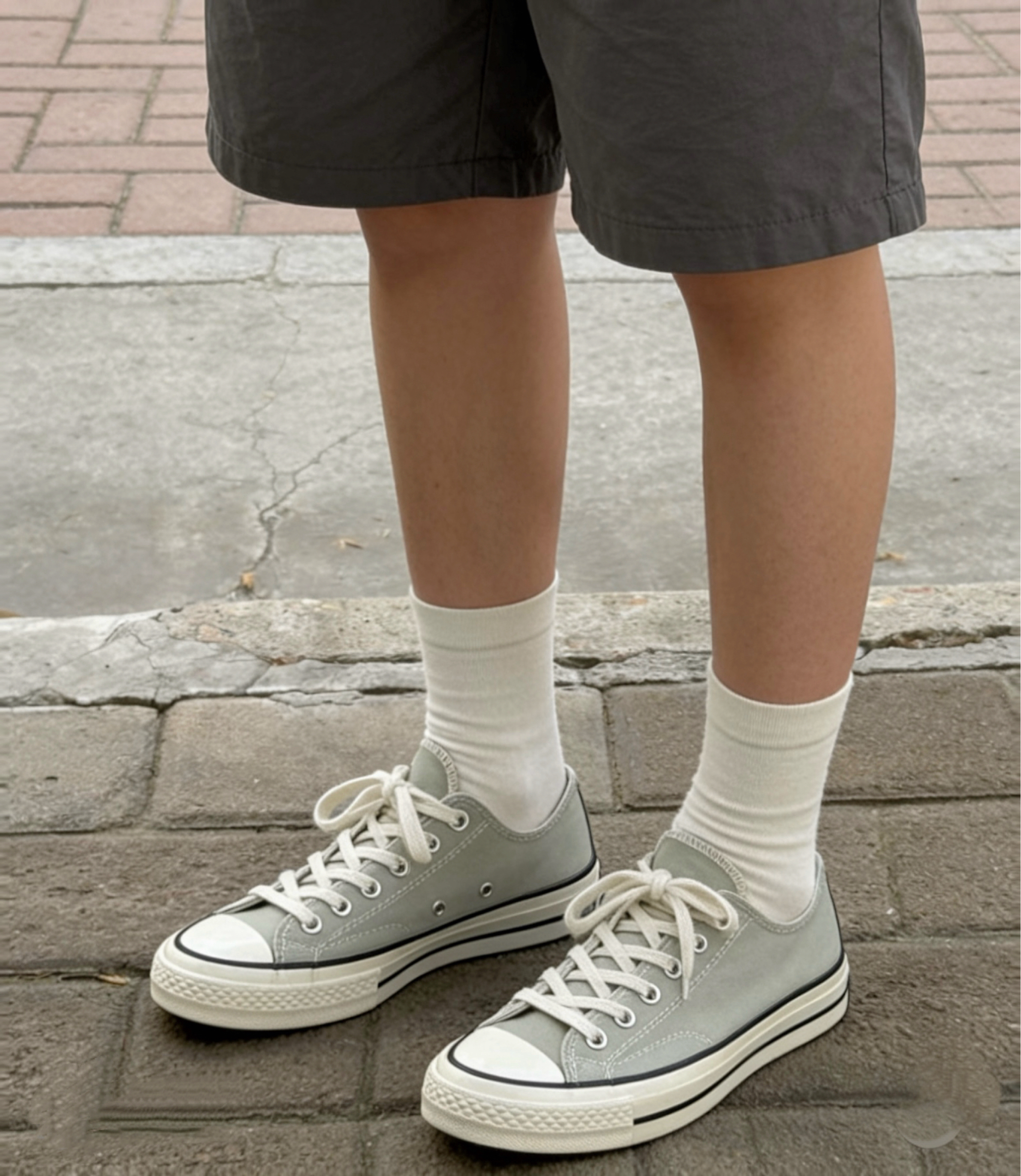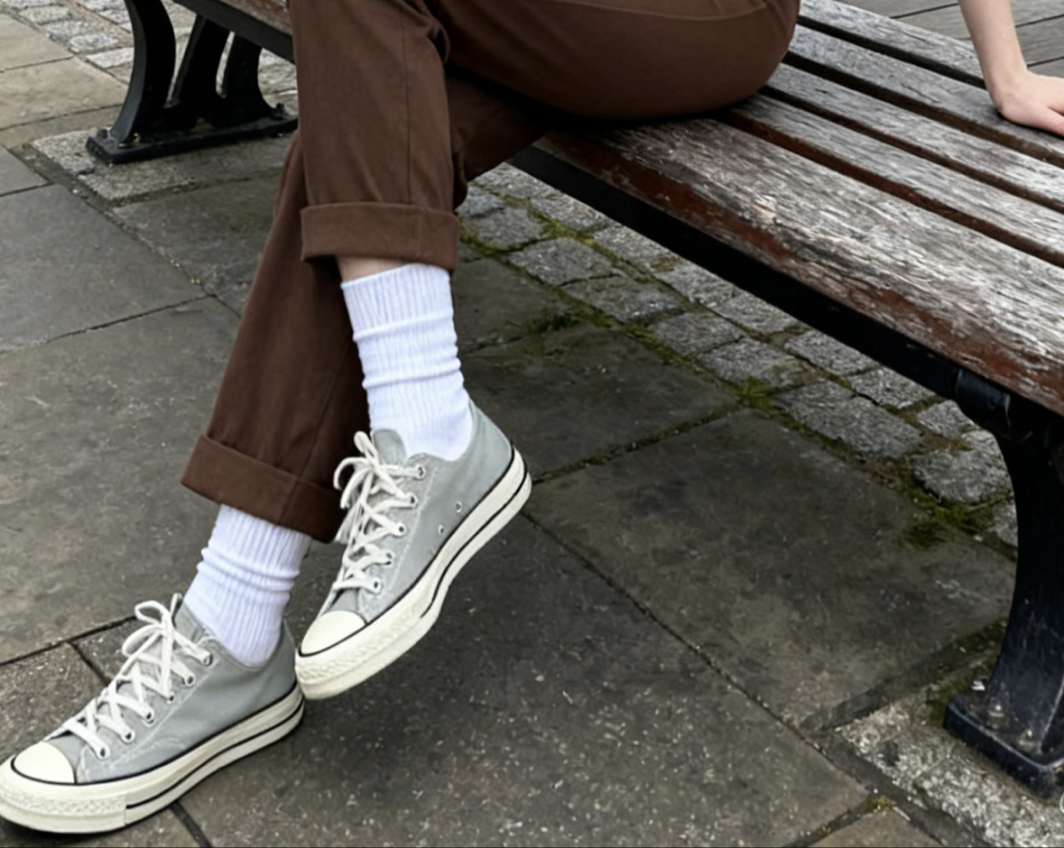 我认为这个柔雾绿的颜色跟夏天其实更搭配,冬天穿的衣服比较沉闷也可以搭配这个更显清新 不太挑裤子,我感觉还挺白搭 需要拍小一码或者0.5码更合适#晒晒我的匡威1970s 走路🚶♀️➡️时间久了会有点挤脚,不过平时逛街通勤还是没问题的🆗