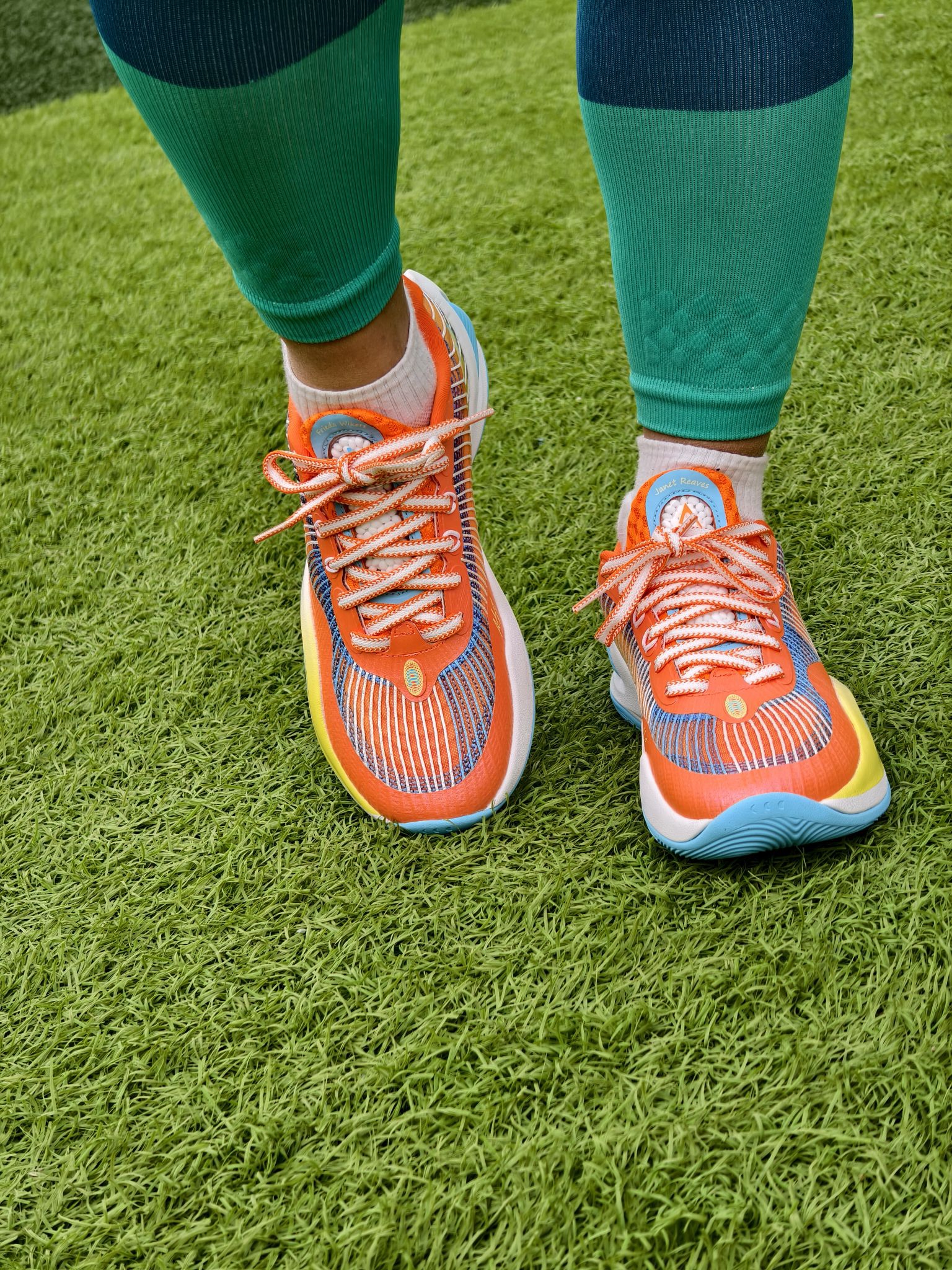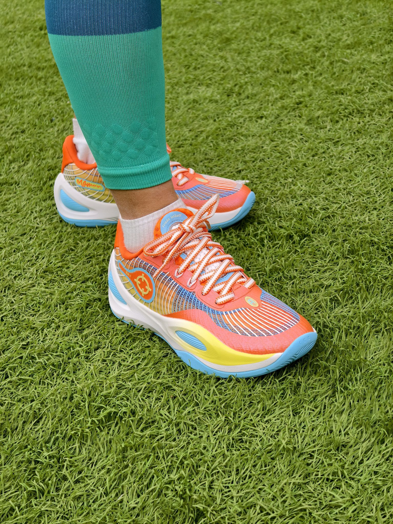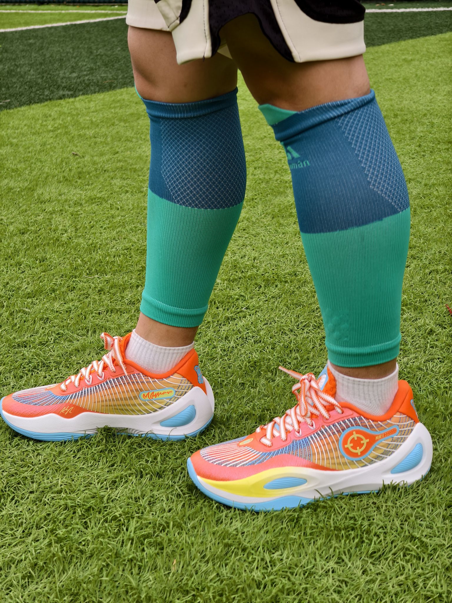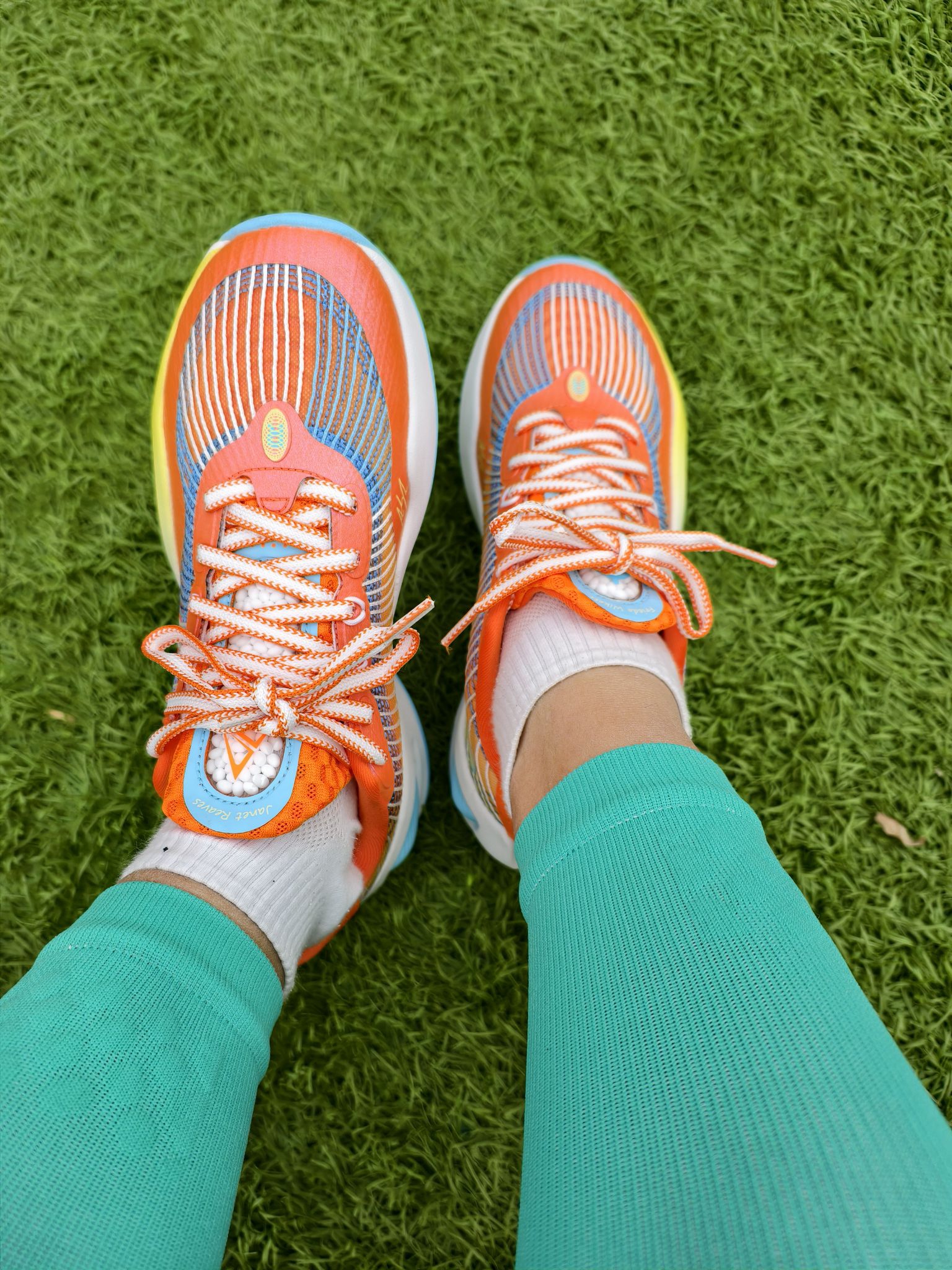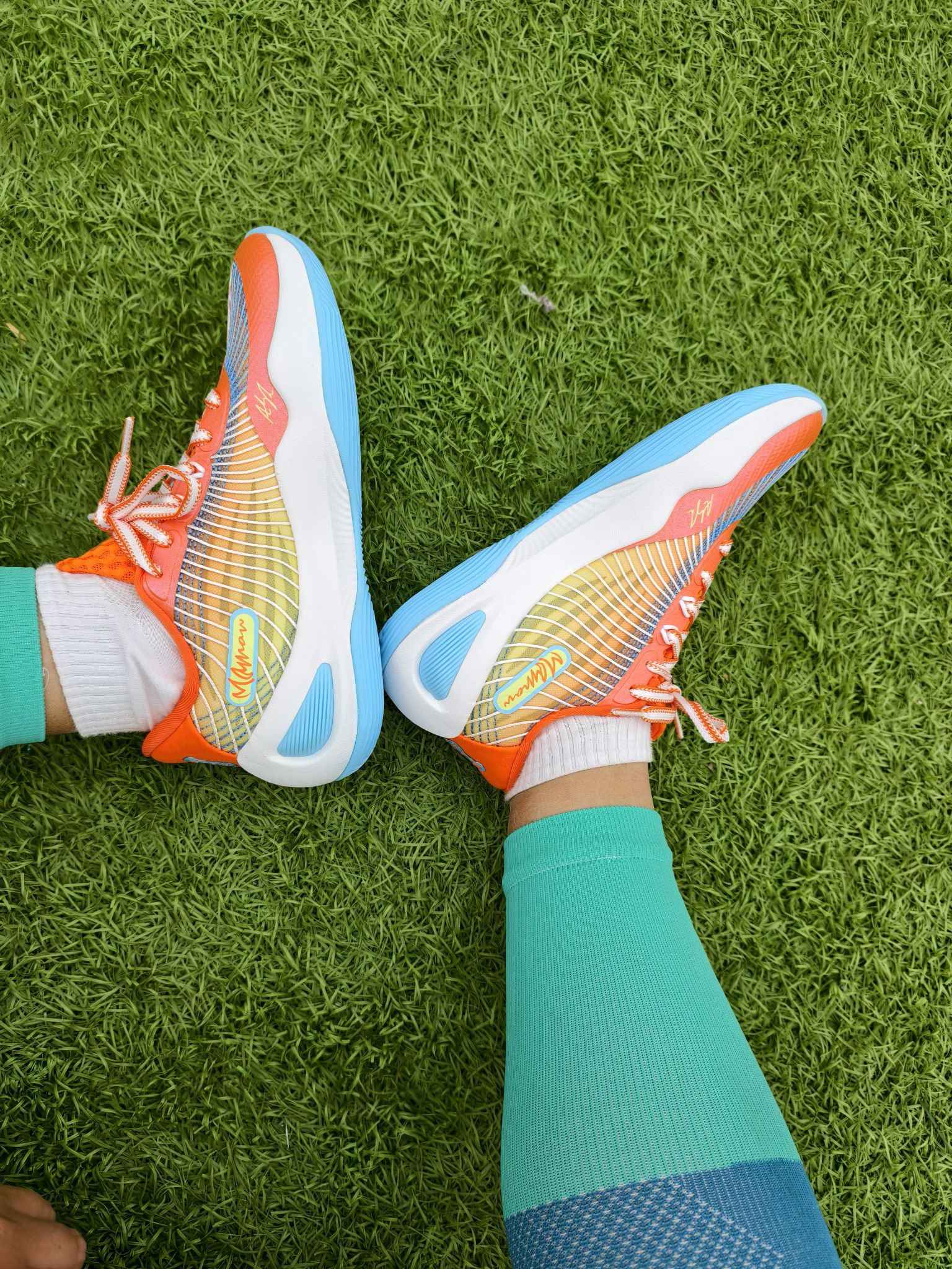 💰这双里弗斯1代的橙子汽水配色🥂是我元旦时候花不到100块购入的,我真要夸爆! 🍊橙蓝黄的渐变就像把夏日活力踩在脚下,网状鞋面在阳光下透着股清爽劲儿,搭配蓝绿拼色的压缩腿套,站在球场上感觉自己就是最靓的“运动仔”~冬天穿也活力满满! ⛹️♂️鞋面强度高,侧向TPU带来超强支撑,横移稳、防侧翻稳;但初期掉跟明显,后跟填充略薄,建议反穿鞋带+厚袜,磨合后有改善 。 🏀前掌“咻弹”超临界发泡,蹬...