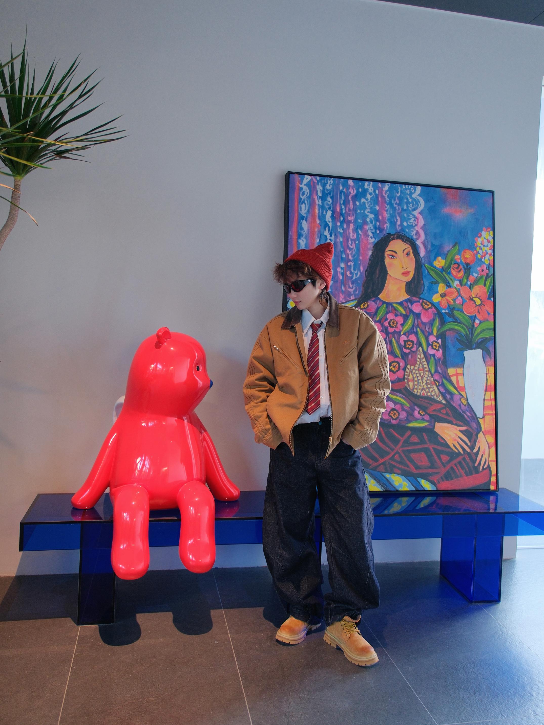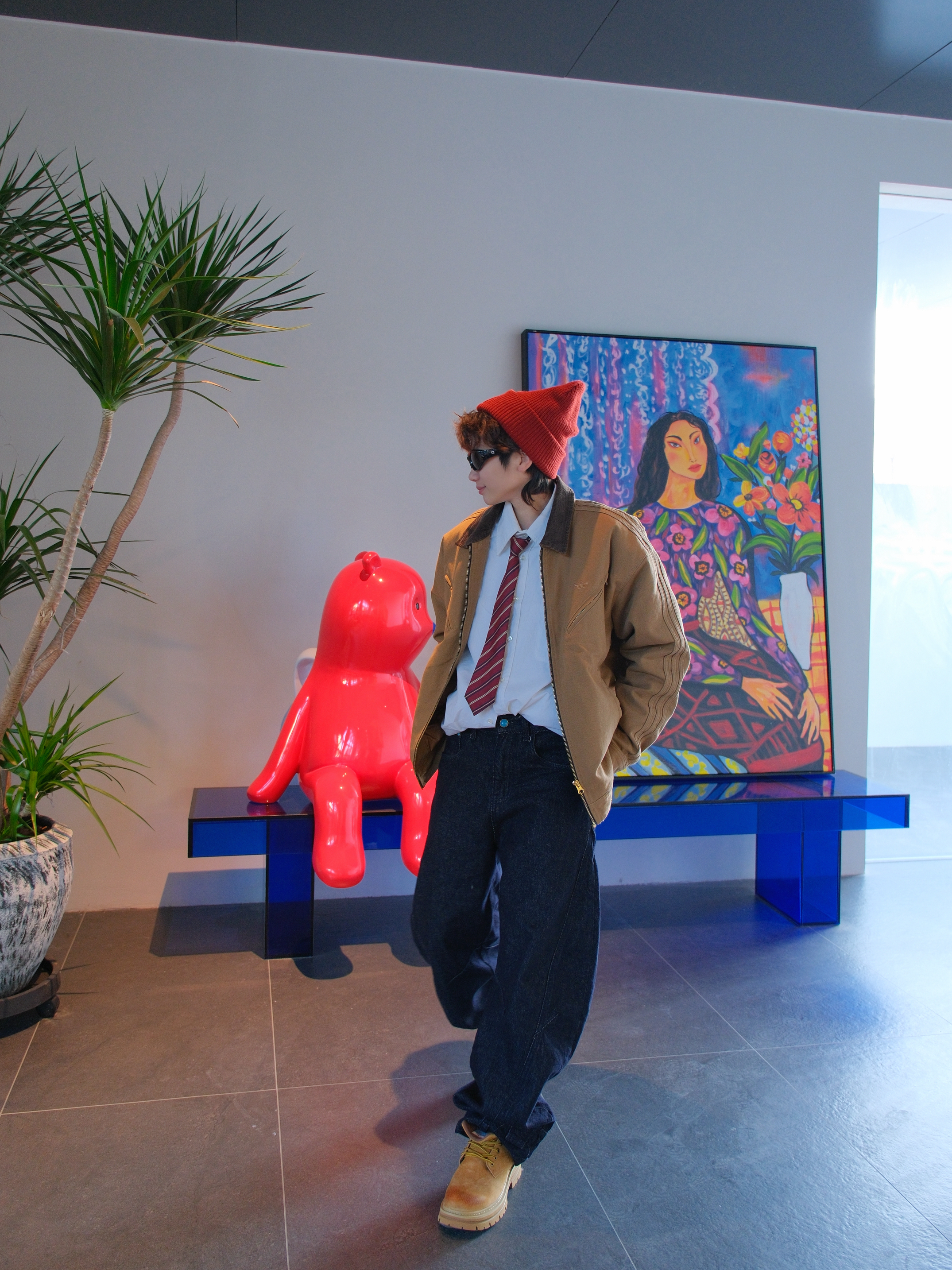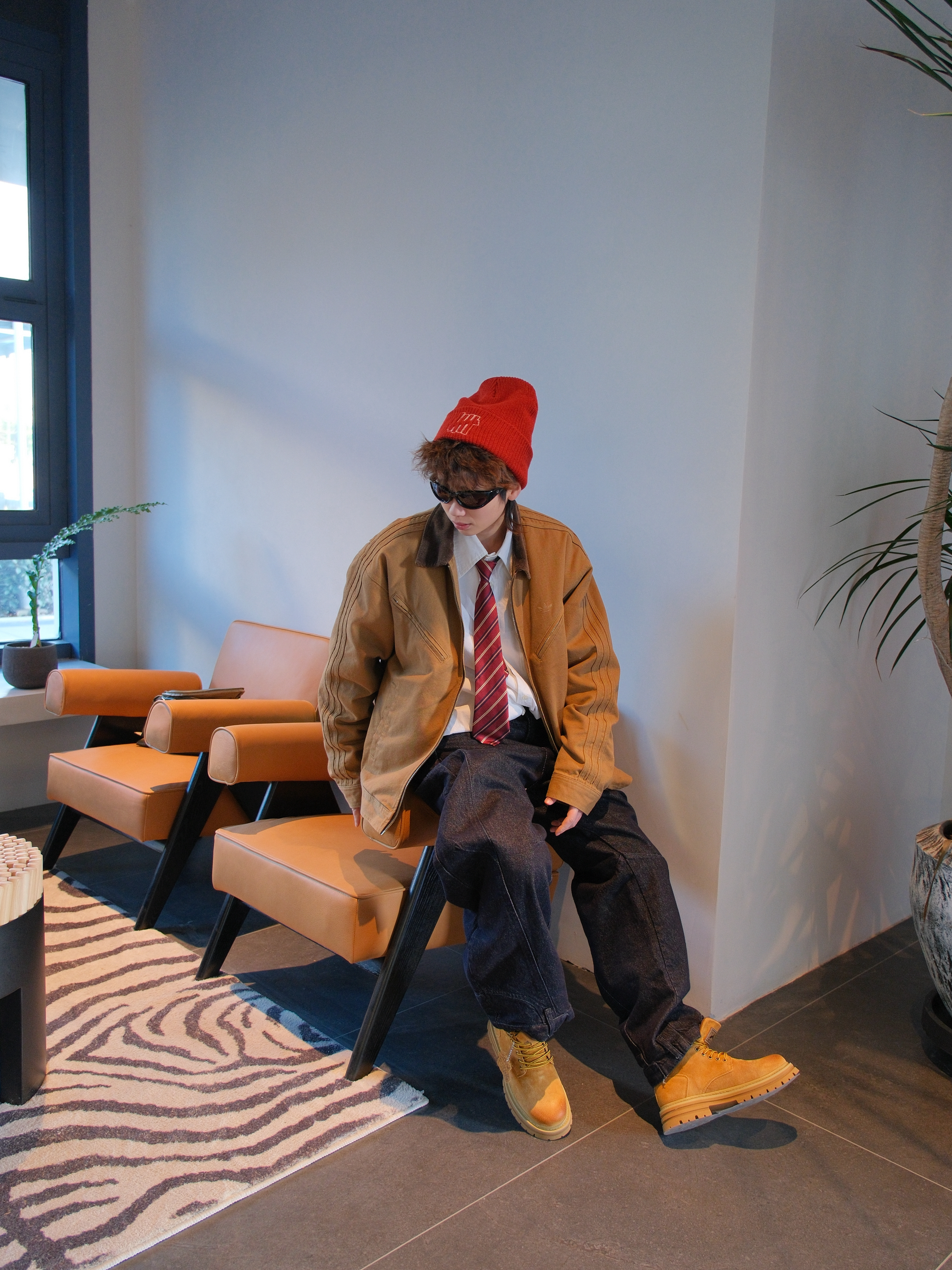 今天用大黄靴搭一套复古工装风 上身是Adidas的棕色夹克 有点vintage的复古味 内搭白色衬衫➕红色条纹领带 下面搭配深色牛仔裤 再来一双雪中飞的大黄靴 上脚很轻,增高大概4cm左右 鞋头做了焦糖渐变,潮流属性up