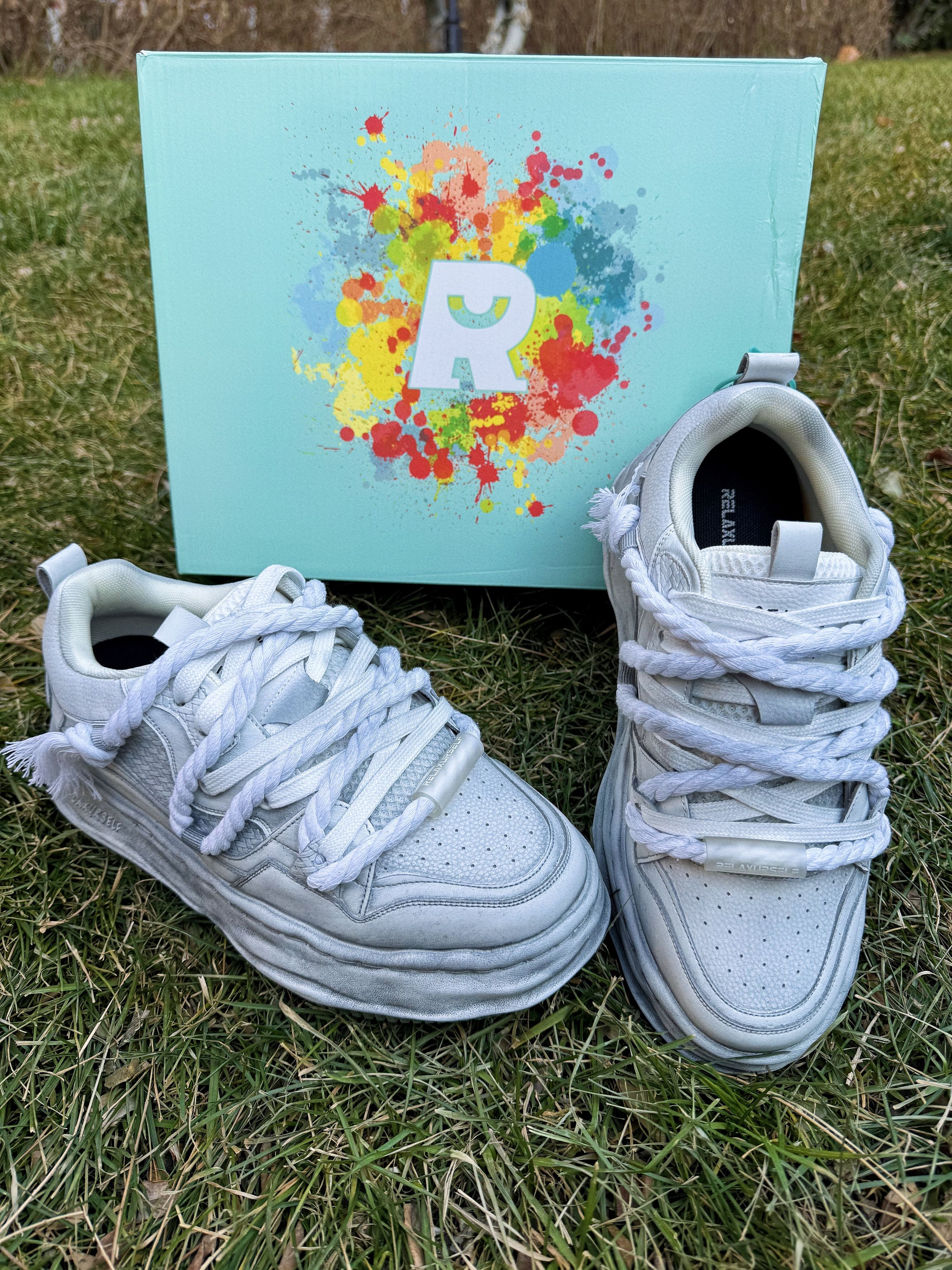 哈喽兄弟们,今天分享我刚上脚的这款RELAXURSELF做旧板鞋,第一眼就被它的小众设计戳中了。我身高178cm,穿的是42码,上脚之后尺码很合适,先看整体,做旧的白色调不会显得单调,粗鞋带的设计还增加了街头感,搭我的军绿色羽绒服也很搭。 鞋面是磨砂皮加网布拼接的,摸上去质感很到位,做旧的工艺也很自然,不是那种刻意做脏的感觉。鞋底的纹路设计很特别,不仅颜值高,抓地力也很稳,日常走路或者逛街,脚感都...