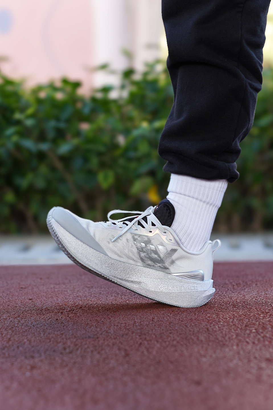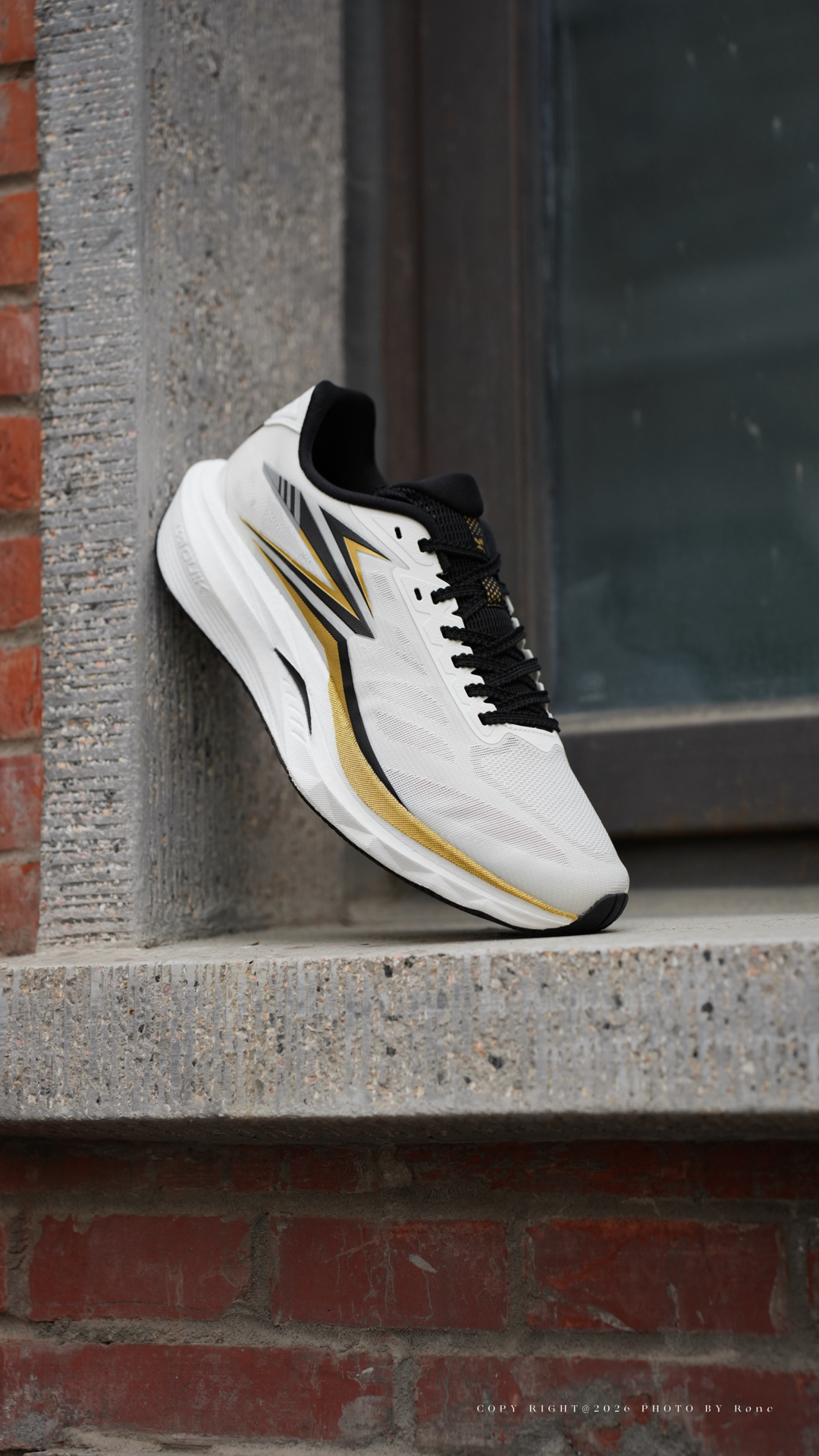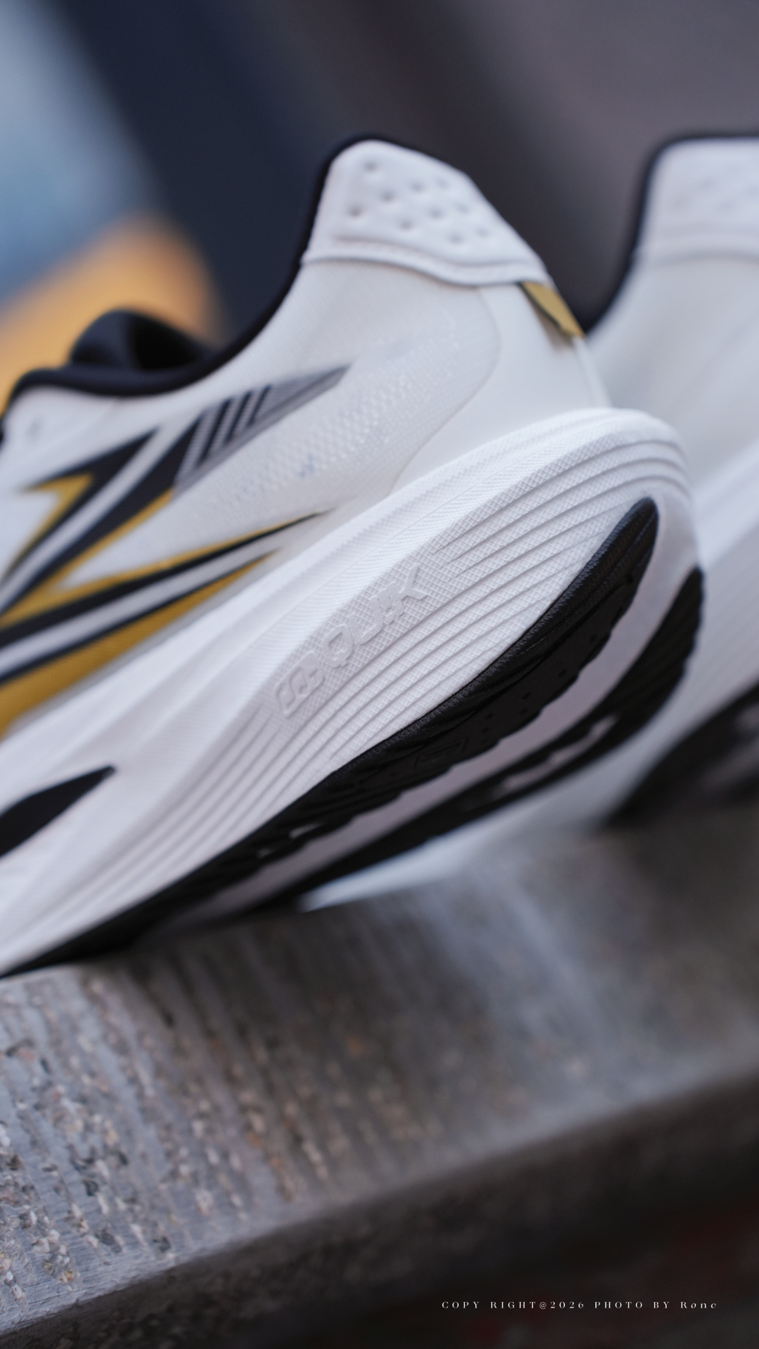 作为跑步新手,选跑鞋时一眼看中了361°的赛道小强, 单只230g的重量,日常穿去训练或者通勤都不压脚,分区绞综鞋面很透气,跑了半小时脚面也没闷出汗,贴脚的包裹感刚好,不会松垮也不挤脚。中底的CQTQU!K弹性体回弹很柔和,前掌24mm后掌30mm的落差,落地时能明显感觉到缓冲,新手跑起来膝盖没什么压力。 它的支撑性让我很满意,双叉异构尼龙板在前掌分叉的设计,蹬地时能给到一点推进力,中足上翻的板材...