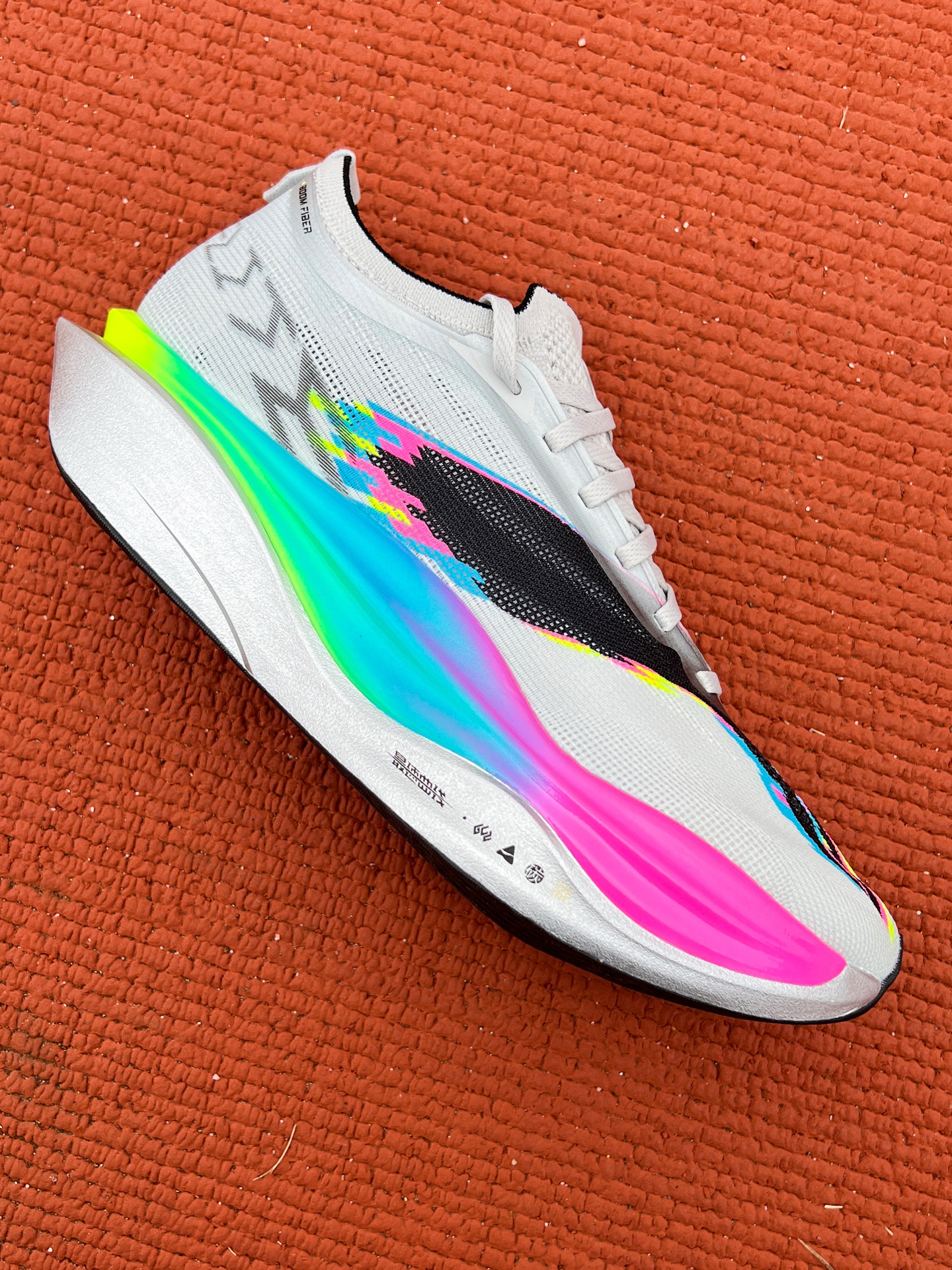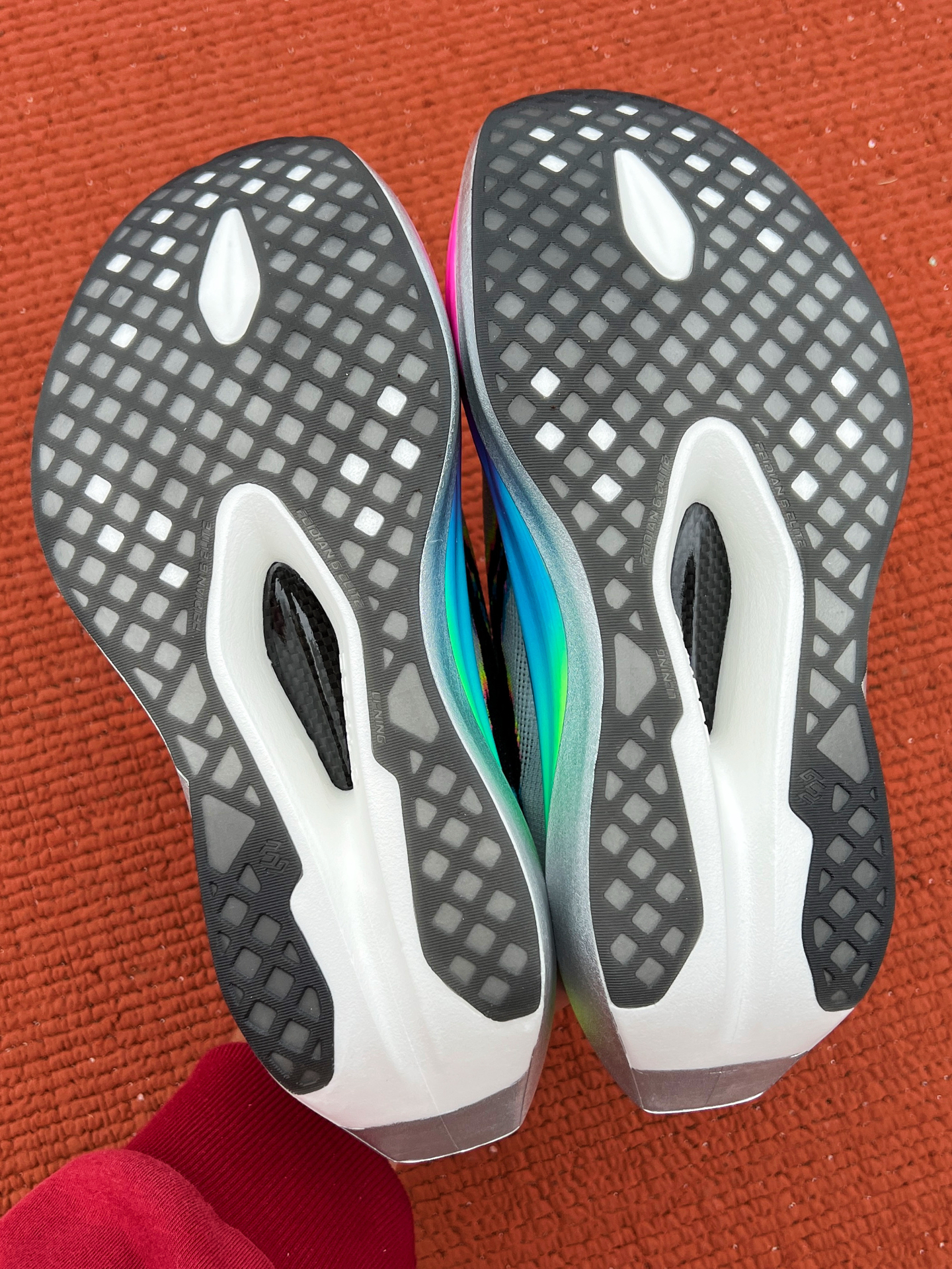 实话实说!这一次飞电6E的颜值真的长在了我的审美点上,完全打破了“竞速鞋只重性能不重颜值”的刻板印象! 今天是带来它静灰的配色!虽然不知道为什么会取这个名字,但鞋身线条特别利落流畅,带着那种天生的速度感,上脚一点不臃肿还显脚小。 鞋舌还有镭射小细节,在光线下还能发亮!而且赛博朋克款的渐变炫彩中底,光线底下折射出不同光泽,回头率直接拉满,科技感和颜值直接双在线,不管是跑者还是鞋控,光看外观都忍不住心...