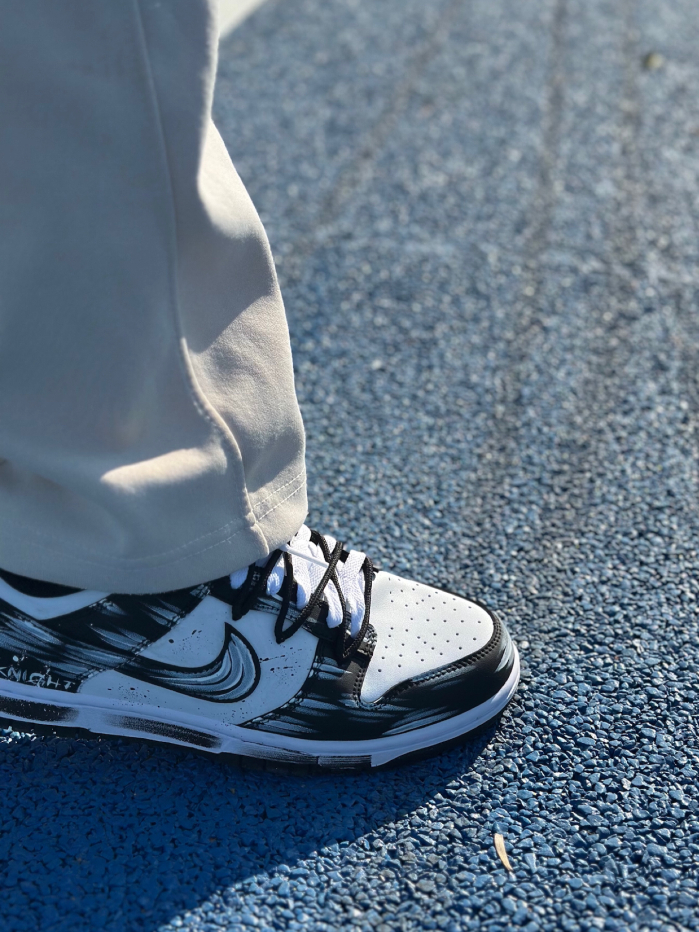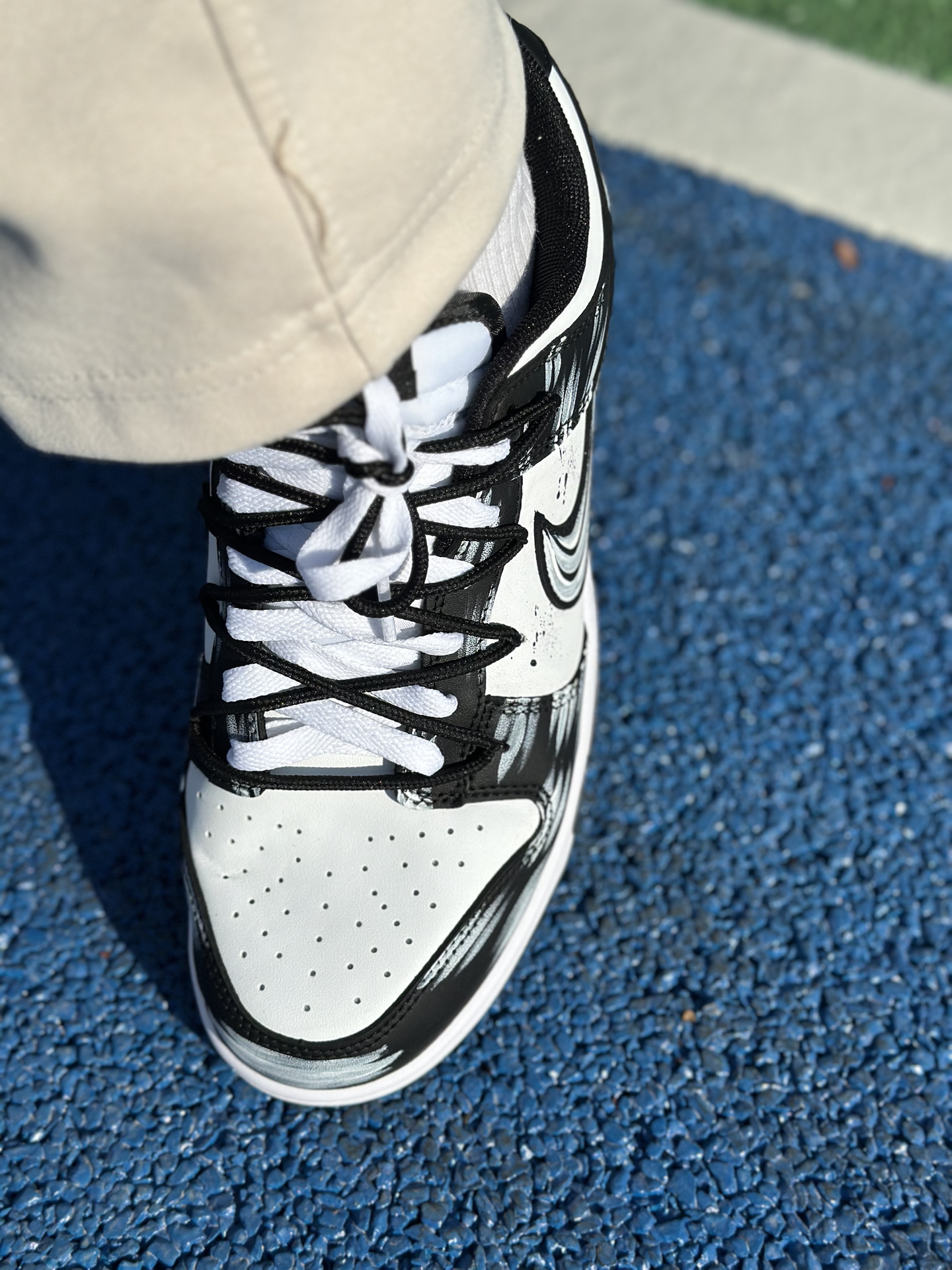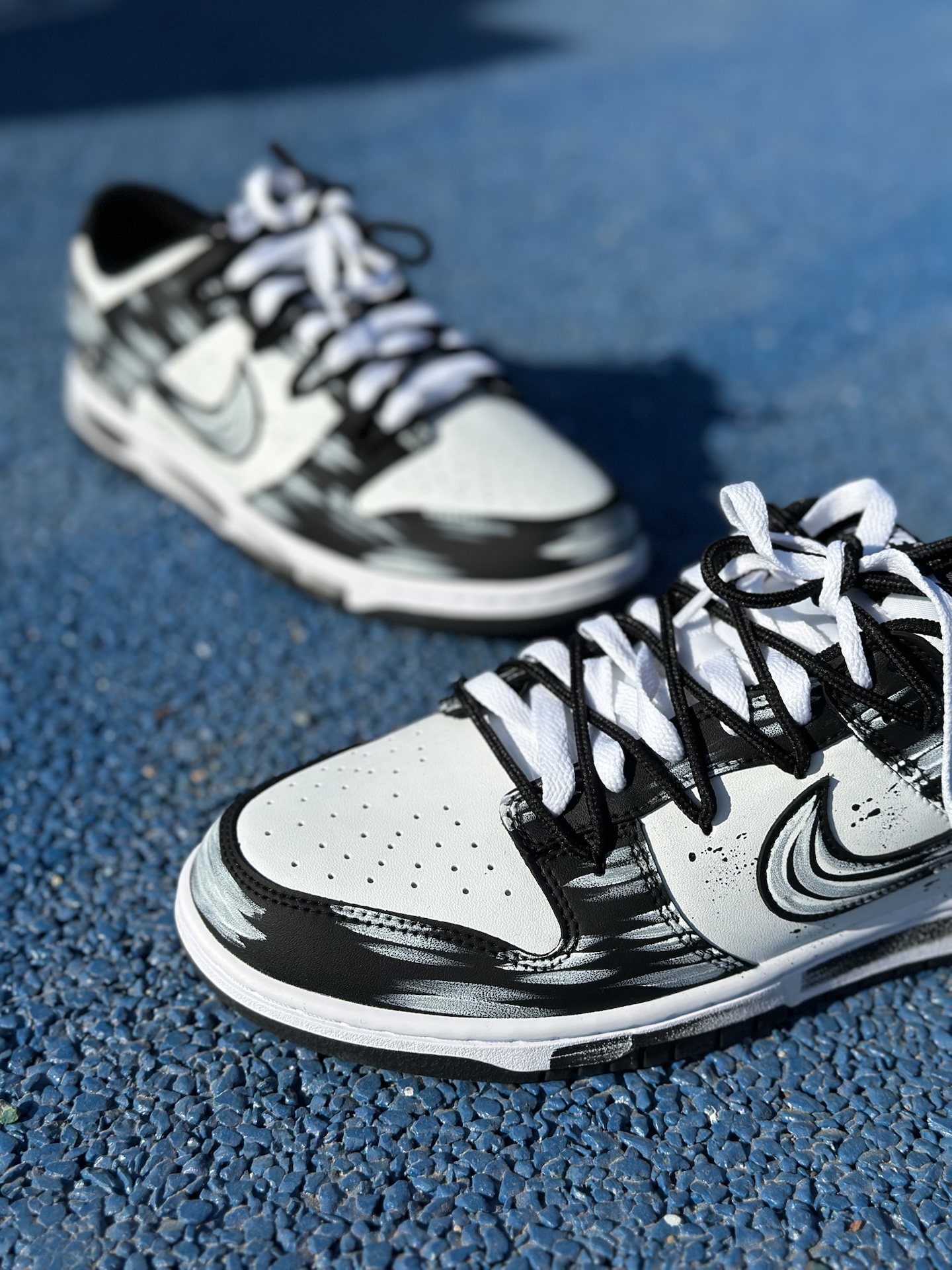 这双水墨晕染Dunk,黑白泼墨的随性纹理超有国风感,搭配黑白解构鞋带的“凌乱感”,脚感一般,不过够轻。 今天穿它逛公园走石板路,不磨脚、鞋头也不挤,日常通勤天天穿完全没压力❗️#2025年度鞋王 #2025年度好东西 #nike