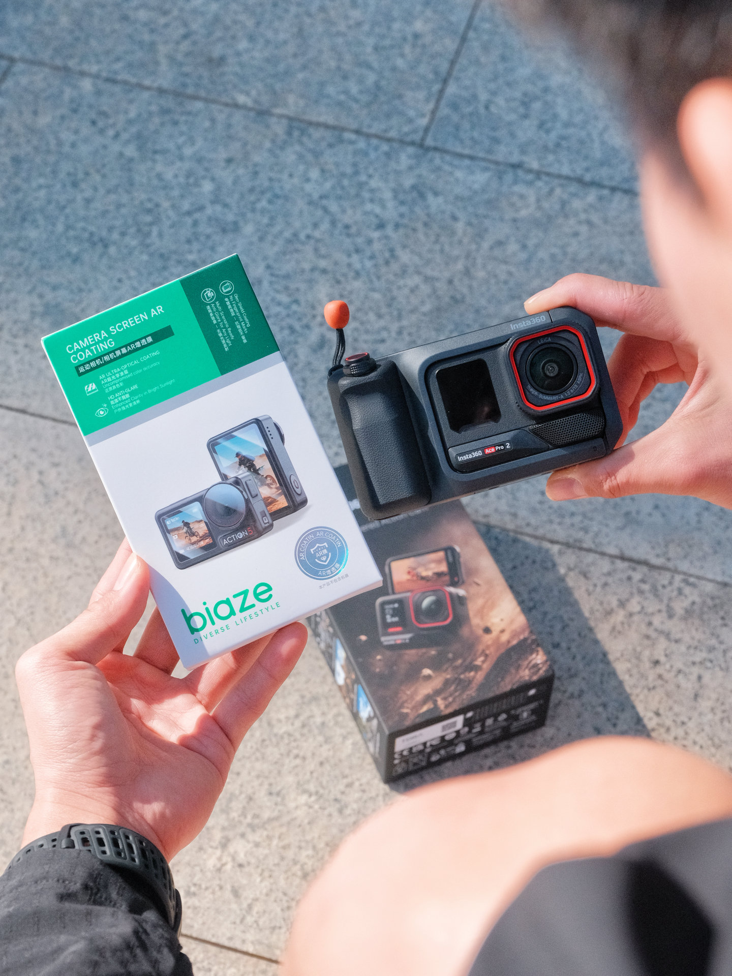 买的影石Ace Pro2刚到热乎三天,我就已经开始焦虑了——这大屏幕要是骑车摔了、放包里被钥匙刮了,心不得碎掉!!! 果断搜配件,最后锁定了毕亚兹这个“屏幕+镜头二合一”的钢化膜。实话实说,下单时还嘀咕:别又是难贴又留气泡的坑货吧? 结果…真香了!首先这AR秒贴盒是真心拯救手残。我这种贴膜必歪星人,这次居然一次成功!把膜卡进那个透明定位框里,像盒盖一样扣在屏幕上,轻轻按,它就自己“唰”地吸上了...