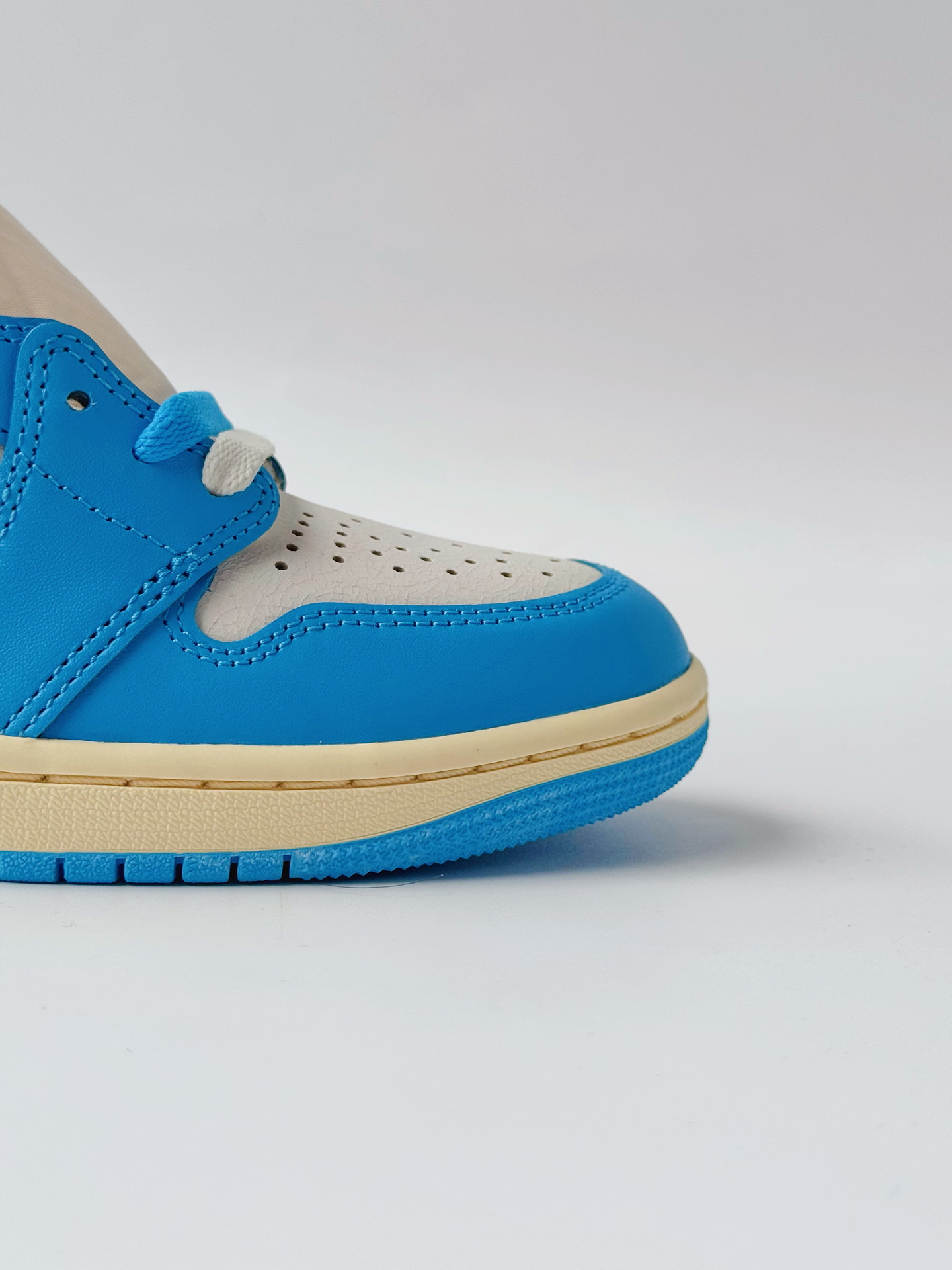 这双 AJ1 北卡蓝,我是以7开的价格入手的,以为是抄底了,没想到居然能5开!不过我还是认为很值。 浅蓝拼米白的配色,加上鞋底做旧,比经典北卡蓝多了点柔和,很清爽! 鞋身材质有一个槽点就是“脚皮”,不像北卡蓝og是纯皮面,打理起来有难度。 搭衣服也没啥压力:配一条卫裤就是清爽挂,套 oversize 的灰卫衣,这蓝白又能中和厚重感。 属于那种 “看着舒服、穿着更舒服” 的鞋,不管是复古党还是随便穿...