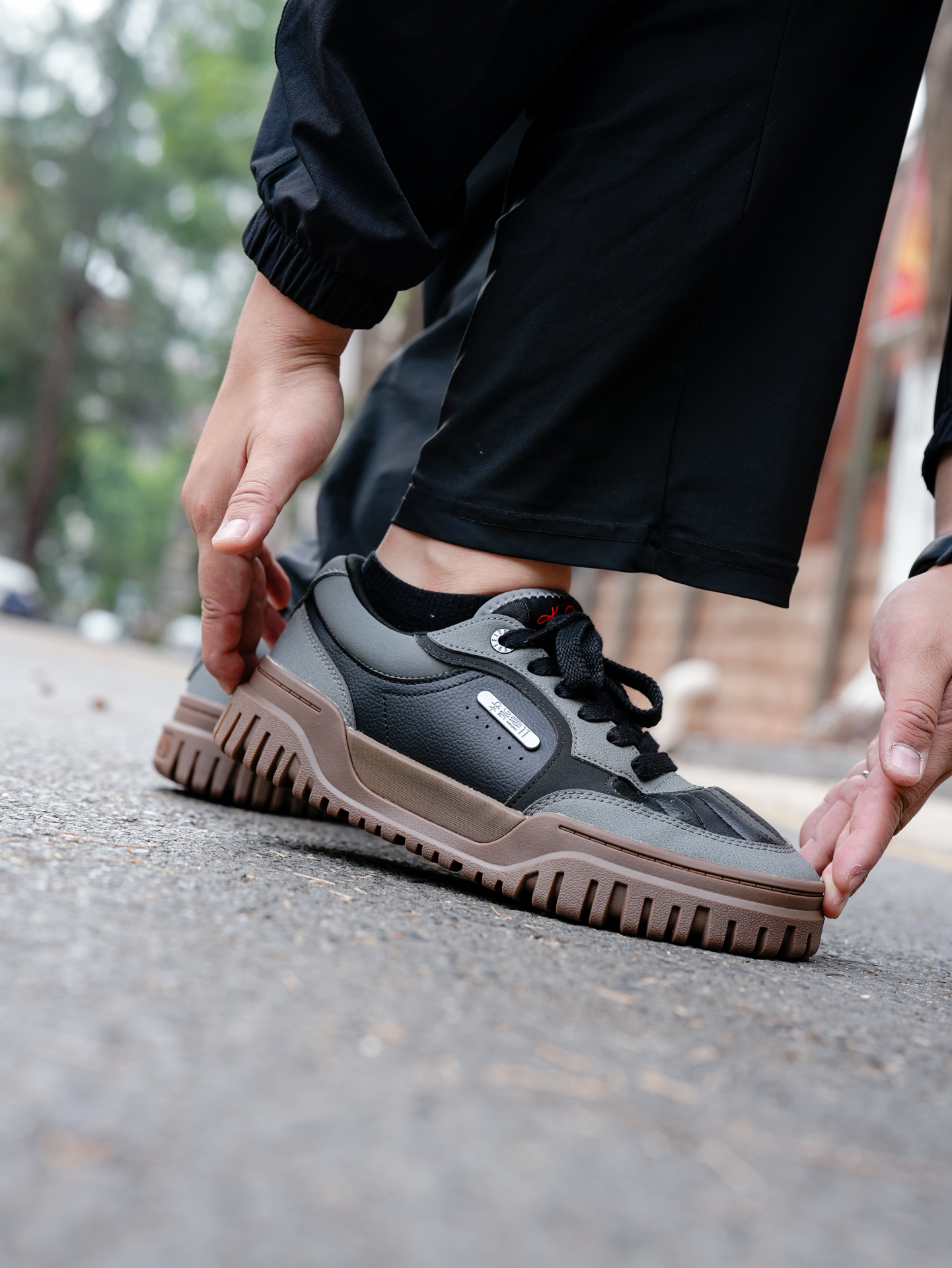 秋冬天气基本上穿搭都会偏深色系 所以鞋子也适当地换成深颜色 今天试了一下安踏欧文的这双 Hela Tribe “玄灰” 黑灰棕的颜色搭配 确实很适配秋冬的穿搭 整体脚感不会感觉硬 穿久了也没有板脚的感觉 还是挺舒服 码数的话不偏码 正常码数入手即可 #交出你的鞋靴链接 #安踏欧文板鞋 #2025年度好东西 #安踏欧文 #男生冬季OOTD OOTD