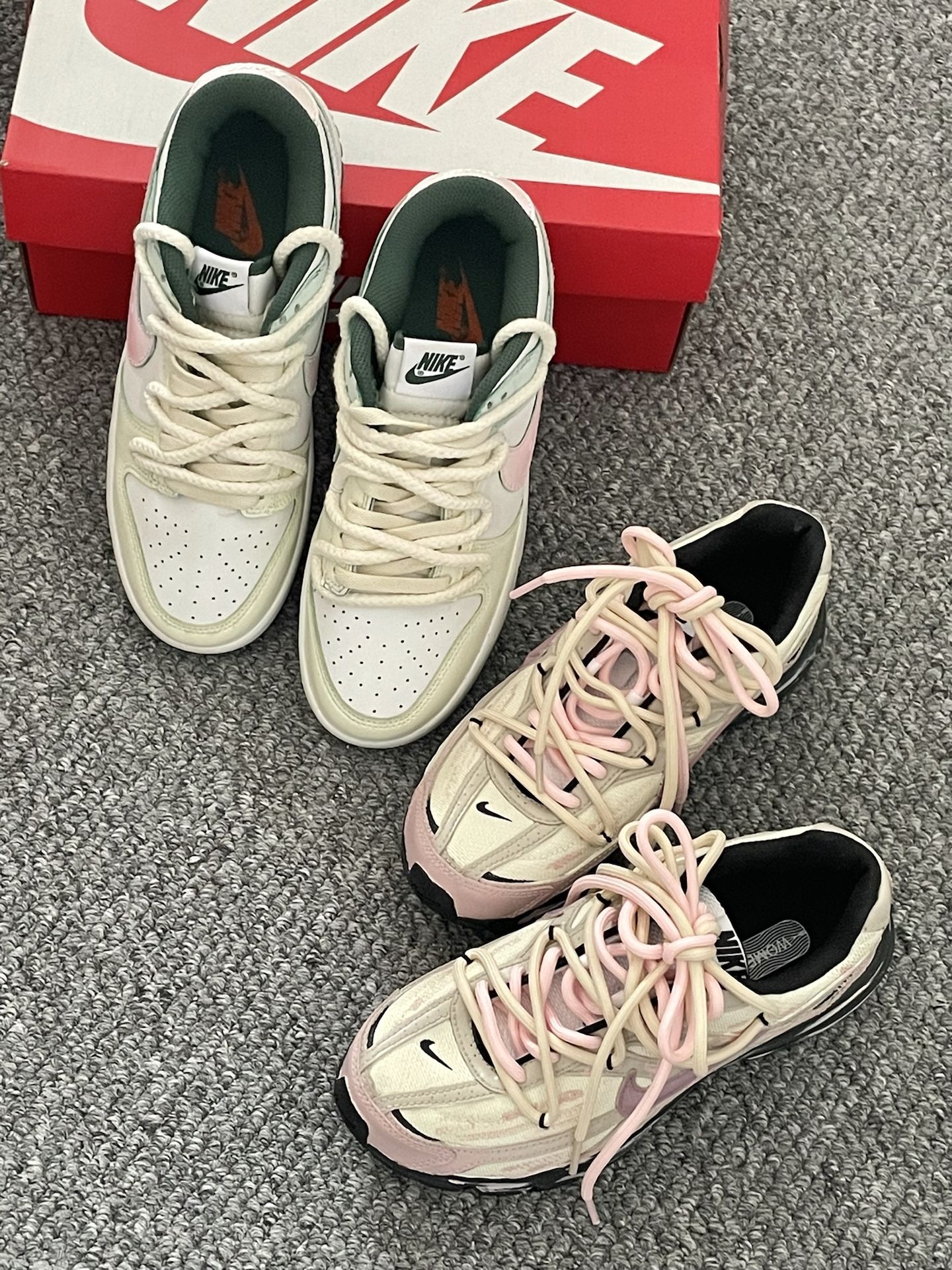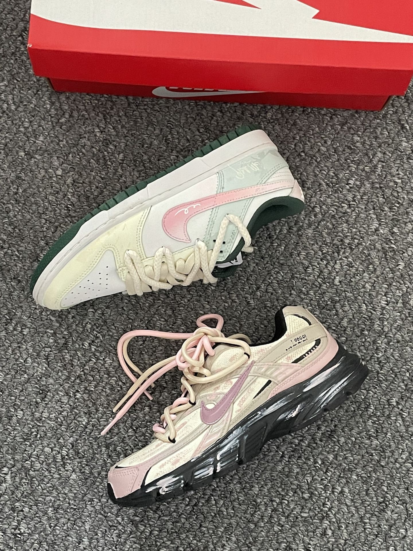 本篇笔记关联了【定制球鞋】 Nike Dunk 板鞋 平跟系带防滑耐磨做旧高街简约百搭潮流复古美式 粉绿春意等商品,为用户提供真实的使用体验和购买参考。